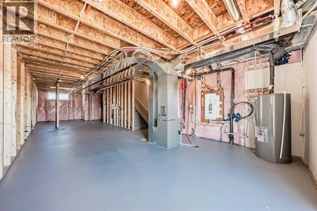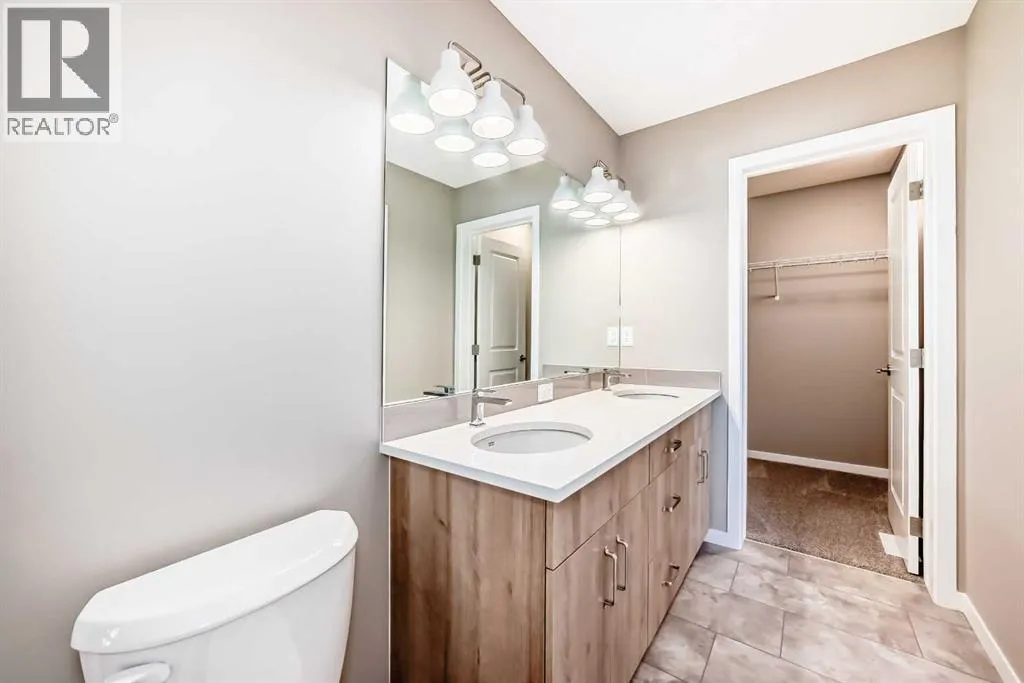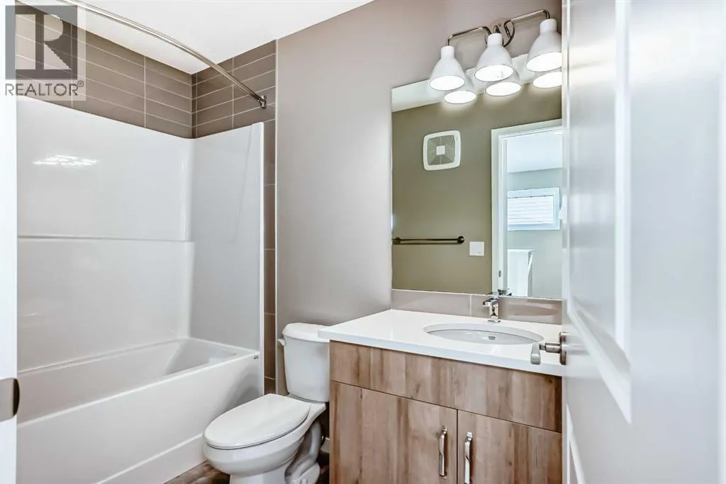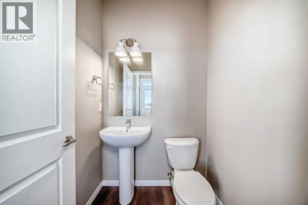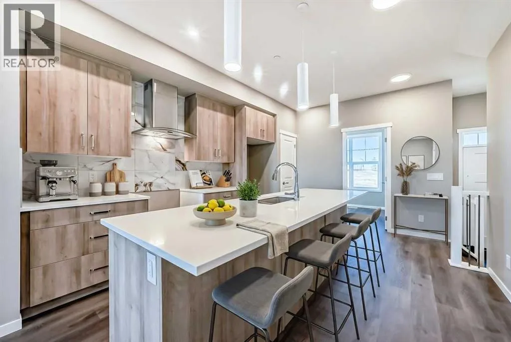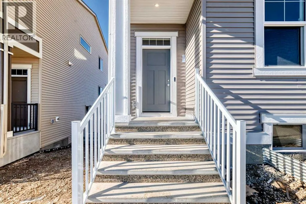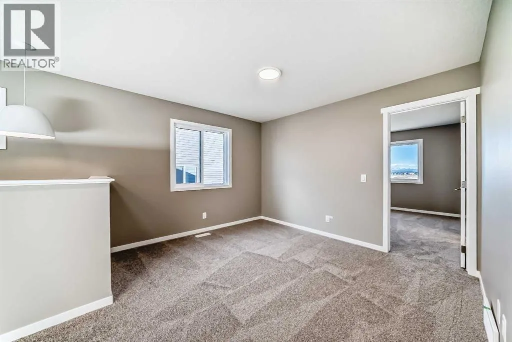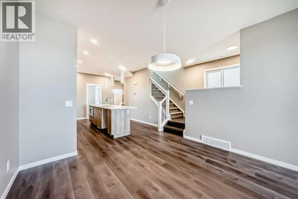 This brand-new âRaynâ is designed for real lifeâbright, modern, and thoughtfully laid out so it feels easy from the moment you walk in. Rich vinyl plank flooring, clean lines, and a fresh, timeless palette set the tone, while abundant windows keep the main level airy and sun-filled throughout the day. Thoughtful sightlines create an open feel without sacrificing defined, usable rooms. At the heart of the home, the central kitchen blends style and function with natural wood-tone cabinetry to the bulkhead, a sleek marble style backsplash, chimney hood fan, stainless steel appliances, and crisp white quartz counters. The oversized island is made for morning coffee, quick meals, and casual entertaining, with space for seating so guests naturally gather where you want them. The dining area sits perfectly between the kitchen and living room with space for a full-sized table, ideal for holiday dinners, board-game nights, or weekend brunches. The rear living room is anchored by an oversized window, creating a comfortable space for movie nights and relaxing evenings. A smart rear entry keeps everyday life organized and provides access to your raised deck to enjoy the west facing views on those long summer nights. The convenient 2-piece bath is perfectly placed for guests and busy mornings. Two standout flex spaces elevate the layout: a versatile main-floor flex room just off the kitchen (home office, playroom, or gym) and a raised homework/tech nook overlooking the main floorâpractical, clean, and great for keeping laptops, homework, and daily clutter off the kitchen island. Upstairs, a cozy bonus room offers a second lounge for kids, reading, or a media space. The primary retreat is tucked quietly at the back with an oversized window, a generous walk-in closet, and a stylish 4-piece ensuite featuring dual sinks and a full-size shower, finishes youâd expect in a much larger home. Two additional rooms are perfect for the growing family and the upper floor laundry ensures wash day is a breeze. Downstairs, the walkout basement adds major lifestyle value with direct backyard access and the potential for a bright future rec space. Step outside to enjoy the rear deckâperfect for BBQs and summer evenings. And later, youâll appreciate a key planning advantage: the separate side entrance for future flexibility, ideal for a suite or private lower-level development (secondary suite subject to approval and permitting by the city/municipality). Set in southeast Calgaryâs growing Hotchkiss community, youâll enjoy quick access to Stoney Trail and 22X, plus nearby Mahogany, Seton, shopping, services, and the South Health Campusâalong with pathways and natural spaces that make it easy to get outside and enjoy the neighbourhood. (id:27476)