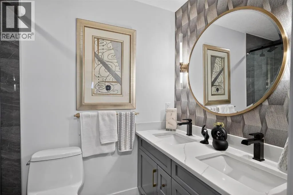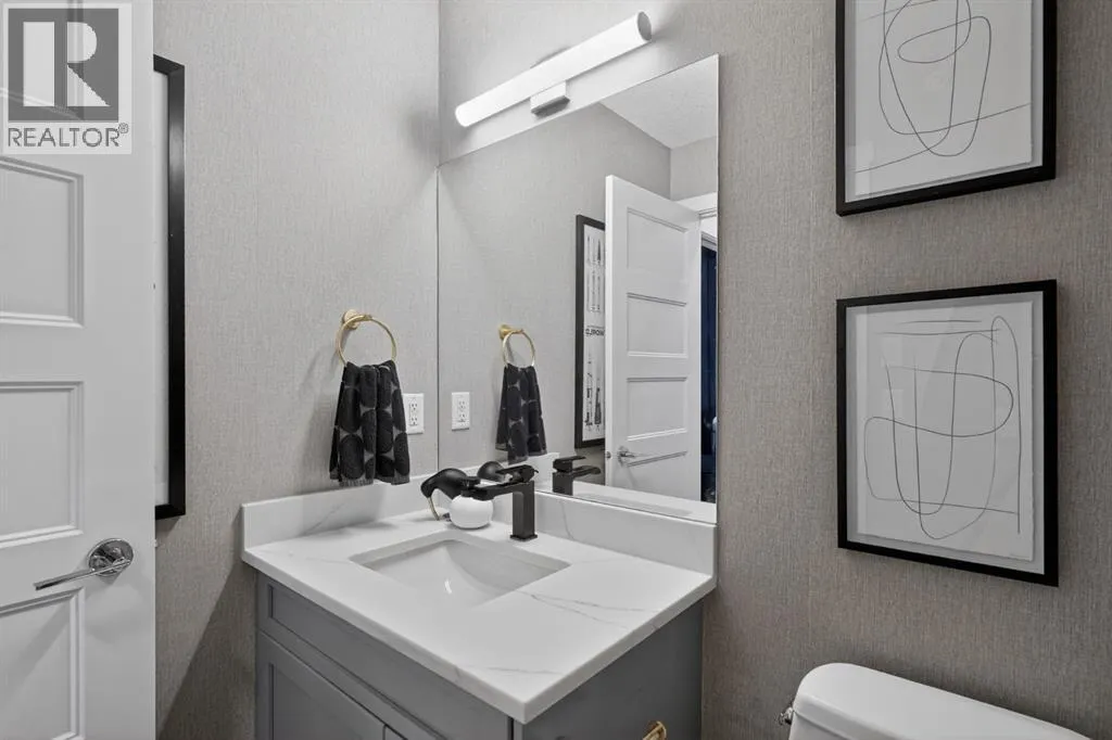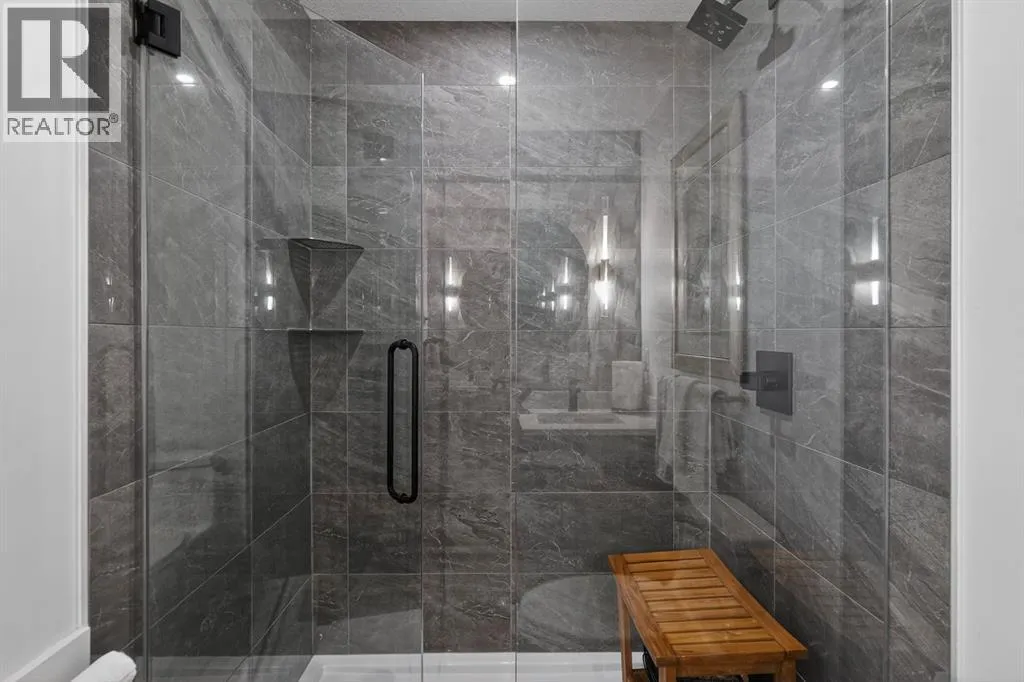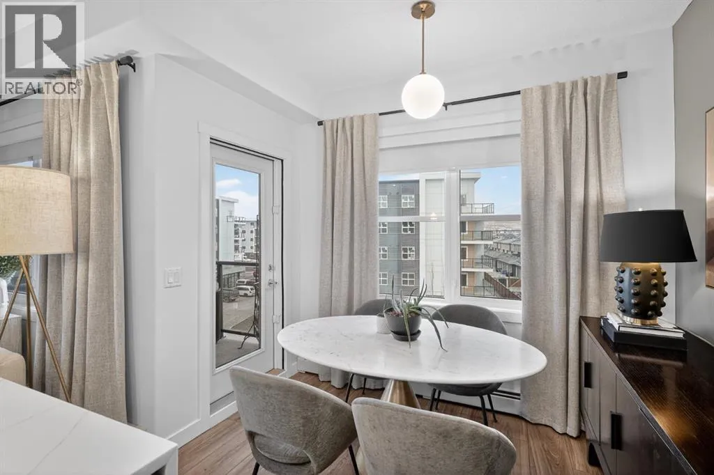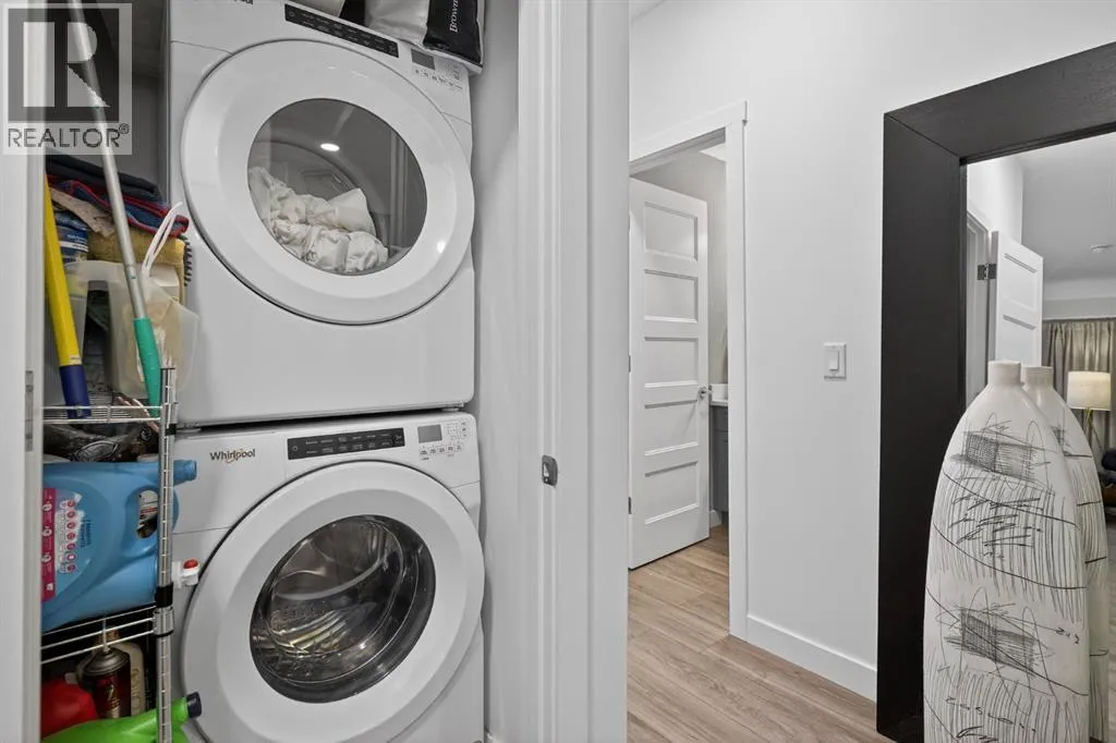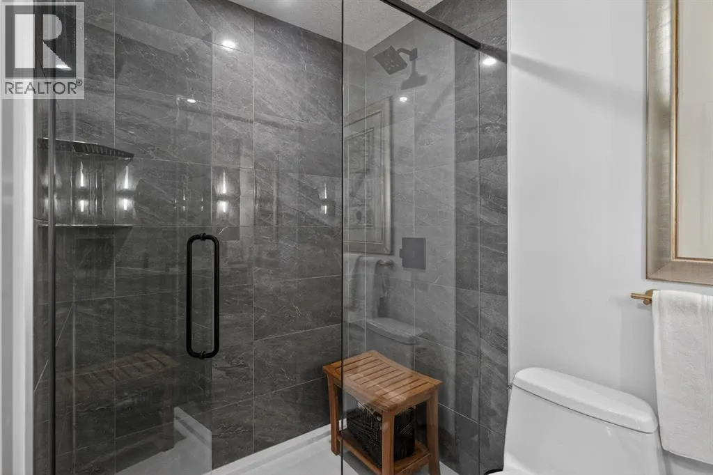 RARE TOP-FLOOR SW CORNER RESIDENCE WITH WRAP-AROUND BALCONY IN BOW360Perched on the top floor of BOW360, this southwest corner home offers elevated living with over $47,000 in builder upgrades, expansive natural light, and one of the most desirable layouts in the building. With no neighbours above and windows on two sides, this residence delivers privacy, sunshine, and a true sense of space that is rarely available in condo living.From the moment you step inside, the difference is clear. The entry has been thoughtfully redesigned to create an impressive, oversized foyer, a feature that immediately sets this home apart. The open-concept living space is bright and refined, anchored by a stunning travertine-wrapped fireplace that adds warmth and architectural sophistication.The kitchen was designed to impress, featuring a dramatic waterfall quartz island, stainless steel appliances, upgraded cabinetry, and elevated designer finishes throughout. Whether entertaining or enjoying a quiet evening at home, the space feels modern, intentional, and effortlessly stylish.The wrap-around southwest-facing balcony extends your living space outdoors, offering open sky views and sunlight throughout the afternoon and evening, perfect for summer evenings and year-round enjoyment.The primary suite provides a private retreat with a walk-through closet and beautifully finished four-piece ensuite. A spacious second bedroom and full bath offer flexibility for guests, a home office, or shared living.Titled underground parking and secure storage add convenience, while condo fees that include heat, water, and gas provide exceptional value.Steps to the Bow River pathways, parks, golf, and off-leash areas, this is an opportunity to own one of the best-positioned and most upgraded homes in BOW360. (id:27476)