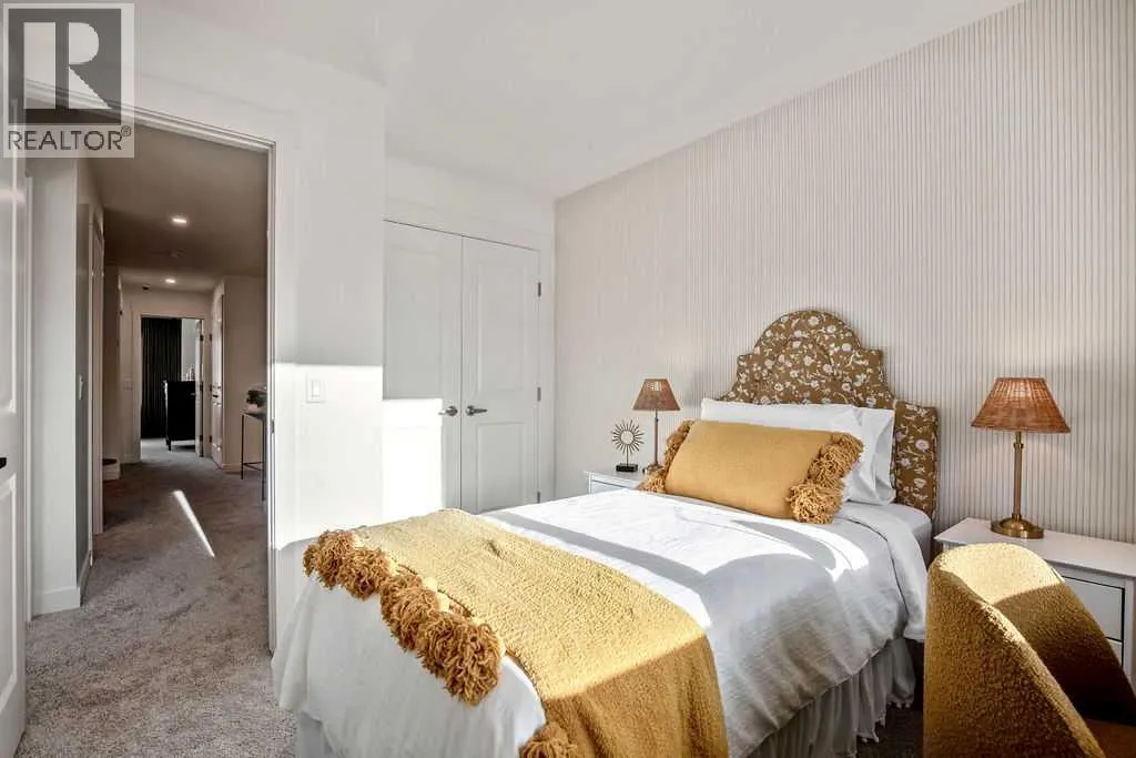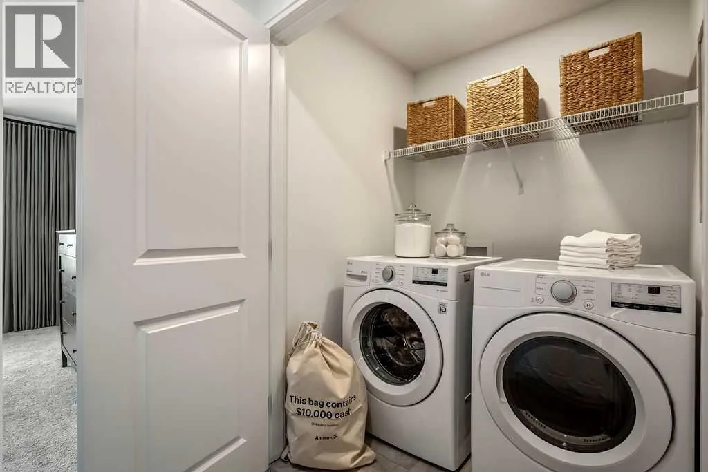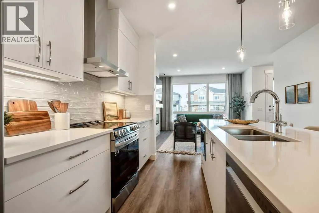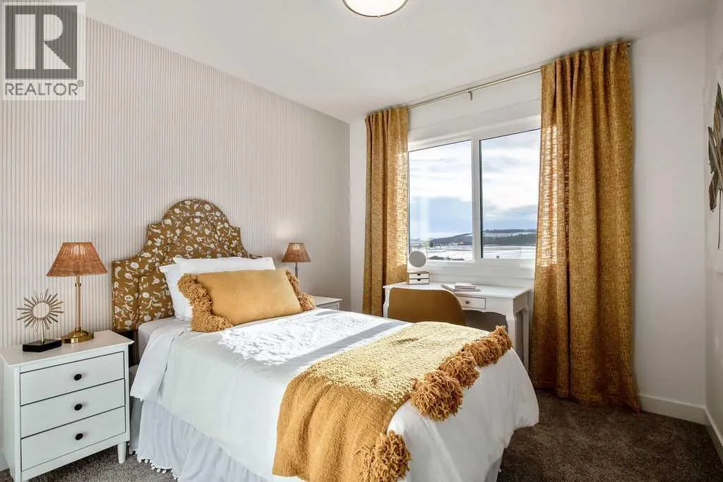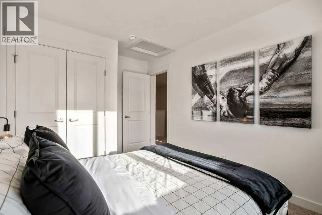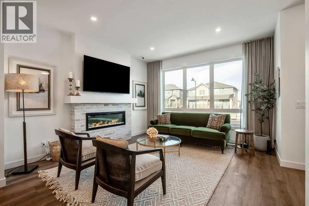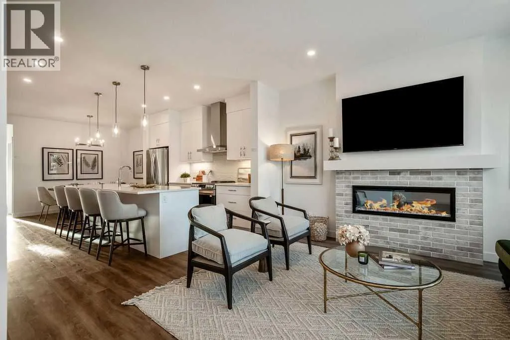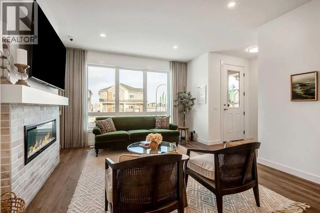 This quick possession home offers exceptional space and flexibility in Glacier Ridge, with a layout that works for todayâs families. Featuring 1,844 sq.ft., 3 plus 1 bedrooms, and 3 full bathrooms, the main floor includes 9â ceilings, luxury vinyl plank flooring, a bright galley kitchen with quartz countertops, stainless steel appliances, a flush eating bar, and a walk-in pantry. A main floor bedroom with full bathroom adds valuable versatility for guests, home office use, or multi-generational living. The great room is anchored by an electric fireplace with mantle and flows into a well-proportioned dining area. Upstairs features a central bonus room, a spacious primary bedroom with walk-in closet and ensuite, two additional bedrooms, and upper laundry. Added highlights include iron spindle railing, extra side-elevation windows, permanent soffit lighting, a side entry, gas line for BBQ and range, and a 9â basement foundation offering future development potential. Located in Glacier Ridge, a growing northwest Calgary community with parks, pathways, and easy access to major routes, this home also includes the confidence of a full builder warranty. Book your showing today! (Interior photos are of a showhome with similar layout and do not fully represent the property for sale) (id:27476)
