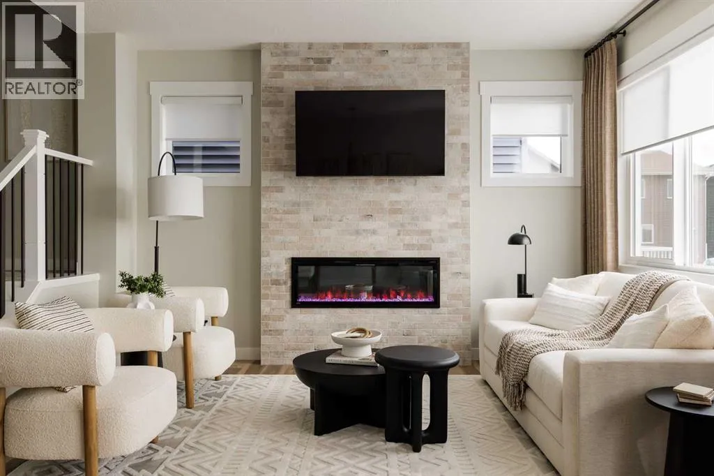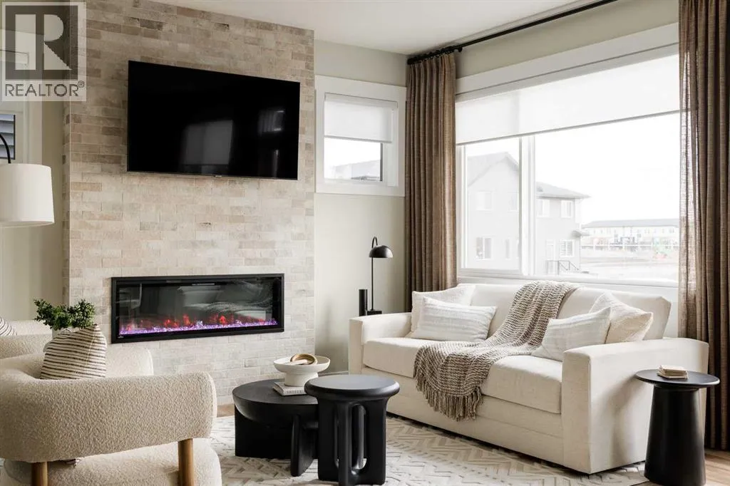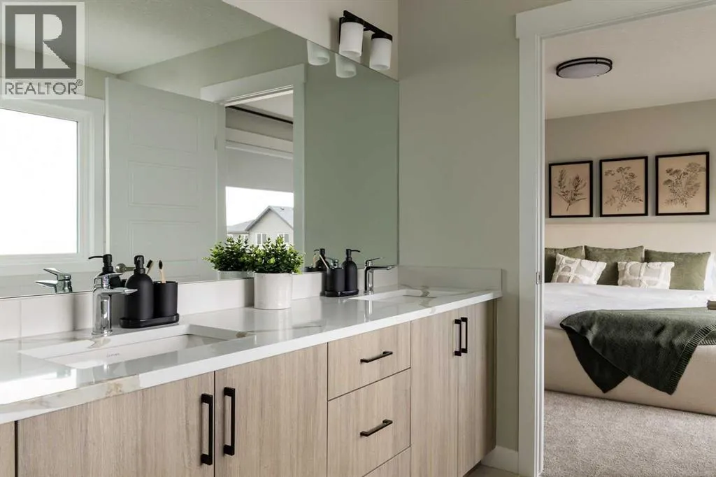 This quick-possession front-drive home offers a well-balanced layout with upgraded finishes and strong everyday functionality in Glacier Ridge. Featuring 2,284 sq.ft., 3 bedrooms, and 2.5 bathrooms, the main floor is finished with 9â ceilings, luxury vinyl plank flooring, a gourmet kitchen with quartz countertops, stainless steel appliances including a gas cooktop and built-in wall oven, a flush eating bar, and a walk-in pantry. The dining area and great room are bright and open, highlighted by an electric fireplace, while a dedicated main floor office adds practical work-from-home space. Upstairs includes a spacious bonus room, a large primary bedroom with walk-in closet and ensuite featuring tiled shower walls, two additional bedrooms each with walk-in closets, a generous laundry room, and upper-level railing. Added highlights include iron spindle railing on both levels, extra side and basement windows, permanent soffit lighting, a side entry, gas line for BBQ, an 8â front entry door with transom, and a 9â basement foundation offering future development potential. Located in Glacier Ridge, a growing northwest Calgary community with parks, pathways, and convenient access to major routes, this home includes the confidence of a full builder warranty. Book your showing today. (Interior photos are of a showhome with similar layout and may not fully represent the property for sale) (id:27476)