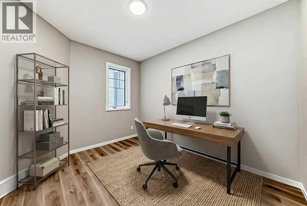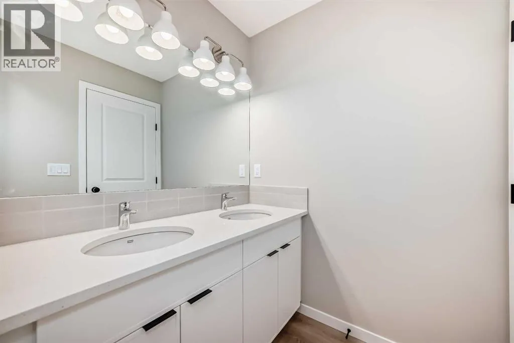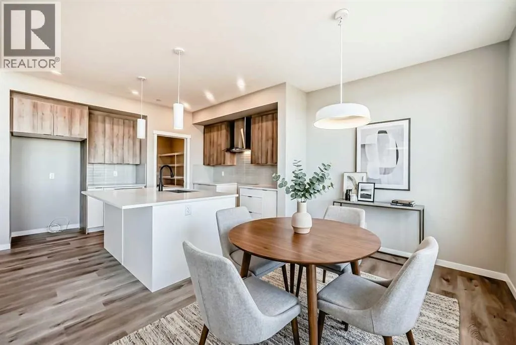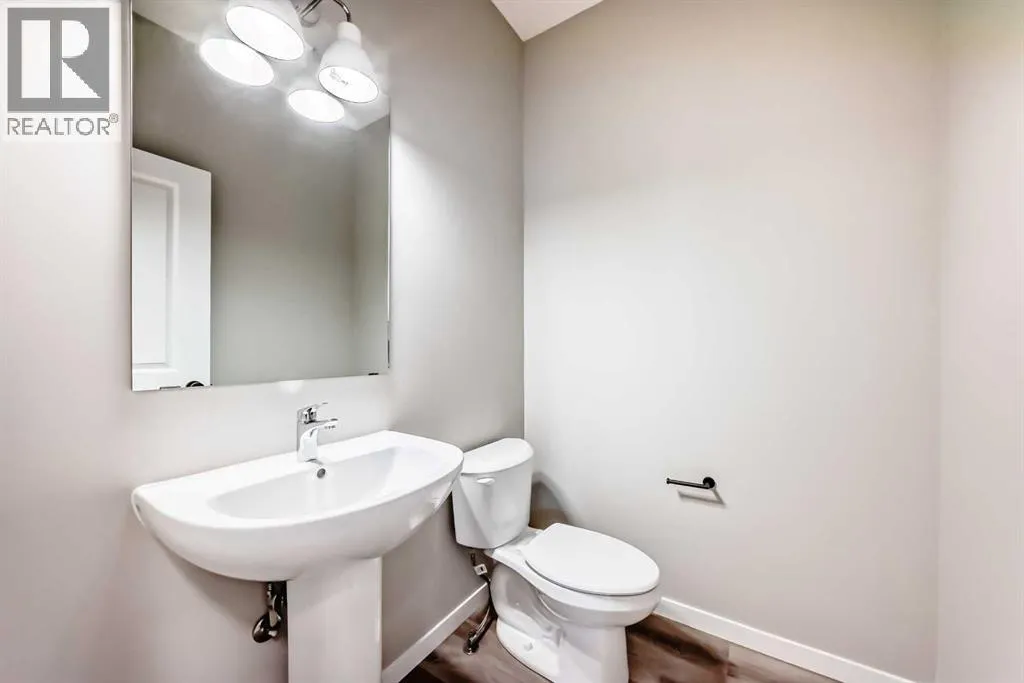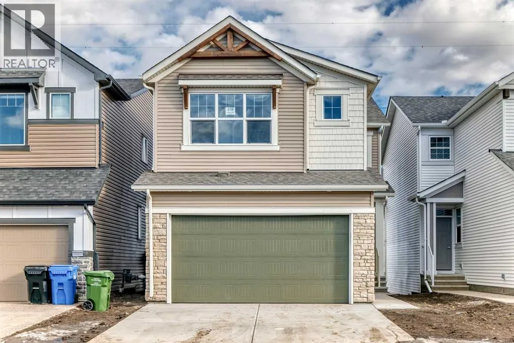 Welcome to the âGradaâ by Hopewell Residentialâwhere contemporary design meets family-friendly functionality in the vibrant community of Hotchkiss. This beautifully crafted home spans 2,112 sq. ft. and offers 3 spacious bedrooms with a layout designed to make everyday life feel easier, brighter, and more connected. Step inside and youâll immediately feel how the main floor is built for real life. Just off the entry, a versatile flex space with a glass insert door is perfect for a home office, playroom, homework zone, or quiet retreat. The heart of the home opens up into an inviting dining area and lifestyle room that flow effortlessly for both daily routines and entertaining. The soaring open-to-above living room adds a wow factor with an airy, light-filled feel, and large windows keep the space feeling fresh from morning to evening. At the center of it all, the kitchen is designed to impress and perform. Youâll love the upgraded layout with a stylish chimney-style hood fan, built-in microwave, extra storage drawers, elegant quartz countertops, and a large island that anchors the space for casual meals, coffee catch-ups, or hosting friends. The two-tone cabinetry is a standout feature, with wood grain upper cabinets extended to the bulkhead and crisp white lower cabinets, paired with a classic subway tile backsplash for a clean, timeless look. Thoughtful upgrades continue with black interior hardware and knockdown ceiling textures, adding a modern edge throughout. The entertainment potential extends outdoors with a walkout lot and a generous 15â x 10â deckâperfect for summer dinners, morning coffee, or relaxing at the end of the day. An exterior gas line is already in place for a future BBQ, making it easy to enjoy Calgaryâs long warm evenings. Upstairs, youâll find three spacious bedrooms, including a luxurious primary suite featuring a step-in showerâyour own private retreat. The additional bedrooms are the perfect size for the growing family and served by a beaut iful full bathroom, while the upper-floor laundry room is perfectly placed to keep day-to-day life running smoothly. Downstairs, the walkout basement is ready for your future plans with a 9-foot foundation, offering the opportunity for added living space or a potential mortgage-helper suite (a secondary suite would be subject to approval and permitting by the city/municipality). Located in southeast Calgary, Hotchkiss offers stunning mountain views, 51 acres of park space, walking pathways, and a beautiful central wetland. Designed with families in mind, this community delivers the green space, connectivity, and lifestyle that make it easy to settle in and feel at home. Discover the next chapter of your life with The Grada. (id:27476)