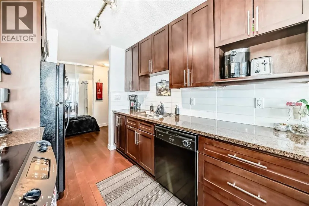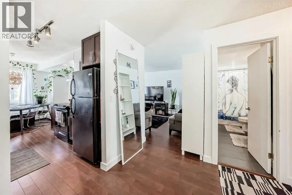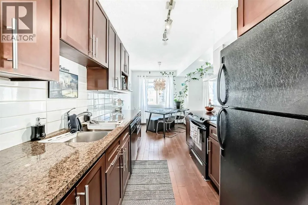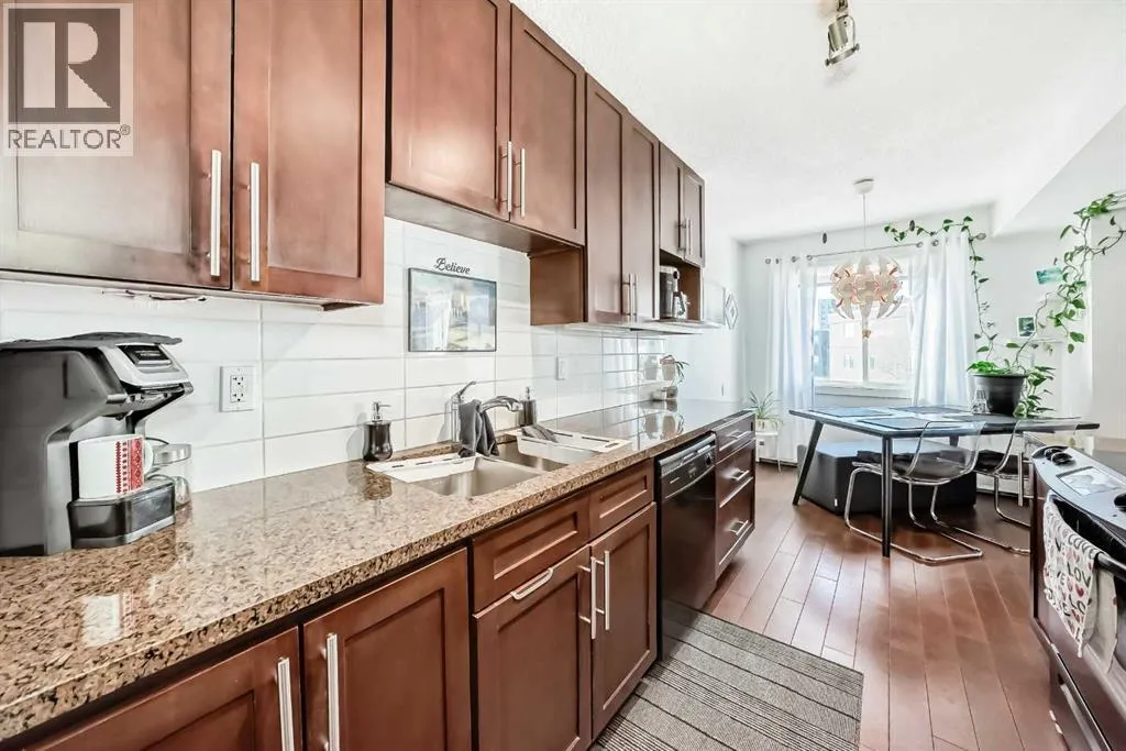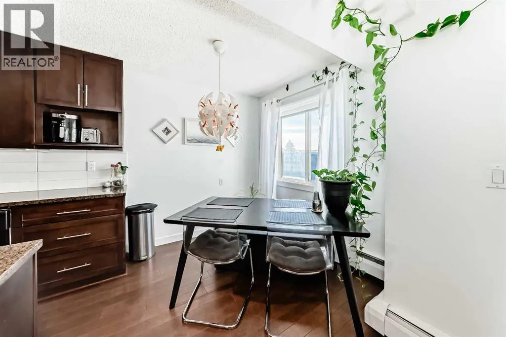 Calling all first time home buyers and savvy investors! Pride of ownership shines throughout this beautiful top corner unit condo in the highly sought after community of Greenview. Offering nearly 900 sq ft of living space, this 2 bed, 1 bath home features a bright, open floorplan with a rare dual entrance design allowing access from either side of the building, adding both convenience and uniqueness. Inside, youâll immediately notice the upgraded cork flooring and granite countertops in the functional kitchen, which opens seamlessly to the living area perfect for everyday living and entertaining. Soak up the sunshine from your West facing balcony, ideal for warm summer evenings, or enjoy the abundant natural light streaming through the unit during the winter months. Additional bonuses include; In-suite laundry and storage room plus one assigned parking stall (#110). Pet owners will love the off leash dog park just steps away, and everyone will appreciate the unbeatable location, minutes from downtown, with easy access to dining, grocery stores, public transit, and countless other amenities. (id:27476)