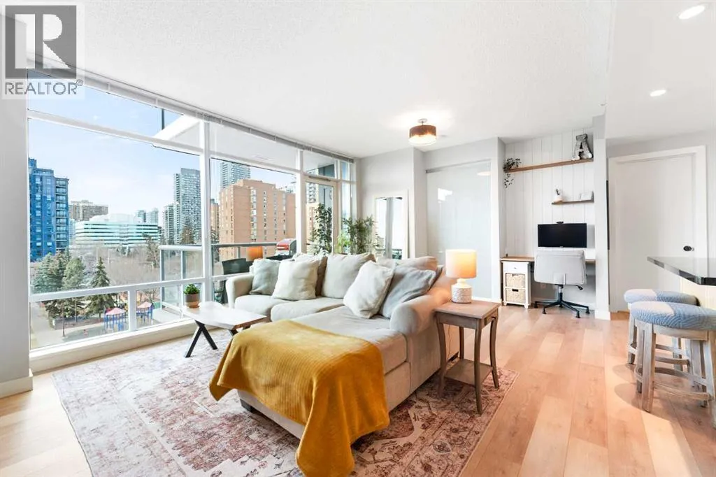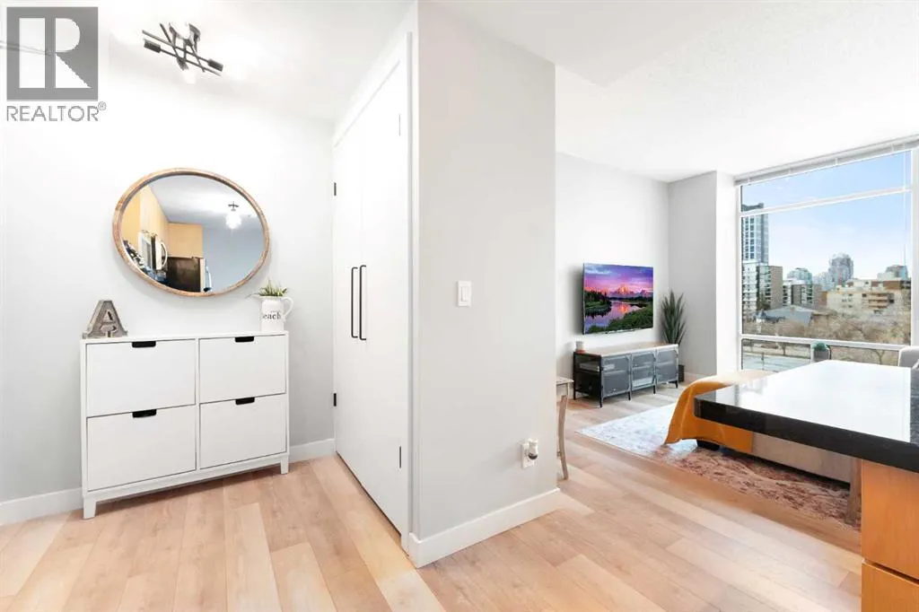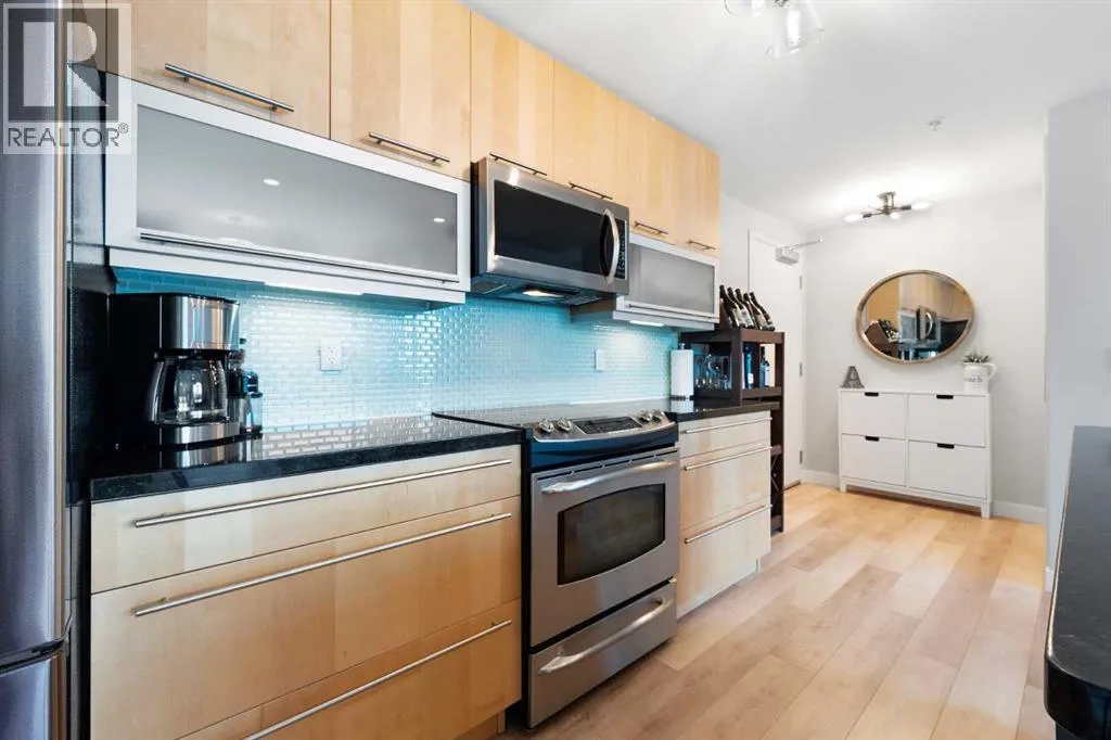 Experience vibrant inner-city living in this beautifully renovated 1 bedroom, 1 bathroom residence in Union Square, perfectly situated in Calgaryâs sought-after Beltline. Offering a seamless blend of modern comfort and urban convenience, this west-facing unit showcases stunning park views and an unbeatable location backing directly onto Haultain Parkâone of the few downtown residences to offer immediate access to green space and tennis courts. Recently refreshed with thoughtful upgrades throughout, the home features upgraded flooring, fresh contemporary paint, and stylish new lighting fixtures that create a bright and inviting atmosphere. The well-appointed kitchen is both functional and elegant, complete with sleek granite countertops, a spacious island, upgraded faucets, and a brand-new dishwasherâideal for everyday living or entertaining guests. The open-concept layout flows effortlessly into the living area, where large windows fill the space with natural light and frame serene views of the park beyond. Designed with todayâs lifestyle in mind, this unit includes a custom built-in workspace, perfect for working from home or staying organized. The bedroom offers comfort and practicality with upgraded closet doors and ample storage, while the bathroom has been enhanced with new faucets and updated fixtures, providing a clean, modern feel. Enjoy the convenience of in-suite laundry, adding ease to your daily routine. Step outside to your private balcony, finished with durable composite deck tiles, creating a welcoming outdoor retreat to relax and enjoy the west-facing exposure and peaceful surroundings. This exceptional offering also includes one titled underground parking stall and an assigned storage locker, ensuring secure parking and additional space for your belongings. Union Square is known for its contemporary design and unbeatable location above First Street Market, placing some of Calgaryâs best dining, coffee shops, boutiques, and pubs right at your doorste p. Located on vibrant 1st Street SW, youâll enjoy the energy of city living while still having direct access to green space just steps away. Whether youâre a professional, investor, or first-time buyer, this move-in-ready home delivers the perfect balance of style, comfort, and location in one of Calgaryâs most dynamic communities. Donât miss your opportunity to live in a beautifully updated unit with park-side living in the heart of the Beltline. (id:27476)