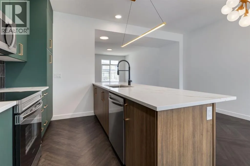 Brand new the No condo fee 'TALO' town floorplan by Rohit Homes, with unmatched design interiors and striking exteriors to create elevated living. Featuring 1500 sq ft, 3 bed/2.5 bath + Bonus. Note: This unit has not yet started construction. All Perfectly located In SE Calgary's 'Sora in Hotchkiss', close to a park, featuring a pond, paths, easy access to major highways and more. Step inside to an expansive open floor plan that seamlessly connects living/dining and kitchen. KITCHEN FEATURES: SS appliances, quartz counters, large island (with place for bar stools), desginer cabinets, boutique lighting - a perfect place to gather and create masterful meals. Off the kitchen is the dining, mid room and half bath. The TALO plan offers large windows across the back and front, and with the high ceilings as well as open floor plan, it leaves the home feeling bright and inviting. Upstairs, find 3 good size bedrooms, bonus room, laundry, 2 full baths. The primary retreat includes a walk in closet, and spa like retreat full en-suite. Ensuite features: Single vanity, window, bath/shower combo, quartz counters and beautiful tile work. The lot features alley access in the back to a concrete parking pad. Located just outside the ring-road, east of Stoney Trail, offering quick access to highways and other amenities on the southeast side of Calgary. All pictures and 3D tours are of the 'TALO' floorpan that is completed, your unit may have different (colors/finishings/spec upgrades/design interior/elevation) depending on Lot - confirm with builder. At Rohit Homes, we know itâs not just about having a functional floor plan, itâs about having a space that youâre proud to show off. Each of our homes features a distinct look that is inspired by you - our customers. Built by a 4-time Home Builder of the Year with Peace-of-mind 1-2-5-10 year new home warranty. Unparalleled level to townhome living awaits. Note: The listed price includes GST - The First-Time Home Buyers' GST Rebate could save you up to $50,000 on a new home! You must be 18+, a Canadian citizen or permanent resident, and haven't owned or lived in a home you or your spouse/common-law partner owned in the last four years. Terms and conditions are subject to the Government of Canada/CRA rules and guidelines. *Visit show home at 318 sora way SE Calgary mon-thurs 4-7pm, sat/sunday 2-5pm. Self guided tours available outside those times! (id:27476)