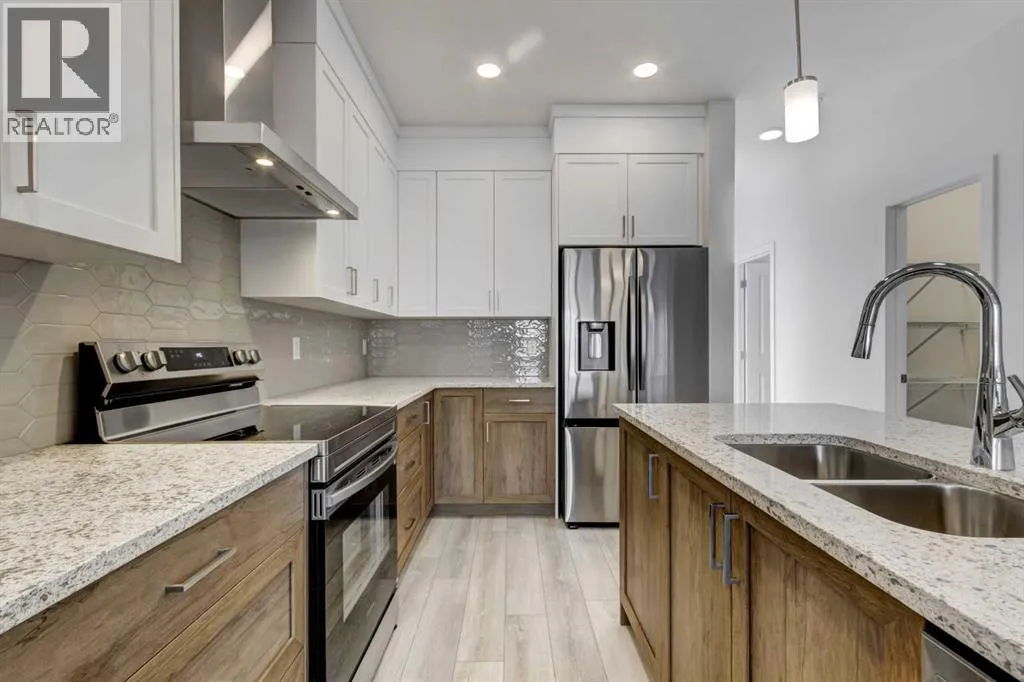 Introducing the COHEN: an amazing, BRAND NEW attached home by EXCEL HOMES offering 1744 SF above grade with a FULLY DEVELOPED, TWO BEDROOM LEGAL SUITE, W/SEPARATE ENTRANCE. This beauty is perfectly situated in Seton Ridge, across from a park, sports field & future school. SETON RIDGE, Calgaryâs newest urban hub directly south of Seton with sweeping views of the Bow River Valley & minutes from the bustling Seton Urban District with its restaurants, theatres, shopping, and essential services. Residents will love access to the SHOA Club, a 14,000 sq. ft. recreation facility. You'll love the views & value the privacy of no homes in front of yours! Step into a life of luxury and convenience where every detail has been meticulously crafted for comfort and style. Enjoy the benefits of living in an established neighborhood that brings a plethora of amenities right to your doorstep, along with swift access to major highways. The COHEN offers a sprawling 1726 sf of thoughtfully designed living space, perfect for both families and entertaining. The open floor plan, complemented by neutral designer tones, creates a welcoming atmosphere that is both elegant and comfortable. The chef-quality kitchen stands as the heart of the home, equipped with ceiling-height cabinets, two banks of pot/pan drawers, and upgraded stainless steel appliances, including chimney fan, and built-in microwave. The engineered stone countertops, a large island with seating, and a convenient pantry make it a dream kitchen for those who love to cook and entertain. The main floor also features versatile luxury vinyl plank flooring. On the main floor you'll also find a FLEX ROOM that can be used as a home office, guest bedroom or playroom. and half bath for convenience. Up to the second level where leisure meets luxury in the large central bonus room featuring vaulted ceilings & pot lighting â ideal for movie nights and family gatherings. The primary bedroom is a true retreat, boasting a walk-in closet and a spa-like ensuite with stone vanity tops, dual sinks & double sized shower. Two more generously sized bedrooms provide ample space and easy access to the main bathroom. The convenience continues with a laundry room strategically located on the same floor. The possibilities extend into the FULLY DEVELOPED basement - SEPERATE SIDE ENTRY to your LEGAL TWO BEDROOM BASEMENT SUITE. Your suite is built to upstairs standards & offers TWO bedrooms, TWO FULL BATHS, full kitchen w/lots of storage cabinets, SS appliances, PRIVATE LAUNDRY, vinyl plank flooring. Don't miss the chance to own this never-lived-in gem with quick possession available. This home will include front sod, gravel to the side yard and a 20x20 gravel parking pad. (id:27476)