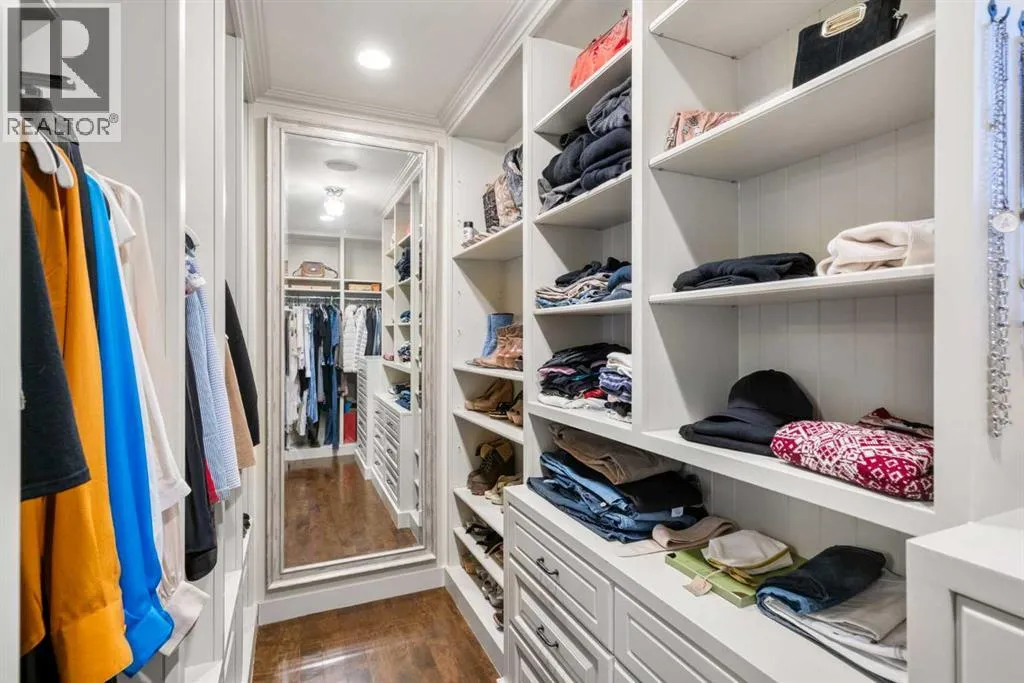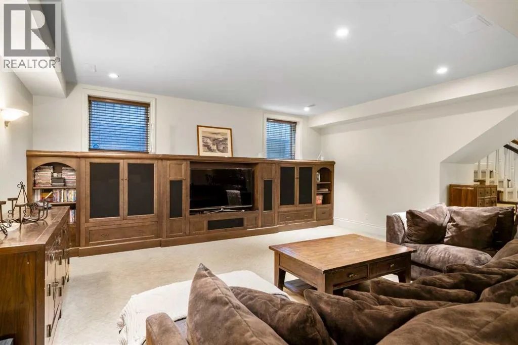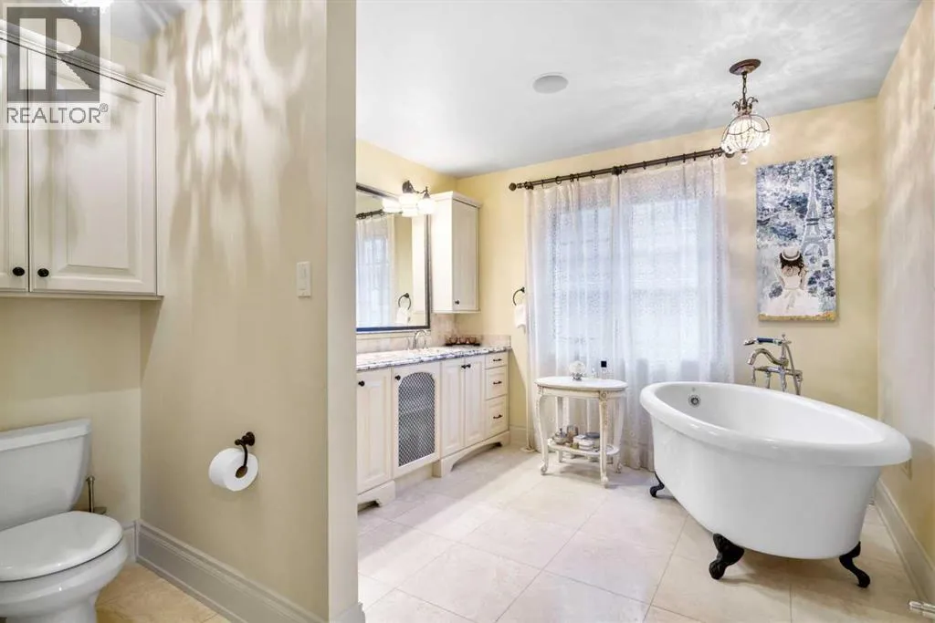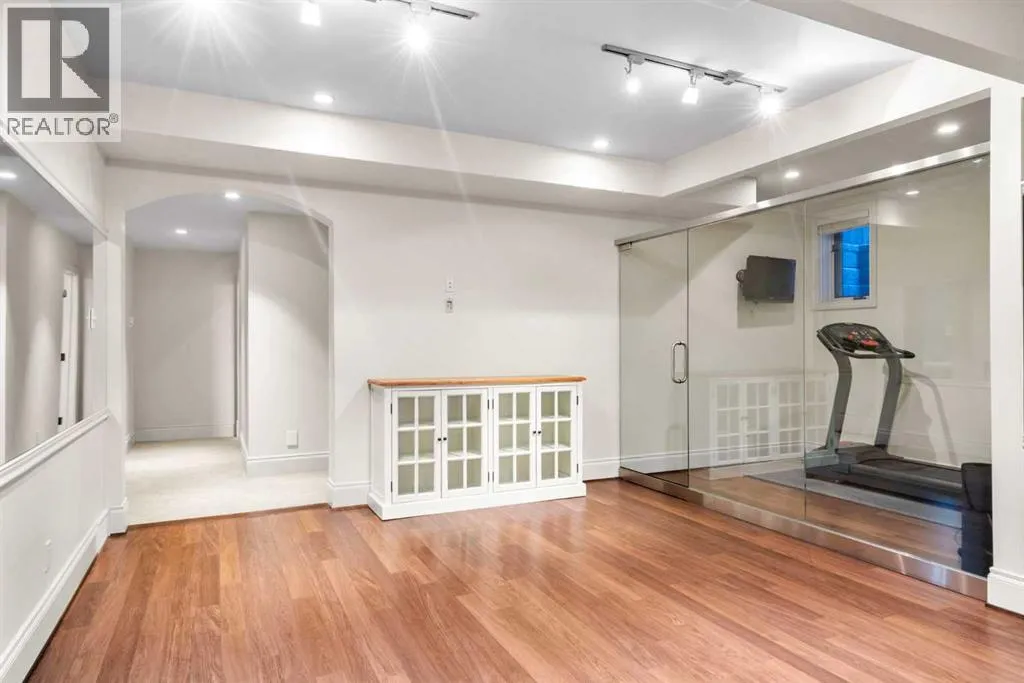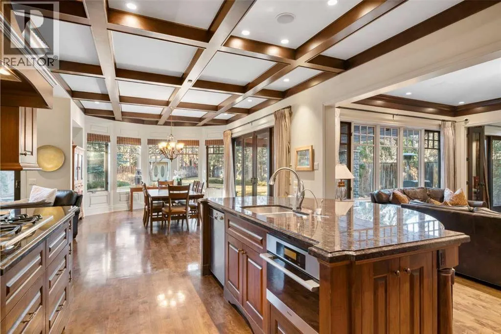This stunning Laratta built executive family residence, is an architectural masterpiece nestled on a most coveted Upper Mount Royal tree lined street overlooking Talon Park. Set on a private, estate sized 70' x 194' west facing lot surrounded by mature trees, meticulous landscaping, English country gardens, offering a rare blend of historic grandeur, modern luxury & resort-style living. Boasting 7158 sq. ft. of impeccably designed living space, this residence showcases gleaming hickory & hardwood floors throughout the upper levels, with beamed ceilings, crown mouldings, solid core doors, extensive millwork, designer fixtures & an abundance of natural light through expansive windows. The enclosed foyer opens to the entertaining sized great room with built-ins & gas fireplace offers seamless indoor outdoor flow. The gourmet kitchen with granite countertops, a striking oversized island with circular eating bar, loads of custom cabinetry, spacious pantry, beamed ceilings, professional appliances, effortless flow into the family sized dining area & sitting area with fireplace overlooking the yard. A private office with custom bookcases overlooks Talon park, while the main floor primary suite, currently a second family room, features tranquil views, a luxurious spa-inspired 5-piece ensuite with soaker tub, steam shower, dual sinks, marble countertops, heated marble floors & abundant storage. A guest powder room, private laundry with cabinetry & a functional mudroom leads to the heated extra wide double attached garage. The upper level offers five spacious bedrooms, including a primary bedroom with double closets, luxurious ensuite and overlooks the tranquility of the west yard. The secondary bedrooms all with ensuites & a retreat area deliver exceptional comfort, flexibility & privacy. The lower level designed for elevated leisure & entertainment, features an expansive family room with built-in cabinets, billiards room, a large wrap-around wet bar with dishwasher, microwa ve & beverage fridge, temperature controlled wine cellar with tasting lounge, a bedroom with ensuite, a large playroom currently a ballet studio & glass enclosed exercise area plus exceptional storage. Outdoors, the tranquil west facing yard is home to manicured grounds framed by mature trees, offering sun drenched lounging areas, distinct living spaces, patio zone perfect for gatherings, a full irrigation system & ample room for a future pool. This estate harmonizes style, functionality, serenity & ideally located within walking distance to top rated schools, parks, River Park, the Elbow River Pathways, community tennis courts, outdoor pools, Glencoe Club, Calgary Golf & Country Club, public library, downtown, the vibrant shops, restaurants & culture of 17th Avenue, 4th & 14th Streets. This rare offering represents an unparalleled opportunity for the discerning buyer seeking architectural excellence, intentional design, premium materials - this is more than a home, it's a statement of refined living. (id:27476)