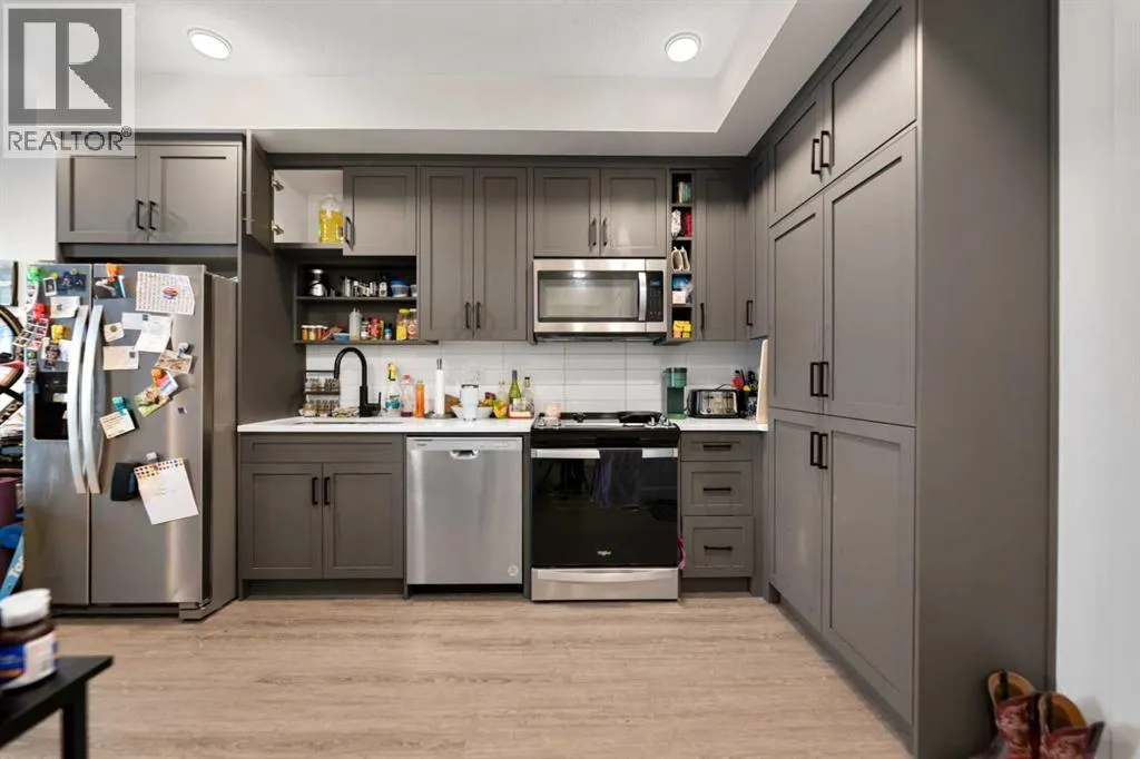 Discover a fantastic opportunity to own or invest in this 1-bedroom, 1-bathroom condo located at Argyle in the heart of the University District. Just an 8-minute walk to the University of Calgary, this home offers unbeatable convenience and lifestyle appeal.The unit features 9â ceilings, luxury vinyl plank flooring, quartz countertops, and contemporary shaker-style cabinetry with soft-close drawers. Additional highlights include a generous laundry room, roller window shades, modern LED lighting, and air-conditioning rough-in. Step onto the large balcony equipped with a gas line for BBQs, ideal for entertaining, along with a separate storage locker.Residents enjoy premium building amenities such as a fitness center, ownersâ lounge, meeting room, outdoor terrace, and community garden. Located steps from Retail Main Street, Central Commons Park, and over 30 shops and restaurants, including Village Ice Cream, Shoppers Drug Mart, OEB, Cineplex, and Save-On-Foods. With close proximity to Foothills Hospital, Alberta Childrenâs Hospital, Market Mall, Downtown, and the University, this is a rare opportunity in a vibrant and growing community. (id:27476)