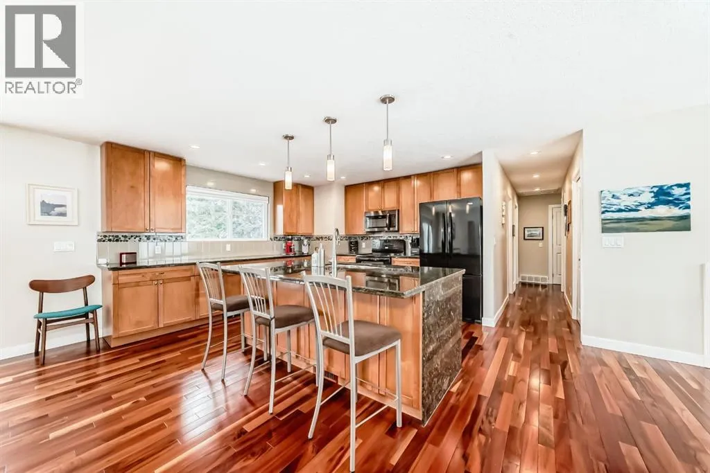 Updated home in walkable Varsity Village(this area features oversized neighbouring lots) on a quiet cul de sac (very private very little traffic with only one traffic entrance to this neighbourhood) perfect for a downsizing couple or family (4-5 bedrooms, three full bathrooms. The fully fenced, spacious large back yard backing onto a pedestrian path walkway creates a park like setting. Main floor features a modern open concept kitchen overlooking living room space (newer gas fireplace) with hardwood flooring throughout, granite countertops, lots of cabinetry, overlooking both the front and back yards. The dining room area walks out onto a very spacious deck (double tiered), perfect for barbequing and entertaining. The 4 piece ensuite bathroom on the upper floor features a large walk in shower with Grohe fixtures, and a double sink vanity in marble. The other 2 spacious bedrooms on the main floor share a main 4 piece bath. The downstairs was fully renovated in 2017 with luxury vinyl plank flooring, family room with a gas fireplace, 4th bedroom and a glass shower in a 3 piece bath. Walk up rear entrance from the lower level. Most amenities are within a 10 minute walk in any direction - Market Mall, U of C, University District, Brentwood Village, and Northland. Brentwood C Train station Several schools for all ages and both Foothills Campus and Alberta Children's Hospital, are within a 5-10 minute drive. Non smoking home, double attached garage.Upgrades over the last few years: Basement renovations (2017), Upstairs renovation (2010), Upstairs bathroom renovations, Grohe shower fixtures (2012), Back deck (2015), Maytag dishwasher (2025)Has central A/C which has upgraded parts as of 2024, Upgraded roof shingles (2009), Kenmore stove and refrigerator (2010), 2 gas fireplaces installed (2011), Hot Water Tank (2024), Hi efficiency furnace (2005), Newer windows (2005) (id:27476)