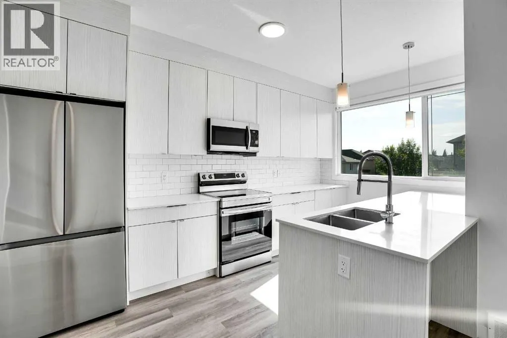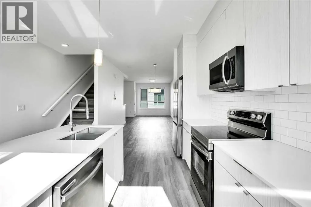Row / Townhouse â Corner Unit | Panorama HillsWelcome to this stunning corner-unit townhouse in Panorama Hills, offering abundant natural light and a stylish, modern open-concept layout.On the main level, youâll find a spacious bedroom, a convenient half bathroom, and direct access to the attached single garage.The second level features a bright and airy living room, dining area, and a well-appointed kitchen complete with stainless steel appliances and a breakfast-bar style countertop. A second half bathroom is also located on this floor, with large windows that fill the space with natural light.The top floor offers a generous primary bedroom with ensuite, a second bedroom, a full bathroom, and a dedicated laundry room for added convenience.This beautifully maintained home showcases vinyl plank flooring throughout, modern finishes, and is in near-new condition.Additional highlights include:Plenty of parking, including convenient parking directly in front of the unitAttached rear garage with rear-entrance accessClose to parks, walking paths, and elementary schoolsDonât miss your opportunity to own this exceptional home in one of Panoramaâs most desirable communities.Book your private showing todayâthis one wonât last! (id:27476)