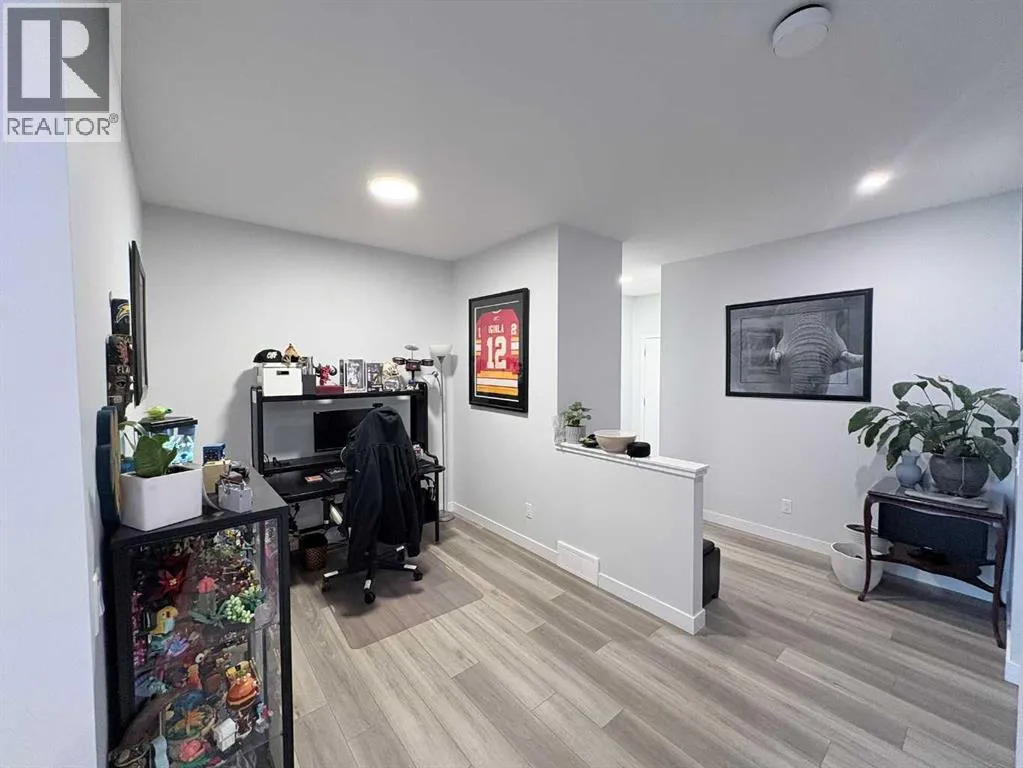 Welcome to this beautiful 2023 built fully upgraded 4-bedroom plus Den, 2.5 washrooms, 2113 square feet house in Glacier Ridge. As you enter, you are invited to a good size office/den and half bath on the other side. The high ceiling open concept living room with lots of natural lights and is great for entertaining. The big kitchen with floor to ceiling cabinetry with a Grand kitchen Island, Upgraded build in stainless steel appliances a pantry. The dining area is located right next to the kitchen and has a patio door with entry to the back yard. The beautiful stained railing with iron spindles lead to upstairs where you will find huge bonus room and a window bringing in natural light. Upstairs you will find a master ensuites with primary master with its own 5 piece ensuite and 3 additional bedrooms and a 5 piece bath on the separate sides of the level for additional privacy and their own good size closets. This floor is completed with the convenient laundry room with front load washer/dryer. A few upgrades to mention here with quartz for all countertops, tiles in wet areas, pot lights throughout, and luxury vinyl planks on the main floor. The untouched walk out basement awaiting your design. Currently tenanted and they have lived here since newly built, first set of tenants with lease ending July 2026. Hoping to stay! Please book your showing today to view this property. (id:27476)