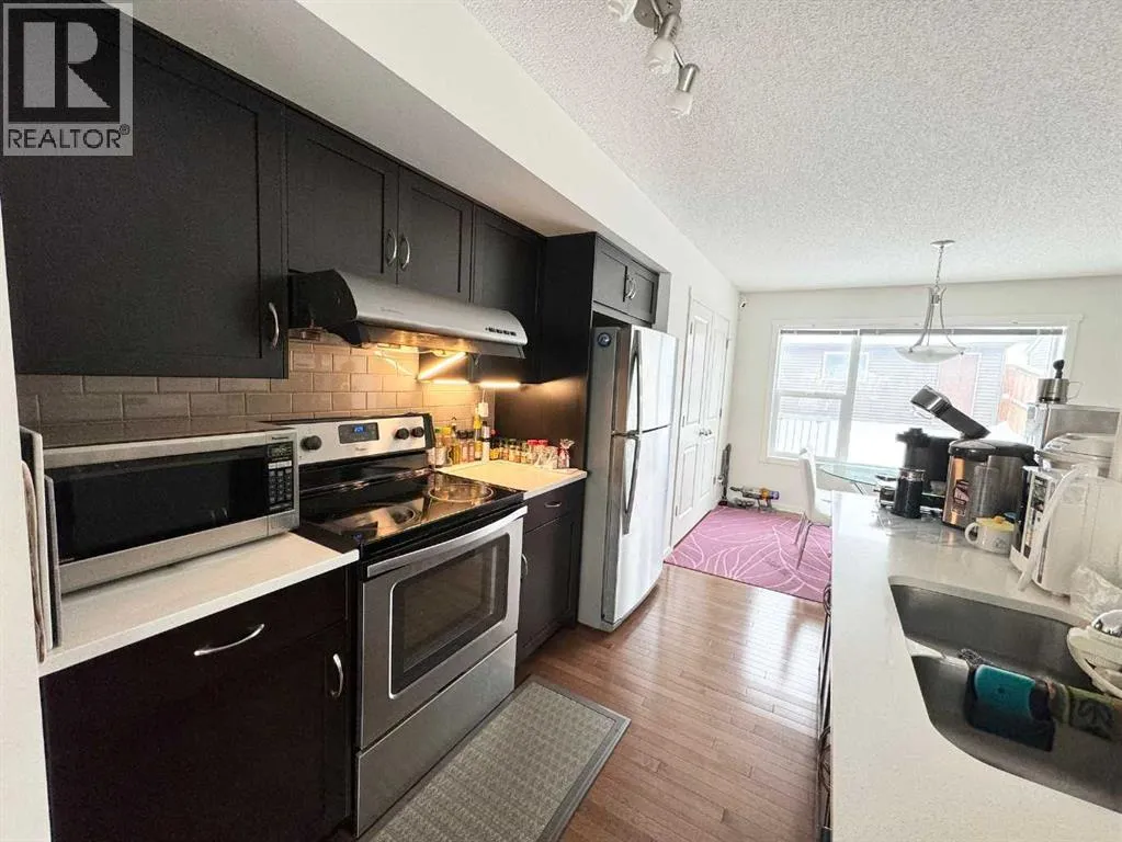 As good as new!!This Homes by Avi built gem is well situated on a quiet street right across from a picturesque park with a sunny south view! This immaculate home in Evanston is a turn key opportunity directly across from the park, offering the ideal family-friendly lifestyle. Step inside to an open-concept layout beginning with a welcoming front entry you'll be greeted by rich dark hardwood floors and tile throughout the main level. The living room is filled with natural light from the south-facing windows with a bright and open living room that flows into the generous dining area with room for the whole family. The well-appointed functional kitchen includes a large centre island, quartz countertops and stainless steel appliances. A rear dinning area and mudroom complete the functional main floor. Upstairs leads you to find 3 well appointed bedrooms including the spacious master suite with a walk-in closet and private ensuite. The secondary bedrooms are bright and thoughtfully designed, with one showcasing a stylish feature wall as well as a full bathroom. The fully developed basement provides a cozy retreat in the family room, a spacious fourth bedroom, and a full bathroom for guests. The laundry room and storage areas in the basement to complete the lower level. Outside, the landscaped backyard is ready to enjoy with a good size deck, walkway, and perfect for both children and pets. The double detached garage provides plenty of additional storage and a place to keep your vehicles out of the elements. This property offers peace of mind and the perfect setting for its next family. This home is centrally located in Evanston, placing you within easy reach of the communityâs best amenities. Pathways, parks, and playgrounds are just steps away, while nearby schools make this an ideal spot for families. . (id:27476)