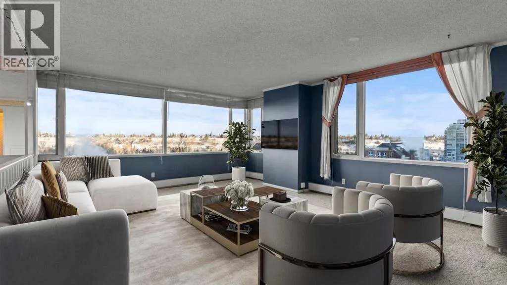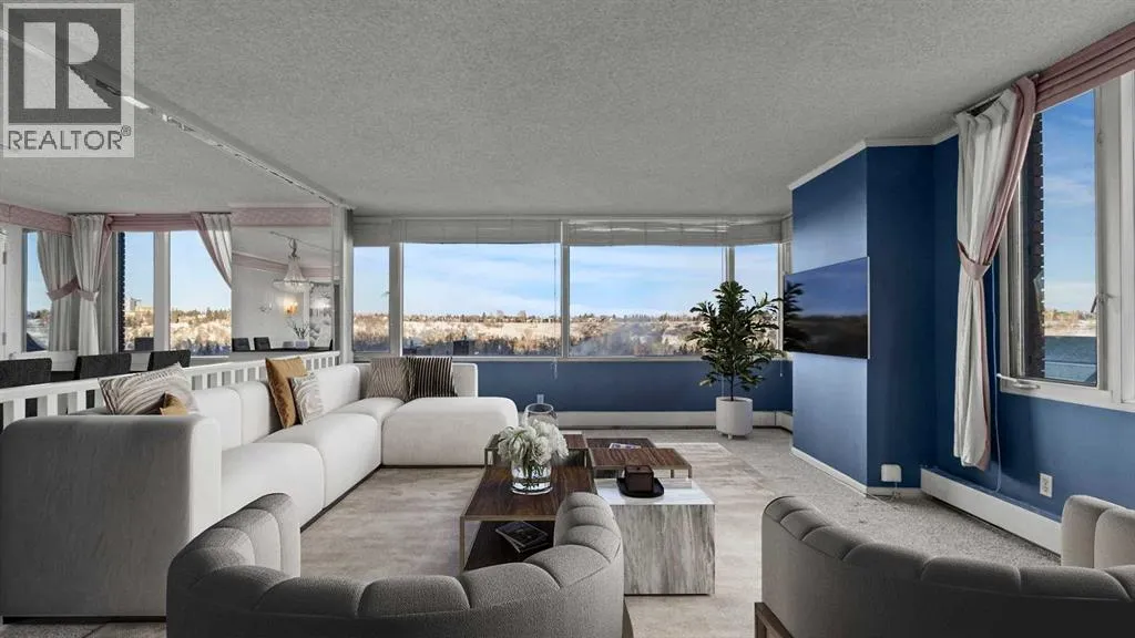 Experience refined urban living at EAU CLAIRE ESTATES, one of Calgaryâs most prestigious luxury addresses. This exclusive, impeccably maintained building offers an ELEVATED LIFESTYLE with 24-hour concierge service, on-site management, a beautifully RENOVATED LOBBY, and lush, landscaped courtyards. Residents enjoy premium amenities including a private outdoor PUTTING GREEN, fully equipped FITNESS CENTRE, INDOOR SWIMMING pool, hot tub with change rooms, secure bike storage, and the rare convenience of an underground CAR WASH bay. With only two residences per floor, privacy and tranquility are paramount.This expansive 1,756 SQ.FT. two-bedroom, two-bathroom residence is perched on the 10th floor and showcases sweeping, UNOBSTRUCTED VIEWS through wall-to-wall windowsâan outlook youâll never grow tired of. Perfectly positioned just steps from the BOW RIVER, Princeâs Island Park, and Calgaryâs extensive river pathway system, this location seamlessly blends nature with downtown convenience. Enjoy easy access to shopping, the Plus-15 network, and a short stroll to the iconic Peace Bridge, connecting you to Kensingtonâs vibrant cafés, boutiques, and dining scene. The home features a spacious, open layout and is ready for updates, presenting an exceptional opportunity to enhance and personalize the space. Even straightforward improvementsâsuch as replacing the flooring, fresh paint throughout, and updated lighting fixturesâwould make a dramatic difference, while a more comprehensive renovation could transform the unit into a truly spectacular, custom luxury retreat.A rare opportunity to design your dream home in one of Calgaryâs most sought-after luxury buildings â this is Eau Claire living at its finest. (id:27476)