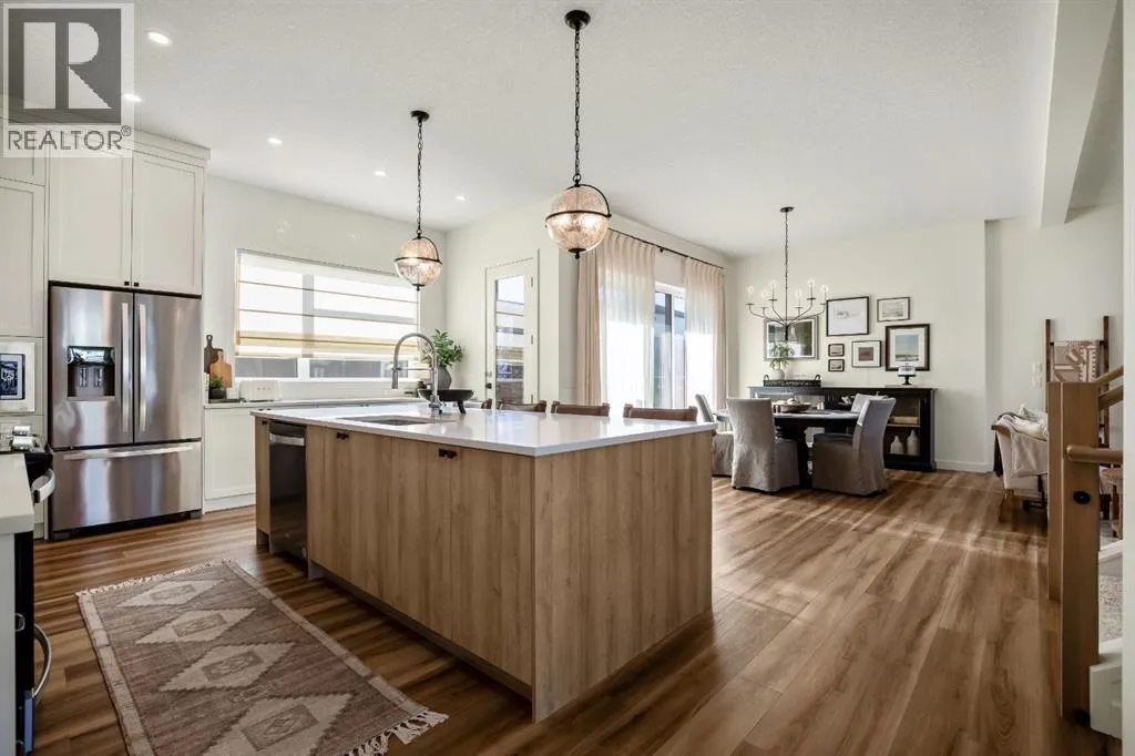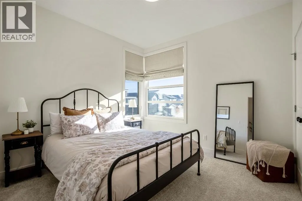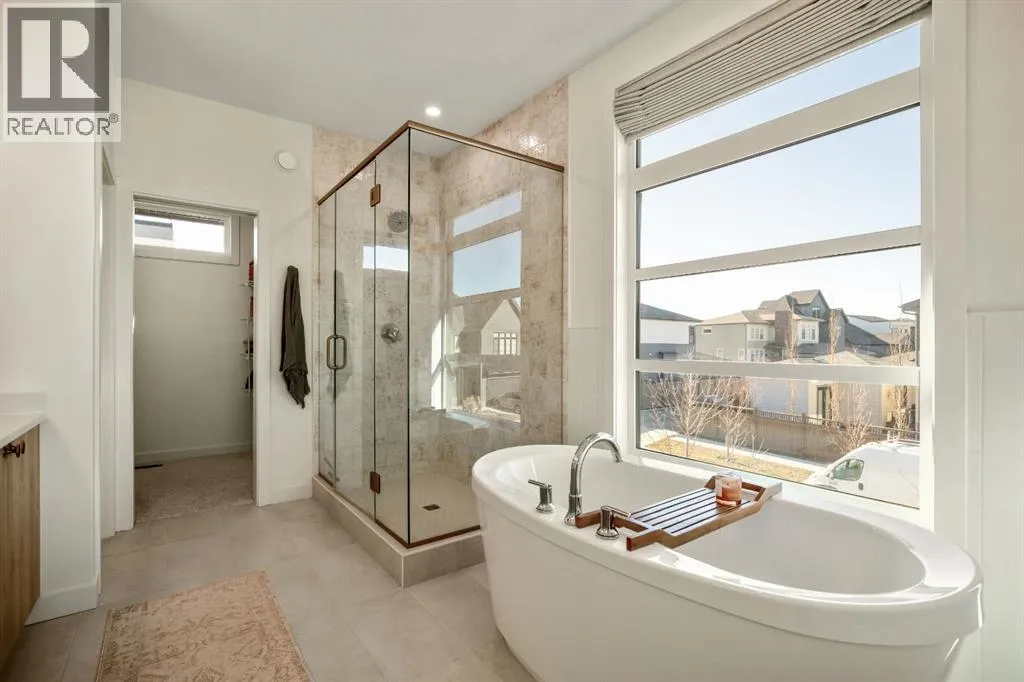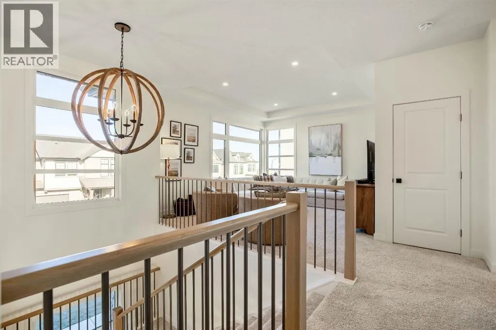 Experience the essence of luxury living in this exquisite home. Situated in the highly desirable community of Alpine Park. As you approach this residence on an oversized corner lot you will notice the great curb appeal, gemstone lights, and welcoming front porch. In like-new condition, this stunning custom-built home offers over 2,600sq. ft, an OVER SIZED TRIPLE CAR HEATED GARAGE, a South-facing fully landscaped yard with irrigation, and extensive upgrades throughout. The sophisticated design boasts soaring 10-foot ceilings on the main-floor. Highlighted by an expansive chefâs kitchen. Complete with ceiling-height shaker-style cabinets, soft-close doors and drawers, high-end upgraded appliances, and gorgeous stone counters. Around the corner is a separate coffee space, large pantry for additional storage, and mudroom leading to your convenient TRIPLE ATTACHED HEATED GARAGE with an additional bay for storage, EV ready rough-in and 220-amp service. There is direct access off the kitchen to your large low maintenance TREX deck and sun-drenched, South facing yard. The kitchen seamlessly transitions to the elegant well sized dining area with a floor to ceiling patio sliders leading to the deck creating a great indoor-outdoor space. Adjacent is the grand living room accentuated by a gas fireplace adorned with a wood mantle and millwork detail. The main level is completed with an office or playroom and a convenient powder room. As you head upstairs notice the airy open riser staircase and elegant railing. This opens to a generous family room creating a versatile space for relaxing, watching movies, or spending quiet evenings together. There are 9-foot ceilings throughout this level, which includes two well sized bedrooms, a 5pc main bath with stone counters, and a convenient upper-level laundry room with sink rough in, all situated away from the Primary retreat. The primary retreat serves as a tranquil sanctuary, boasting a tray ceiling detail, walk-in closet, and luxuri ous ensuite, complete with a freestanding soaking tub including MOUNTAIN VIEWS, a generously sized fully tiled shower, and a private water closet. The unfinished lower level is ready for your creativity with oversized windows, 9â ceilings, bathroom and bar rough ins. Enjoy the comforts of air conditioning, custom drapes, designer lights, upgraded plumbing fixture, and triple pane windows. Easy access to the mountains, via Stoney trail, downtown 20 minutes away, and 5 minutes to Costco and shopping This estate home is a rare find with no neighbour beside you. Donât miss this opportunityâschedule your private showing today or explore the virtual tour! (id:27476)