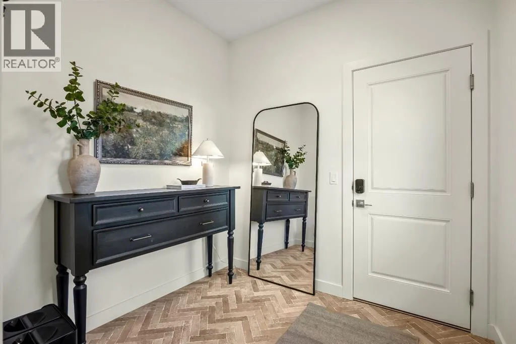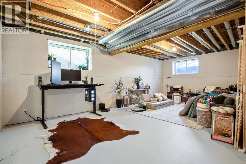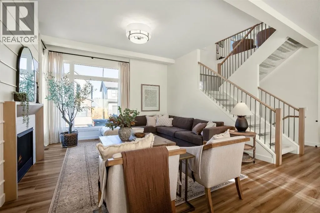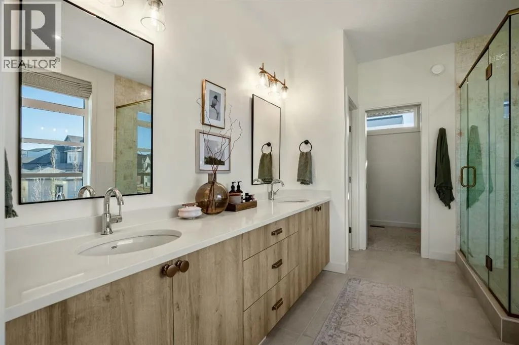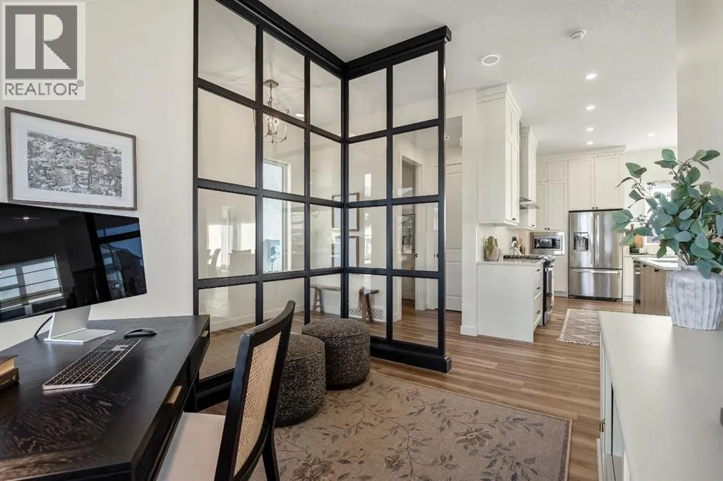 Experience the essence of luxury living in this exquisite home. Situated in the highly desirable community of Alpine Park. As you approach this residence on an oversized corner lot you will notice the great curb appeal, gemstone lights, and welcoming front porch. In like-new condition, this stunning custom-built home offers over 2,600sq. ft, an OVER SIZED TRIPLE CAR HEATED GARAGE, a South-facing fully landscaped yard with irrigation, and extensive upgrades throughout. The sophisticated design boasts soaring 10-foot ceilings on the main-floor. Highlighted by an expansive chefâs kitchen. Complete with ceiling-height shaker-style cabinets, soft-close doors and drawers, high-end upgraded appliances, and gorgeous stone counters. Around the corner is a separate coffee space, large pantry for additional storage, and mudroom leading to your convenient TRIPLE ATTACHED HEATED GARAGE with an additional bay for storage, EV ready rough-in and 220-amp service. There is direct access off the kitchen to your large low maintenance TREX deck and sun-drenched, South facing yard. The kitchen seamlessly transitions to the elegant well sized dining area with a floor to ceiling patio sliders leading to the deck creating a great indoor-outdoor space. Adjacent is the grand living room accentuated by a gas fireplace adorned with a wood mantle and millwork detail. The main level is completed with an office or playroom and a convenient powder room. As you head upstairs notice the airy open riser staircase and elegant railing. This opens to a generous family room creating a versatile space for relaxing, watching movies, or spending quiet evenings together. There are 9-foot ceilings throughout this level, which includes two well sized bedrooms, a 5pc main bath with stone counters, and a convenient upper-level laundry room with sink rough in, all situated away from the Primary retreat. The primary retreat serves as a tranquil sanctuary, boasting a tray ceiling detail, walk-in closet, and luxuri ous ensuite, complete with a freestanding soaking tub including MOUNTAIN VIEWS, a generously sized fully tiled shower, and a private water closet. The unfinished lower level is ready for your creativity with oversized windows, 9â ceilings, bathroom and bar rough ins. Enjoy the comforts of air conditioning, custom drapes, designer lights, upgraded plumbing fixture, and triple pane windows. Easy access to the mountains, via Stoney trail, downtown 20 minutes away, and 5 minutes to Costco and shopping This estate home is a rare find with no neighbour beside you. Donât miss this opportunityâschedule your private showing today or explore the virtual tour! (id:27476)