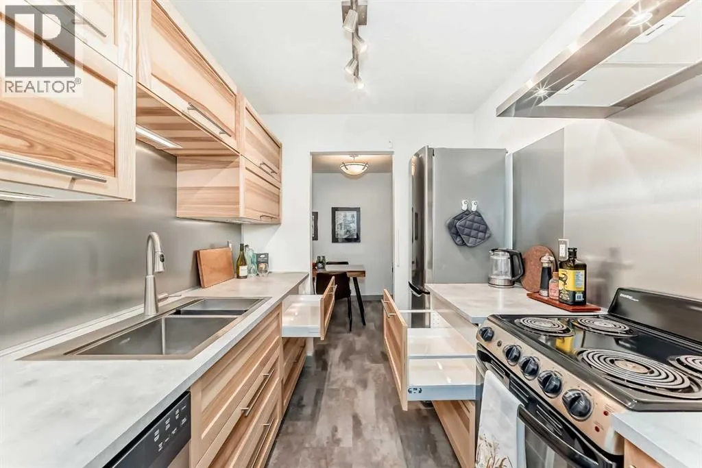 Welcome to the heart of Renfrew â one of Calgaryâs most vibrant and sought-after inner-city communities. Just minutes to downtown (a quick 3-minute drive) and walking distance to Bridgelandâs incredible dining scene, cafés, shopping, and river pathways, this location delivers true urban convenience without the downtown price tag.Offered at $214,900, this is the lowest-priced condo in both Renfrew and Bridgeland â and it shows beautifully inside.Originally built in 1981, this unit has been extensively updated and feels fresh, modern, and move-in ready. The kitchen features newer faux concrete finished countertops, newer stainless steel appliances, upgraded soft-close cabinetry, and in-cabinet lighting that adds a warm, polished touch. The overall aesthetic is clean, stylish, and incredibly inviting â a space that simply feels good the moment you walk in.Additional highlights include heated underground parking (a must for Calgary winters), newer paint, a generous in-suite storage room with potential to explore adding laundry, and a well-managed building with an elected board that stays on top of maintenance and operations.Whether youâre a first-time buyer, investor, or someone wanting an inner-city lifestyle at an unbeatable price point, this is exceptional value in an unbeatable location. (id:27476)
