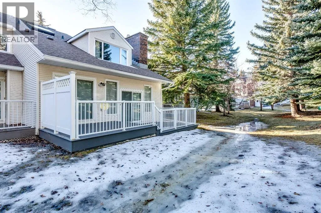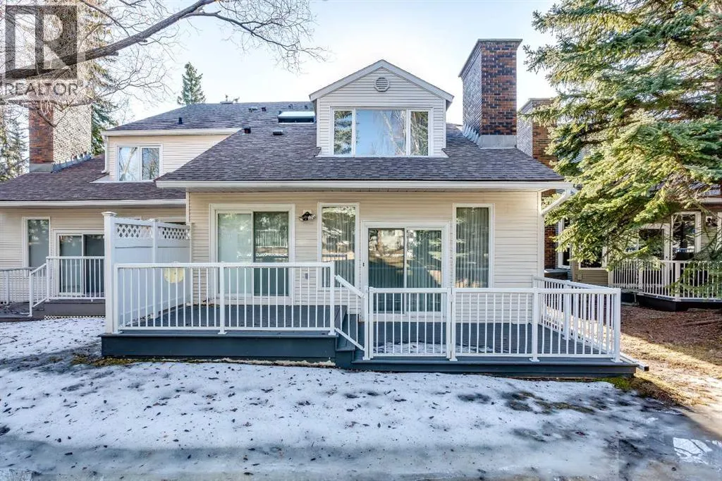 Fantastic opportunity to live in Woodridge Estates, ideally located in the established community of Woodlands and bordering Fish Creek Park. This spacious townhome features a pleasing and functional floor plan with 3 bedrooms and 3 bathrooms, a main-floor den, formal dining room, and a sunken living room filled with natural light. The renovated kitchen includes a breakfast nook and opens to a deck off both the living room and nook, perfect for enjoying the peaceful surroundings.Upstairs, the large primary bedroom offers a sitting area and a 5-piece ensuite, while the second bedroom provides generous space. The fully developed lower level includes a recreation room and a versatile flex room. Additional highlights include a double attached garage and an unbeatable location with direct access to Fish Creek Parkâs walking and biking paths. Conveniently close to shopping, Costco, and Stoney Trail, this home combines space, comfort, and an exceptional setting. A Great Place to Call Home (id:27476)