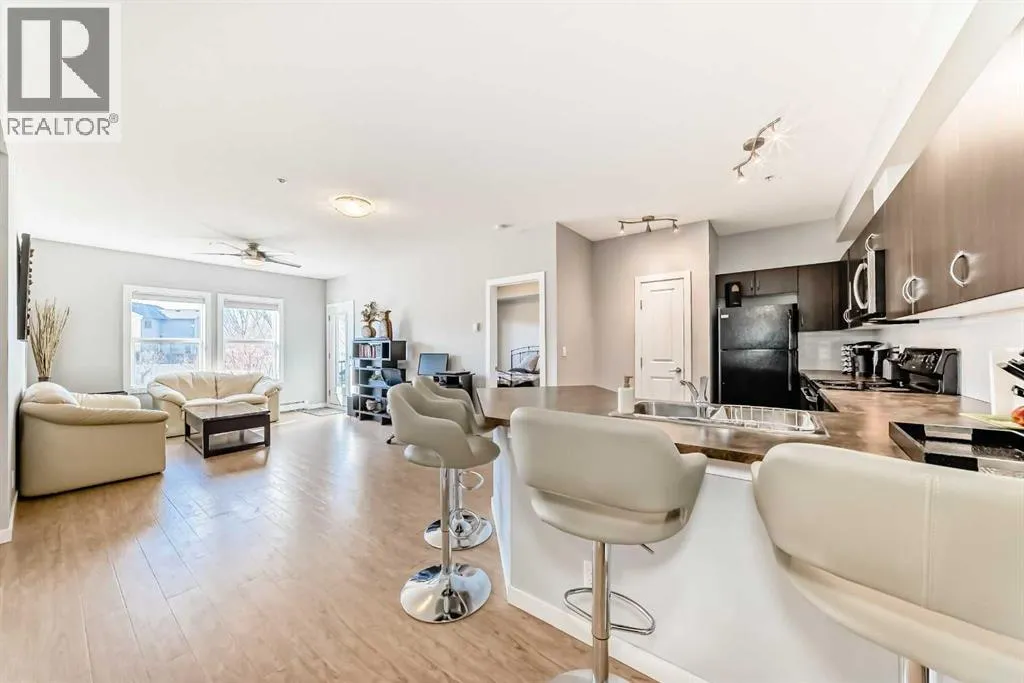 Welcome to this beautifully maintained 2-bedroom, 2-bathroom home offering comfort, style, and an ideal layout. Featuring a spacious open-concept floor plan, this inviting unit is perfect for both everyday living and entertaining.The bright living and dining areas flow seamlessly together, highlighted by large windows and access to a private west-facing balconyâperfect for enjoying afternoon sunshine and stunning sunsets. The thoughtfully designed kitchen with plenty of counter space opens to the main living space, creating a warm and connected atmosphere.The generous primary bedroom includes a private ensuite bathroom and walk-through closet, providing a peaceful retreat at the end of the day. A second well-sized bedroom and full bath offer flexibility for guests, family, or a home office. In-unit laundry adds everyday convenience, while the open and functional layout enhances the sense of space and flow throughout.Meticulously cared for and move-in ready, this bright and stylish condo showcases true pride of ownership located in ideal Cranston, one of the premier communities in Calgary. Close to 3 schools, parks and playgrounds, shopping, restaurants, and great access to Stoney Trail and Deerfoot Trail for easy commutes. (id:27476)