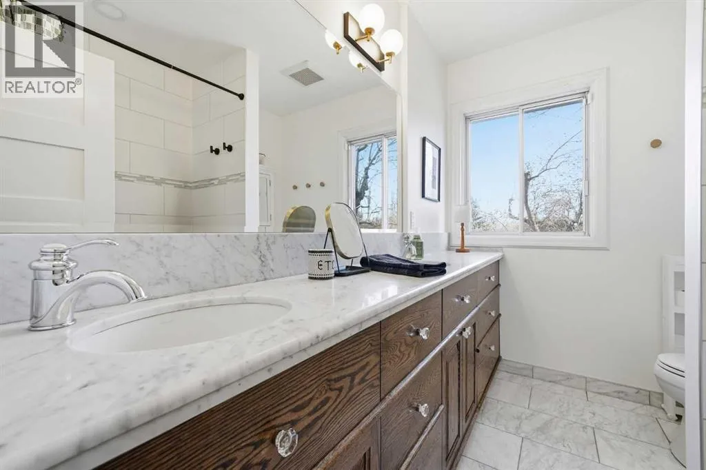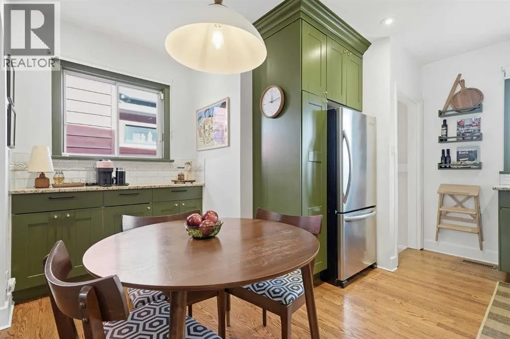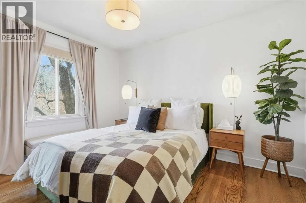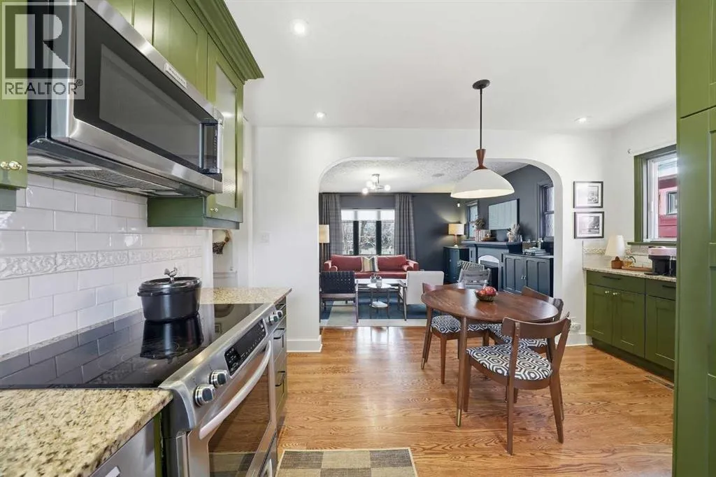 Modern luxury meets old world charm in this beautifully re-done 1949 character home. Situated on a LARGE 40â x 119â LOT, this UPPER MOUNT ROYAL BUNGALOW is perfectly located in the heart of inner-city Calgary. OWNER OCCUPIED and lovingly cherished, this home has been tastefully updated over the years. Many of the ORIGINAL CHARACTER FEATURES remain, making this a charming space full of history. The smartly laid out floor plan includes a total of 902 square feet above grade and a FULLY DEVELOPED BASEMENT, including 3 BEDROOMS AND 2 FULL BATHROOMS. Perfect for a professional couple or small family! Upon entering, you'll find original oak hardwood flooring, professionally refinished in a dark wood tone, a light and bright living and dining area upgraded with colour drenched walls and modern lighting. The kitchen has been transformed to modern standards with beautiful shaker cabinetry, granite countertops, and a stainless steel appliance package including a new dishwasher. Proceed through classic arched doorways to the bathroom, updated with a marble countertop and refinished wood vanity, plus dual sinks. Completing the main floor are two generously sized bedrooms. The basement, completed in 2013 with permits, features a large recreation space - full of light from four windows. There is a third bedroom and a full bathroom - a great guest space. Heading outside into the landscaped yard, you'll find a large lawn, perfect for the kids or pets to play. Completing the yard is the sturdy storage shed, single garage, plus a two car parking pad - plenty of off-street parking for visitors! Upgrades include: newer roof approximately 2018, furnace 2021, hot water tank 2021, A/C 2021, dryer 2025, Hunter Douglas blinds 2021, and interior paint. With a park and library right across the street, easy access into the heart of downtown via 14th street, and situated in the William Reid School catchment zone - this is an excellent purchase at only $699,900! Tired of builder basic homes? Own a piece of history in this adorable, craftsman-made, classic bungalow! (id:27476)