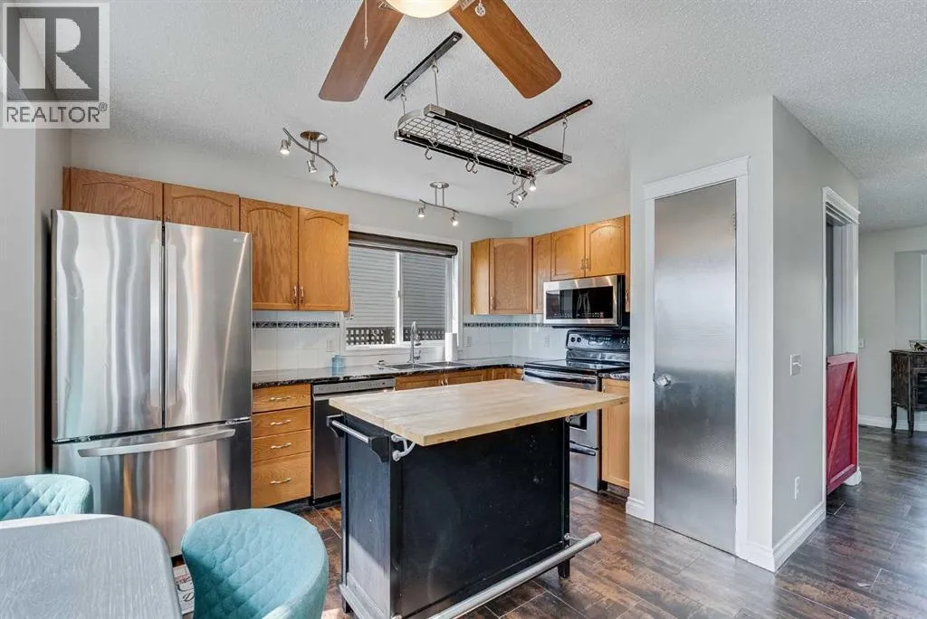 Welcome to 31 Inverness Grove SE in the beautiful community of McKenzie Towneâa meticulously maintained and beautifully upgraded two-story home offering over 1,750 sq. ft. of living space, priced at $545,000. This 3-bedroom, 1.5-bathroom home blends thoughtful functionality with modern finishes throughout. Step inside to discover porcelain tile flooring on the main level, paired with granite countertops, a spacious kitchen island, and updated stainless steel appliances. Pet lovers will appreciate the built-in kennel in the kitchen. The main living area is warm and inviting, featuring a gas-burning stainless steel fireplace and mantle that adds a sleek, modern look. Upstairs, the primary bedroom includes a walk-in closet complete with built-in organizers while the additional 2 bedrooms provide ample space and sunlight. The home is equipped with ceiling fans for optimal air circulation and comfort throughout. Step outside into an entertainerâs dream: a massive backyard with a $22,000 stone patio, hot tub, BBQ, fire pit, patio umbrella, and two lounge chairs, all thoughtfully included. The composite wood front porch and dog run add even more functionality to the exterior, while the oversized garage boasts a rare wood-burning fireplaceâideal for year-round use or as a workshop haven. Hobbyists and professionals alike will value the NEMA 14-50R outlet (50 Amp, 125/250 Volt) in the garageâperfect for welding or electric vehicle charging. This is a home designed for comfort, utility, and entertainment. Donât miss your chance to own this one-of-a-kind property in the desirable community of McKenzie Towne! (id:27476)