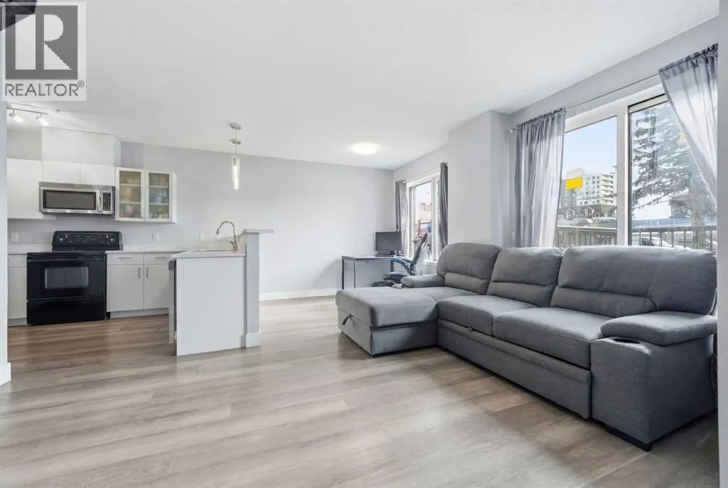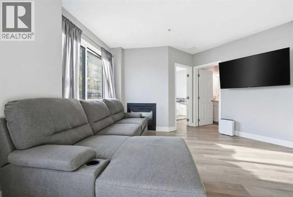 Welcome to this beautifully updated, south-facing ground-level condo in the heart of downtown Calgary â a rare offering with no neighbors on either side, as the only ground-floor unit in the building.Enjoy incredible natural light all day with two south-facing living room windows, a south-facing bedroom window, and a south-facing private balcony. The open-concept layout features stylish LVP flooring, quartz countertops, stainless steel appliances, in-suite laundry, and a cozy double-sided fireplace connecting the living space and bedroom.This well-maintained unit offers modern finishes throughout and a smart layout that maximizes both comfort and functionality â perfect for professionals, investors, or first-time buyers.Located just steps from BMO Centre and the iconic Calgary Stampede Grounds, youâll love being close to transit, dining, entertainment, and everything downtown has to offer.Well-priced, move-in ready, and in a fantastic central location â this is urban living at its best. (id:27476)