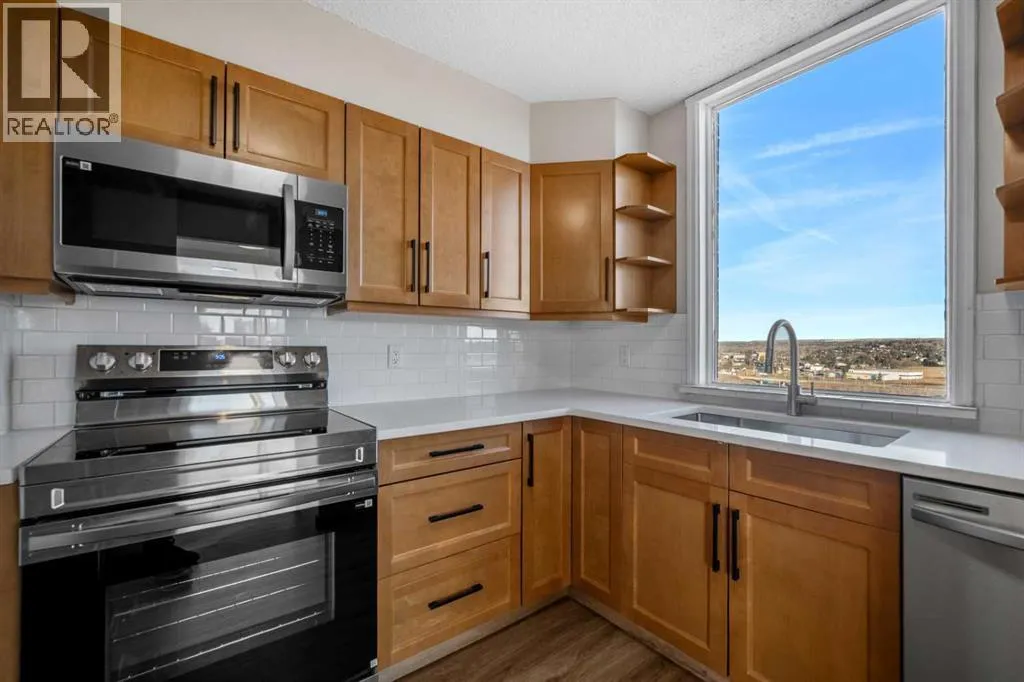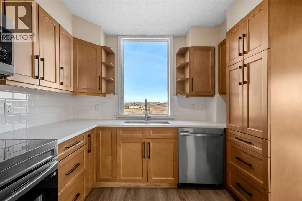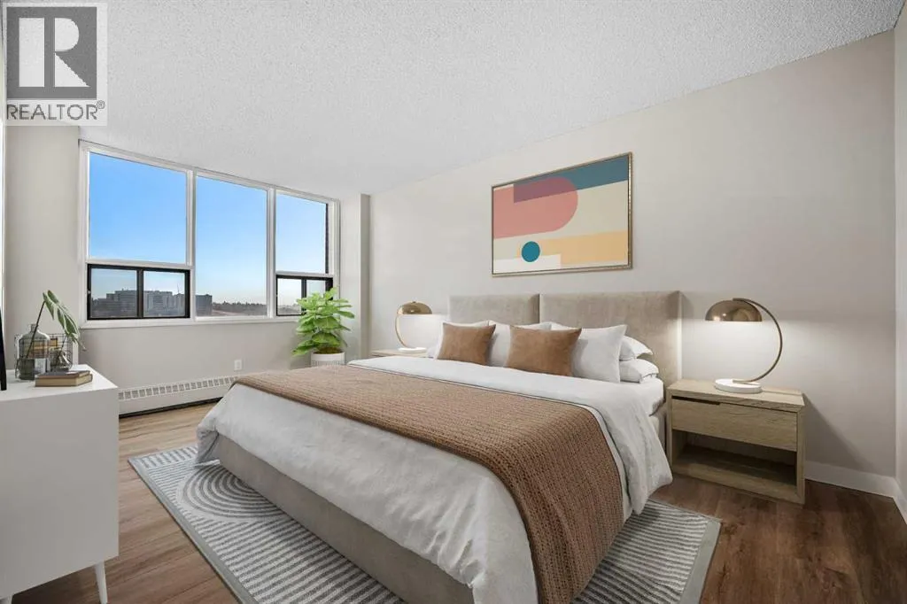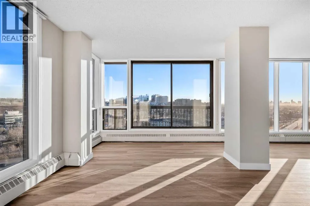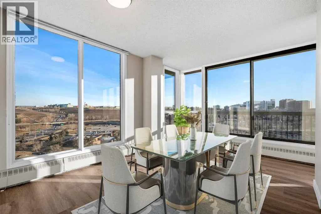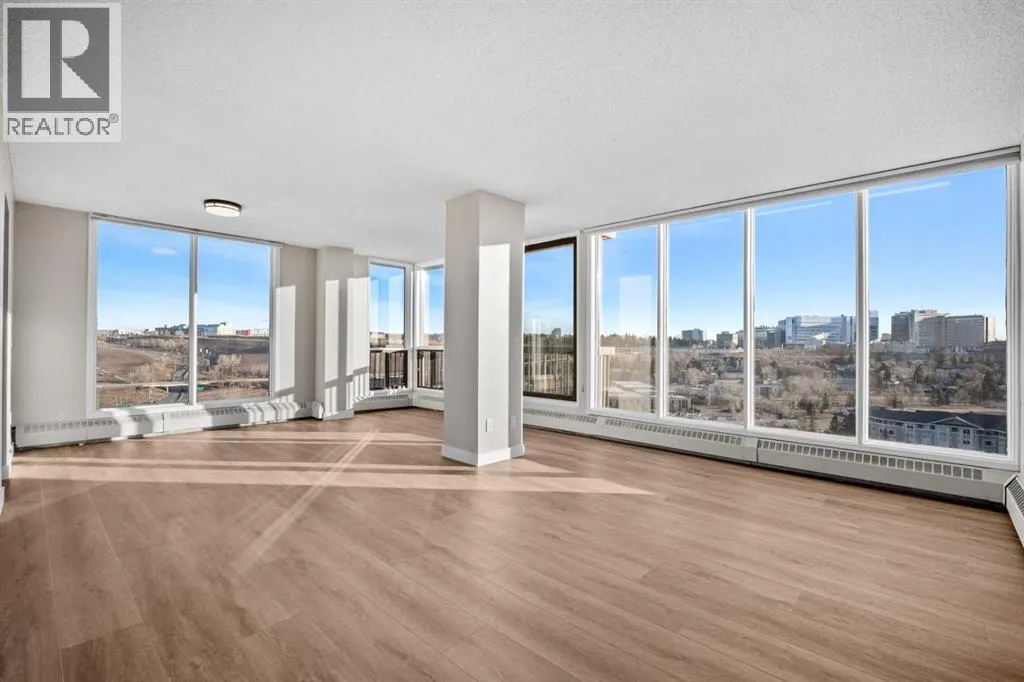 Welcome to Riverside Towers in Point McKay, one of Calgary's most desirable inner-city 18+ high-rise communities, perfectly situated along the banks of the Bow River and just minutes from downtown. This updated 2-bedroom, 2-bathroom corner unit feels like a luxurious hotel and is just minutes from downtown. It boasts stunning floor-to-ceiling, 180-degree panoramic views of the Calgary skyline and the scenic northwest rolling hills.Inside, the bright and open layout has been freshly painted, creating a functional and inviting space perfect for everyday living and entertaining. Thoughtful updates include wide neutral luxury vinyl plank flooring throughout, a beautifully renovated kitchen with solid wood cabinetry featuring dovetail drawers, imported quartz countertops, a tiled backsplash, and brand-new stainless steel appliances. Natural light fills the space, highlighting the modern finishes and expansive views.The primary bedroom serves as a private retreat, complete with a walk-in closet and a 2-piece ensuite. The generously sized second bedroom is versatile, suitable for a roommate, guest bedroom, or home office. The main bathroom features an oversized vanity with ample storage and a walk-in shower. Additional conveniences include in-suite laundry, extra in-suite storage, and upgraded lighting throughout.This home comes with one underground heated and secured parking stall, a separate storage locker, and access to a car wash bay in the parkade. Residents benefit from 24-hour concierge service, enhancing security and fostering a true sense of community. The amenity-rich complex includes access to a fitness center with a pool, a liquor store, a dental center, a library, an indoor golf range, a hot tub, a spa, and indoor pickleball courts currently under construction (discounted membership available). You will never want to leave!Located just steps from the Bow River pathway system, Edworthy Park, Foothills and Children's Hospitals, the University of Calgary, and with quick access to downtown and the mountains, this is urban living at its finest and did i mention the building is super pet friendy? Whether you're enjoying daily river walks or taking advantage of the unbeatable location, this home offers exceptional lifestyle, comfort, and value. Book your private showing today. (id:27476)