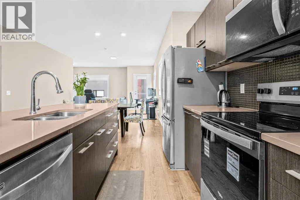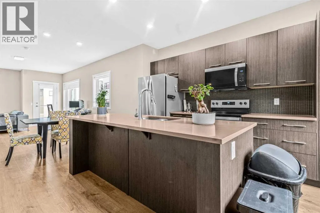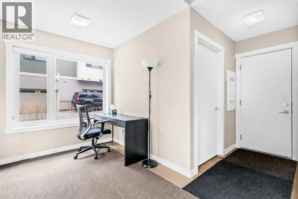 Welcome to this SPACIOUS CORNER UNIT townhome, ONE OF THE LARGER UNITS IN THE COMPLEX, located in the highly desirable community of Sherwood NW Calgary. This 3 bedroom, 2.5 bathroom home features a DOUBLE ATTACHED GARAGE, a den, and a bright OPEN CONCEPT FLOOR PLAN, making it an excellent opportunity for homebuyers or investors.As you step inside, youâre welcomed by a functional mudroom with direct access to the garage and a SUN FILLED DEN surrounded by large windows, ideal for a home office or flex space. The main living level showcases HIGH CEILINGS and OVERSIZED WINDOWS that fill the home with natural light. The OPEN CONCEPT layout is perfect for entertaining, with a formal dining area flowing into the spacious living room and modern kitchen featuring STAINLESS STEEL APPLIANCES, ample cabinetry, and generous counter space. This level is complete with a 2 piece bathroom, stacked laundry, and a LARGE PRIVATE BALCONY perfect for relaxing on warm days.Upstairs, youâll find THREE SPACIOUS BEDROOMS, including a generously sized primary suite with a WALK IN CLOSET and PRIVATE ENSUITE. Two additional bedrooms with large closets, a 4 piece bathroom, and extra storage complete the upper level.Conveniently located close to SHOPPING CENTRES, T&T SUPERMARKET, PUBLIC TRANSIT, PARKS, and all major amenities, with QUICK ACCESS TO STONEY TRAIL. A rare opportunity to own a premium corner unit townhome in NW Calgary. (id:27476)