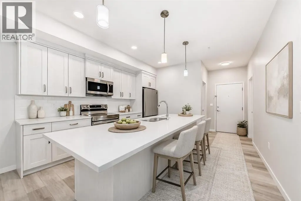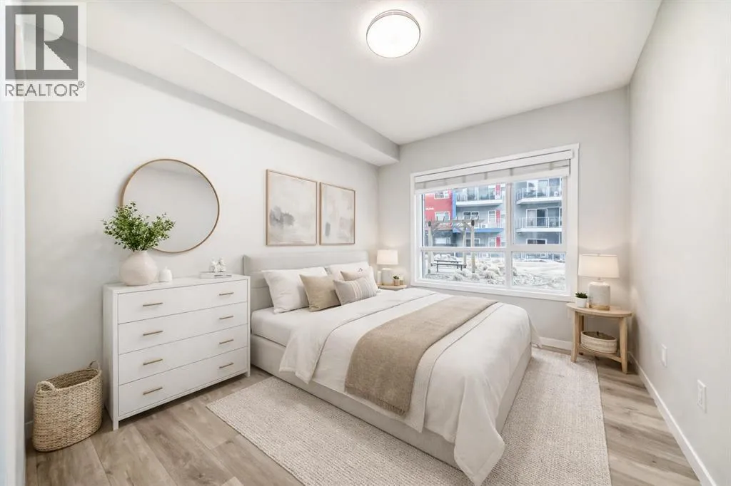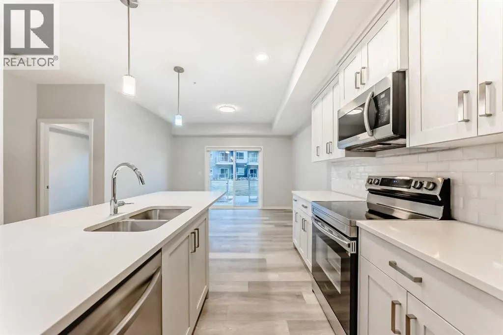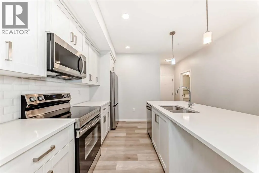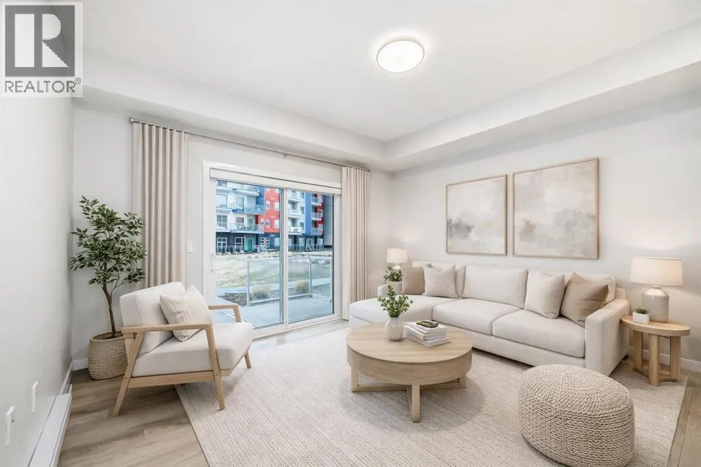 Welcome to Seton Park Place! This MODERN 2 BED, 1 BATH MAIN-FLOOR UNIT is the perfect blend of COMFORT and CONVENIENCE, with LOW CONDO FEES, and located just steps from Calgary's SOUTH HEALTH CAMPUS. Enjoy 639sqft of thoughtfully designed living space with a spacious OPEN-CONCEPT LAYOUT that seamlessly connects the kitchen, living, and dining areas. The contemporary kitchen features STAINLESS STEEL APPLIANCES, QUARTZ COUNTERTOPS, and FULL HEIGHT CABINETRY. The large PRIMARY BEDROOM includes a WALK-IN CLOSET, while the second bedroom is perfect for guests, a home office, or flex space. Step outside onto your EAST-FACING PATIO that opens directly to a BEAUTIFULLY LANDSCAPED COURTYARD, ideal for morning coffee or summer BBQs (GAS LINE INCLUDED). The unit comes complete with TITLED UNDERGROUND PARKING and IN-SUITE LAUNDRY for added convenience. Located in the heart of vibrant SETON, you're minutes from SHC, the YMCA, Superstore, Cineplex, restaurants, cafes, and everything this award-winning community has to offer. Whether you're a FIRST-TIME BUYER, HEALTHCARE WORKER, DOWNSIZER, or INVESTOR, this turnkey unit offers unbeatable VALUE in one of Calgary's fastest-growing neighbourhoods. Book your showing today! (id:27476)