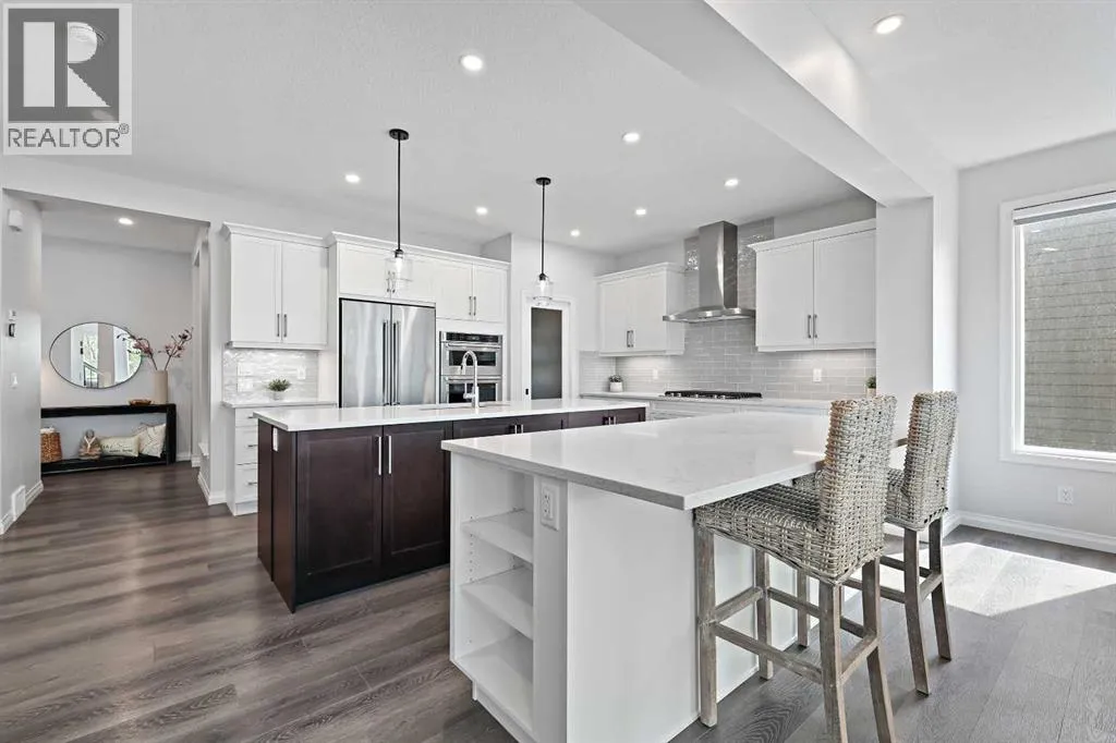 Welcome to your private retreat! This beautifully designed fully finished walk-out home offers elevated living surrounded by natural beauty. Situated on a spacious, 7071 sq ft, tree-lined lot, this property blends refined comfort with the tranquility of a forested setting. Step inside to discover a thoughtfully crafted floor plan with expansive windows that flood the home with natural light and offer picturesque views of the large, nature inspired yard. Enjoy seamless indoor-outdoor living with direct walk-out access to your backyard oasisâperfect for entertaining or quiet evenings under the stars. Upstairs, the elevated main living area boasts soaring ceilings, elegant finishes, and an inviting open-concept layout ideal for both relaxation and hosting. The chefâs kitchen flows effortlessly into a cozy living room with a fireplace and a dining area with forest views and sliding patio doors to your 26ft deck. The ease of entertaining blends naturally from the expansive prep island to the extended flush eating bar showcasing the Ivory Coast Quarts counter tops, ample cabinetry with a 36" KitchenAid gas cooktop,Built-in wall oven with microwave combo,dishwasher with stainless steel interior,counter depth refrigerator with internal water and ice and a Venmar Chef 36" designer hood fan. The walk-in pantry blends seamlessly with the kitchen area while the upgraded black matt hardware throughout adds a distinct style and modern feeling. Truly a home that features an urban decor while maintaining a classic and timeless ambiance. The floor to ceiling Kingsman feature fireplace with stone surround brings you back to the woods feel while the abundance of windows added to this home and sleek selections offer you a hotel inspired stay. Retreat to a spacious primary suite featuring a spa-like ensuite including dual vanities,make-up niche, over sized bath,stand alone shower and huge walk-in closet that connects to the 2nd floor laundry. Additional bedrooms and centralized Bonus Ro om separating the the two wings for added privacy is always appreciated. Tray ceilings compliment the Primary Bedroom and Bonus Room along with double French Doors. A fully developed lower level offer room for family, guests,or home office. Dual Primary Suites are featured with each having their very own en suite and a secondary laundry room along with a cozy living room area that opens up to the back yard. For the hobbyist or car enthusiast,the triple attached garage provides ample space for vehicles,tools,and storage. Next to new, this Jayman BUILT home offers over 3500+sqft of extraordinary living space. The complete package being fully finished, walk-out, triple attached garage, Hardie Planked in Legacy Woods with an immense list of custom, chosen upgrades allowing you to move into a newer build without the wait or timeline. Located in a serene, almost finished neighborhood, yet just minutes from city amenities, this home truly offers the best of both worldsâprivacy, space, and modern luxury. (id:27476)