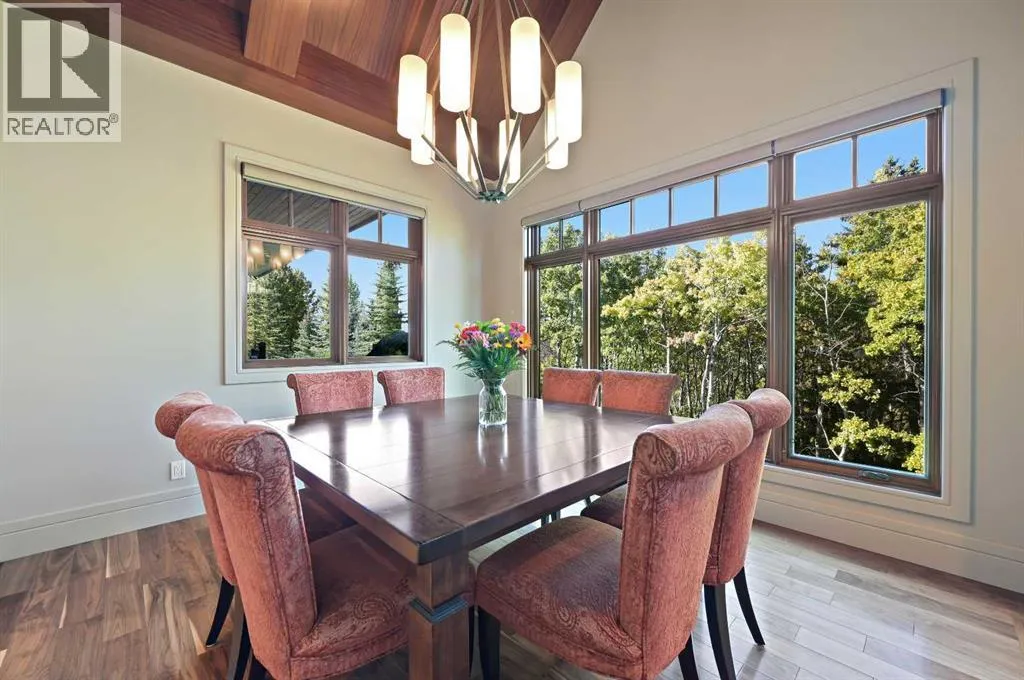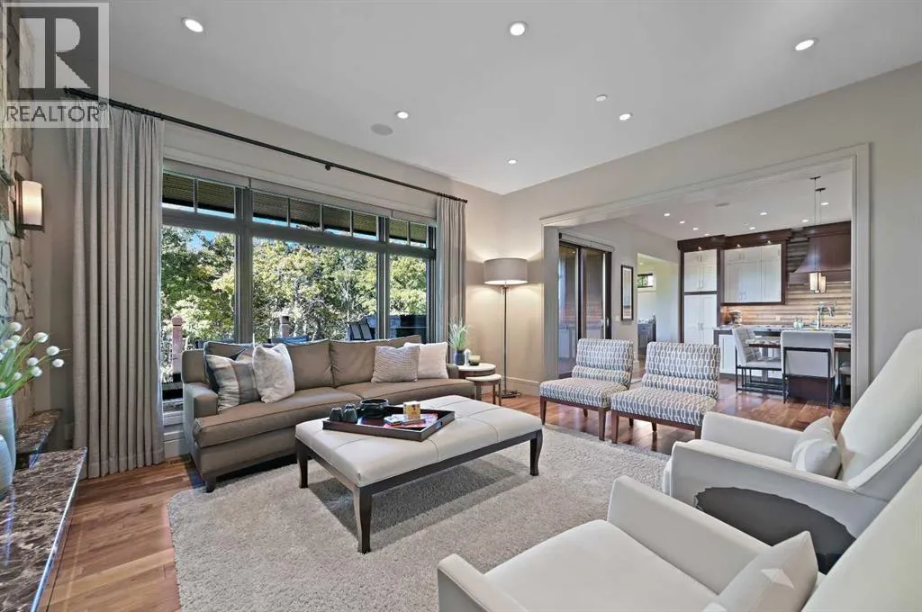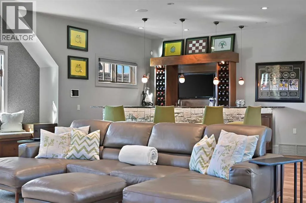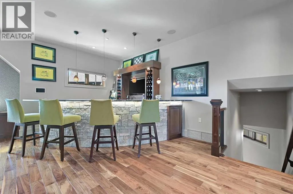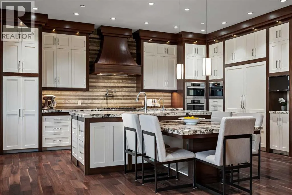 Nestled within the prestigious enclave of Springbank Valley Heights, this exceptional custom-built estate embodies understated luxury and timeless sophistication.Spanning over 7,500 square feet of exquisitely designed living space on a 12,604 sq. ft. lot, every detail of this residence reflects a deep commitment to craftsmanship and elegance.The stately stone exterior and charming front veranda create a distinguished first impression, while the grand foyerâwith its sweeping curved staircase and polished hardwood floorsâsets the stage for the refined interiors beyond. Designed for both culinary excellence and intimate entertaining, the gourmet kitchen features professional grade Viking and Miele appliances, including a gas range, an additional speed oven that doubles as a microwave, espresso machine, triple dishwashers, and a large double Sub-Zero fridge that complements the kitchenâs exceptional functionality.Granite countertops and custom cabinetry elevate the space, while the great room exudes warmth and sophistication, showcasing a custom granite stone fireplace that creates a âChic Chaletâ ambiance reminiscent of an upscale mountain retreatâperfect for gathering and relaxation. This space flows into the adjacent dining room, distinguished by its vaulted ceiling with custom wood inlay and uninterrupted ravine viewsâan inspiring setting for hosting or intimate evenings, framed by expansive windows that open to a serene west-facing backyard. Outside, an inviting new tile patio with a built-in BBQ and wood-burning fireplace creates a seamless extension of the homeâideal for alfresco dining and evening conversation as the sun sets over the ravine. A private home office with custom millwork provides a peaceful retreat for productivity, while the heated triple-car garage with its own furnace offers direct access to a spacious media lounge complete with wet bar, two-piece bath, and home theatre setup. Upstairs, the primary suite is a sanctuary of calm with a spa-inspire d 6-piece ensuite featuring a steam shower, dual vanities, and a meticulously designed walk-in closet.Two additional bedrooms, each with private ensuites, are complemented by a full upper-level laundry room for convenience. A second laundry area on the main level adds thoughtful functionality.The walkout lower level caters to wellness and leisure, showcasing a training pool enclosed in glass-a space that feels like a private spa, complete with bar fridge and freezer drawers, alongside a fully equipped fitness room and two additional bedrooms, each with a full bath.Thoughtfully appointed with in-floor heating, triple furnace systems, and a comprehensive fire suppression system, this residence offers a rare combination of advanced safety, comfort, and timeless style.Privately positioned against the ravine and just minutes from Aspen Landing and Stoney Trail, this is more than a homeâit is a statement of enduring quality, designed for those who appreciate refinement, privacy, and elegance in every detail. (id:27476)