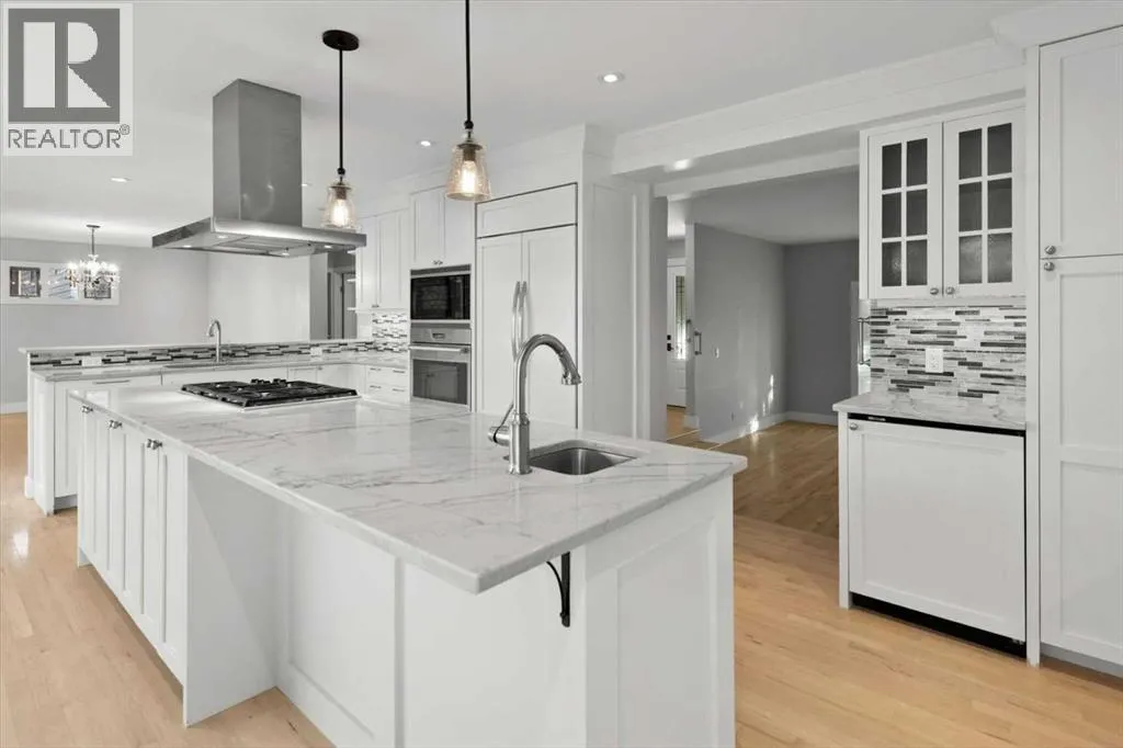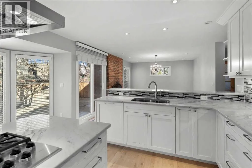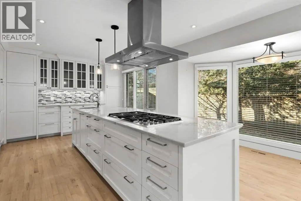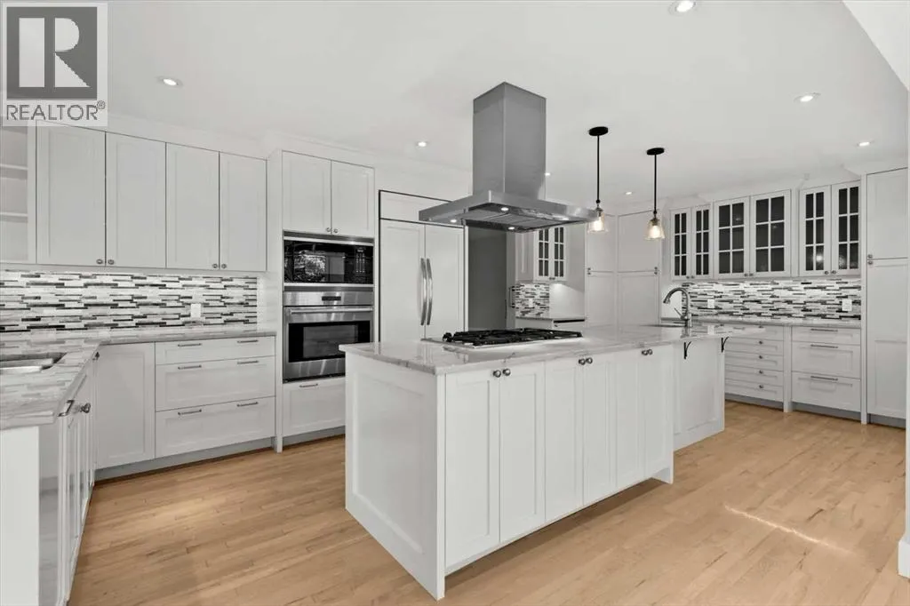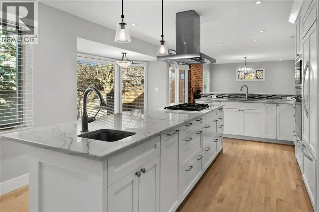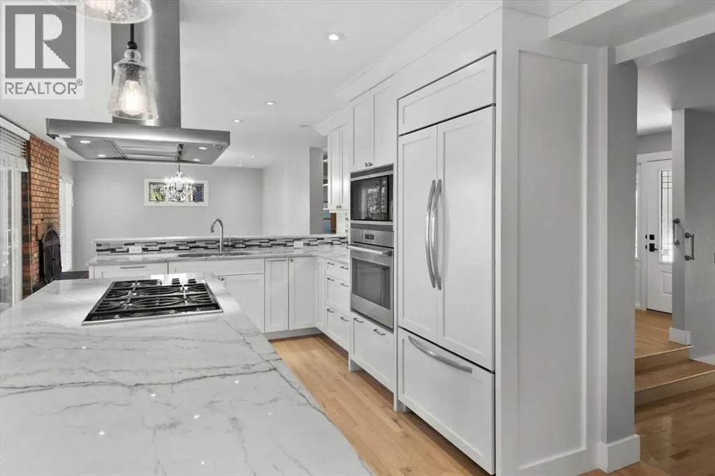 Beautiful 2 storey family home with triple car garage in the sought after community of Oakridge, just steps to South Glenmore Park and the Glenmore Reservoir. A spacious foyer welcomes you into a bright main level with gleaming hardwood floors and a generous living room.The luxurious renovated kitchen (2015) features a large island with quartz countertops, breakfast bar, and exceptional storage including soft-close drawers (approx. 20), corner organizer, and pullout pantry. Stainless steel appliances (2015) include an integrated-front refrigerator, dishwasher, and bar fridge, plus a gas cooktop with chimney-style hood fan, built-in wall oven and microwave. The kitchen overlooks the warm family room with a brick-faced wood-burning fireplace and views of the fully fenced backyard.The main floor also offers a convenient 2 pce. powder room and a functional mudroom with main-floor laundry.Upstairs youâll find 4 spacious bedrooms and a renovated 4 pce. bath. The primary retreat includes a sitting area and 5 pce ensuite.The lower level includes a large workshop with storage shelves, a 5th bedroom/office and family room area. Updates include - Kitchen renovation ($100,000) cabinetry/island, quartz counters, soft-close drawers & pullouts, stainless appliances (2015), 2 sink areas, Upper level 4 pce bath renovated (2015), hardwood flooring throughout main (excluding back entrance & 2 pce. bath), hardwood up stairs continuing down the hall, primary bedroom and sitting area (2015) most windows replaced (2015âpresent), front door (2015), two upper level solar skylights (2015), primary balcony reconstructed (2020), cedar shake roof inspected (2024), furnace (2023), Furnace serviced (2025), Hot water tank replaced (Jan 2026), fence replaced. A wonderful family home with access to Stoney Trail SW and allows easy access to travel in all directions beyond the city limits. (id:27476)