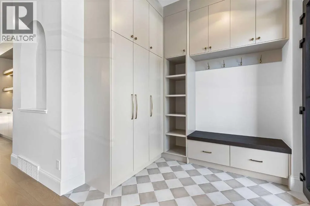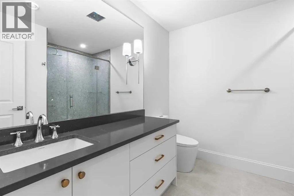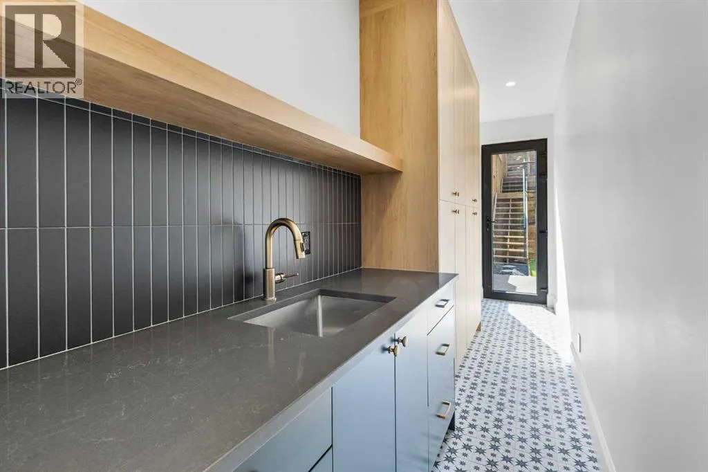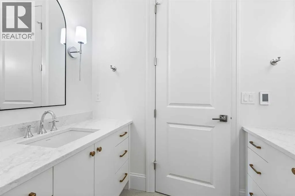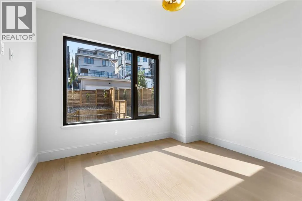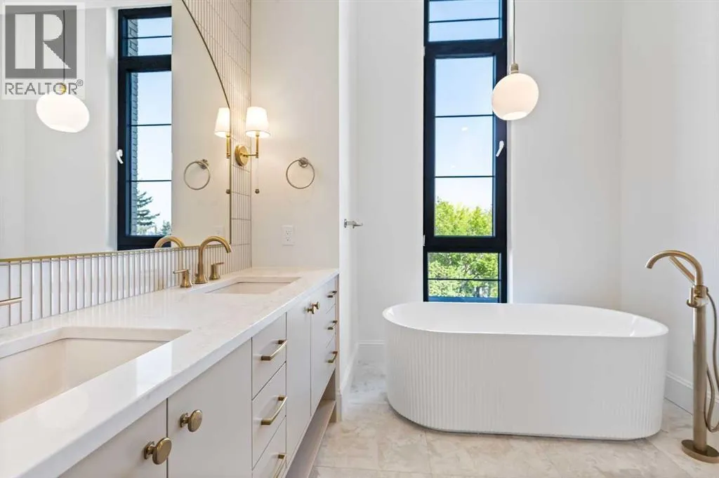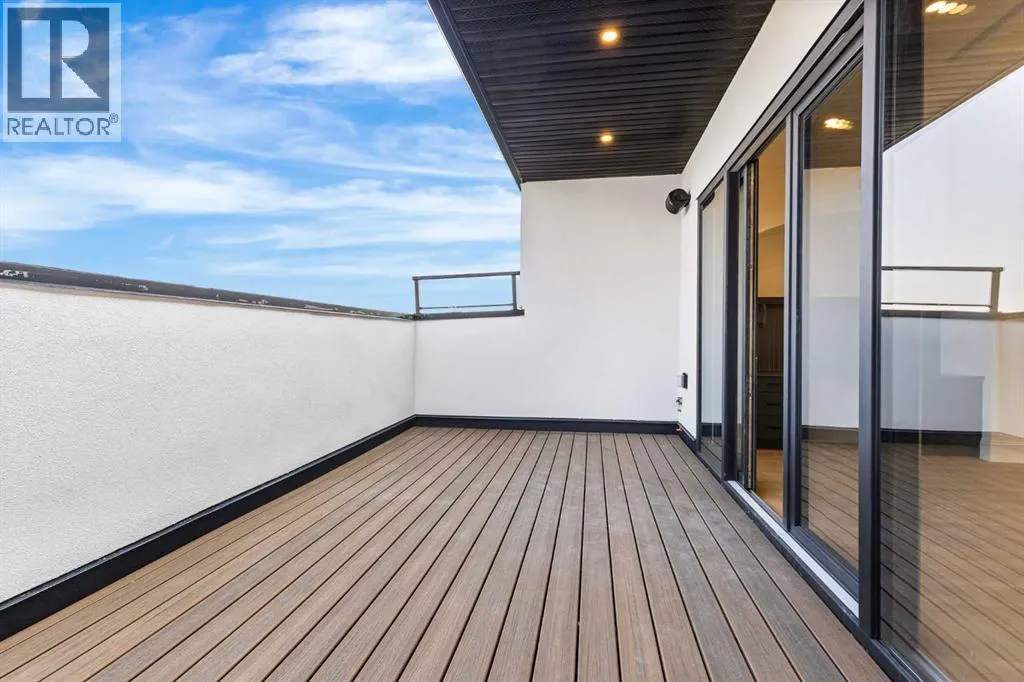 Experience quiet luxury at its finest in this stunning three-storey home, set on one of the highest points in Calgary with uninterrupted skyline views from all levels, and steps from Marda Loop. The exterior makes a striking first impression with its blend of classic white brick detailing, black accents, and timeless stucco. The curb appeal is enhanced by clean glass railings, low-maintenance landscaping, and a welcoming front balcony with a fireplace. Step into a beautiful and functional foyer, complete with custom built-in millwork, a bench, and smart storage including hanging compartments, open shelving, and pull-out drawers. The open-concept design includes a dedicated dining area surrounded by massive sliding doors that lead to the balcony. This is styled for intimate dinners, elevated entertaining, or just enjoying a coffee with stunning skyline views.At the heart of the home, the chefâs kitchen is a true masterpiece. It features a 14-foot island with quartz, a quartz backsplash, plaster textured hood fan, pot filler, and oversized premium appliances including a 48â dual oven gas range and a 66â built-in fridge/freezer. There is a butlerâs pantry with sink and cabinetry, mud room, coffee bar, and tons of storage including under the island. The kitchen is set up to be not only beautiful but also functional and includes a garbage drawer, bar cooler, and spice racks/cabinetry. Across from it, the living room centers around a beautiful fireplace and custom built-ins which make it cozy, refined, and made for real living. Large doors lead to the deck and the sunny south facing backyard, that is tiered, turfed and truly low maintenance. Throughout the home, youâll enjoy tons of natural sunlight from the large windows, 10-foot high ceilings, arched transitions, and wide-plank engineered hardwood create a warm and elevated flow.Upstairs, the primary suite is a serene retreat with a spa-like ensuite featuring a steam shower, dual vanity, custom tilework, and skyli ne views. Secondary bedrooms are generously sized, each with walk-in closets, and connected by a stylish bathroom ideal for kids or guests.The third level includes a beautiful rooftop patio where you can soak in the skyline views, a stylish bathroom with nice finishes, a rec/living area with built-in storage, a built-in desk, and a gas fireplace. There is a wet bar, bar fridge, and entertainment in the center. This is the ultimate entertaining area to host friends and family.The fully finished basement extends the living space with heated floors roughed-in, a large flex room or guest suite, and full bathroom. Additional features include a heated double attached garage with epoxy flooring, integrated speakers and security system, roughed-in central A/C and roughed-in heated driveway.Whether you're enjoying a quiet morning in the sun, hosting friends on the rooftop, or watching the city light up at night, this home was built for a lifestyle thatâs elevated and timeless. (id:27476)