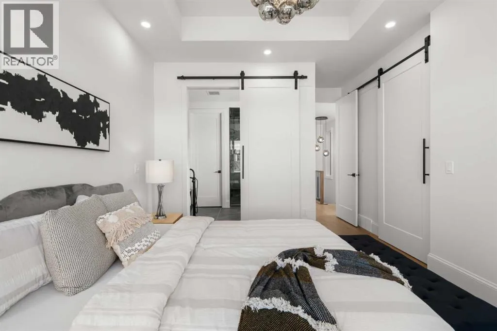 Located in the heart of sought-after South Calgary, 1519 32 Ave SW showcases refined design, elevated finishes, and a thoughtfully curated layout across every level. This stunning home features a main floor that welcomes you with an elegant foyer, a spacious dining area, and a chef-inspired kitchen complete with a large quartz island and a full JennAir appliance package. The living room is anchored by a sleek fireplace, while double patio doors flood the space with natural light and create seamless indoor-outdoor flow. A functional mudroom and carefully selected luxury finishes complete this exceptional main level.The second floor offers two generously sized bedrooms, including one with a walk-in closet and a beautifully appointed four-piece ensuite featuring dual vanities and a soaker tub. A third room on this level provides flexibility for a home office, craft room, or additional flex space. A stylish common three-piece bath, upper floor laundry, and a convenient linen closet add to the homeâs practicality.The entire top floor is dedicated to a private primary retreat. Enjoy an expansive bedroom complete with its own fireplace, creating a warm and sophisticated ambiance. The luxurious four-piece ensuite features double vanities and a soaker tub, complemented by a large walk-in closet and a private balcony. With no neighbours directly in front, youâll appreciate both privacy and unobstructed views.The fully developed basement extends the living space with an additional bedroom, a three-piece bath, a spacious recreation or fitness area, and a wet bar perfect for entertaining. A double detached garage completes this exceptional inner-city offering.Please note: Photos reflect a previous home built by the same builder with a similar palette and level of finishes. This home is currently under construction and final finishes may vary.A sophisticated residence that perfectly balances luxury, comfort, and functionality in one of Calgaryâs most desirable communiti es. (id:27476)