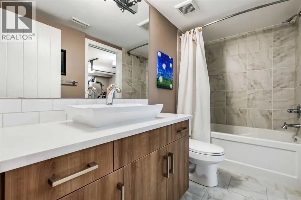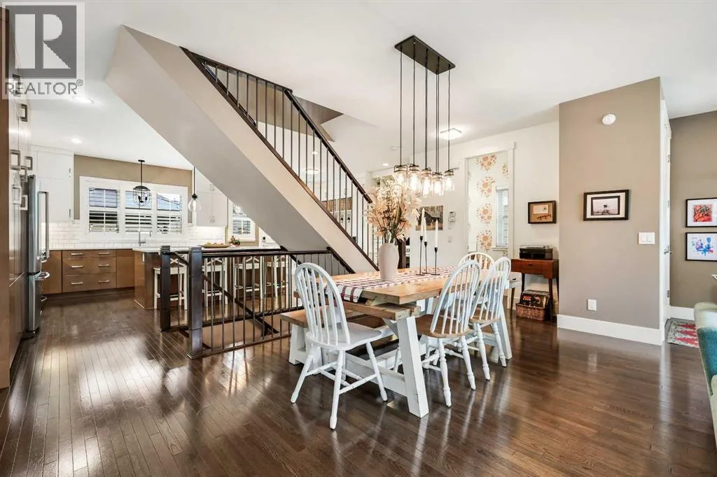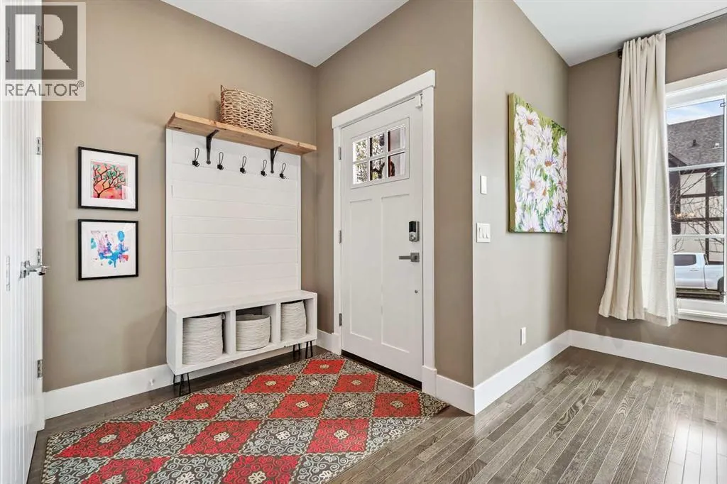 Welcome to this exceptional Custom-Built home, perfectly situated in one of Calgaryâs most sought-after inner-city communities. Boasting over 2,600 sq. ft. of meticulously designed living space, this home blends refined craftsmanship with modern elegance â all just minutes from downtown. Step through the welcoming front entrance into an open-concept main level featuring 9-ft ceilings, rich hardwood floors throughout, and a designer staircase that seamlessly connects the homeâs beautiful living spaces. The living room exudes warmth and style, anchored by a floor-to-ceiling tiled gas fireplace â a perfect focal point for cozy evenings. Custom built-in cabinetry adds both charm and functionality, creating a space designed for comfort and connection. The dining area offers an elegant setting for gatherings, while the chef-inspired kitchen is truly a showpiece -complete with a massive quartz island, premium stainless steel appliances, extended cabinetry, and abundant storage. Whether you love to entertain or cook with family, this kitchen delivers both form and function. From the kitchen, step outside to your professionally landscaped, low-maintenance backyard â fully fenced, south-facing, and exceptionally private. The extended patio creates the perfect space for outdoor dining and relaxation in the sun. Upstairs, discover three spacious bedrooms, each designed for rest and relaxation. The primary suite is a private retreat, featuring a spa-inspired ensuite with a dual vanity, soaker tub, tiled glass shower, and a generous walk-in closet. Large windows and custom window coverings complement the 9-ft ceilings, bathing each room in natural light. The upper-level laundry adds additional convenience. Downstairs enjoy the fully developed basement extending the homeâs versatility â rec room with built-in surround sound, fourth bedroom and/or home gym, and a stylish four-piece bathroom completes this space. Additional luxury upgrades include Air Conditioning, GEM Stone exteri or lighting (never hangChristmas lights again), central vacuum system, and more. Located in vibrant Currie Barracks, youâre surrounded by parks including outdoor rink, splash pad, playgrounds, walking paths, schools, and local amenities â plus easy access to the downtown core in under 10 minutes. Bonus **Approved City Development Permit for a future Carriage Home â an incredible opportunity for added value or income potential. Call today to book your Showing! (id:27476)