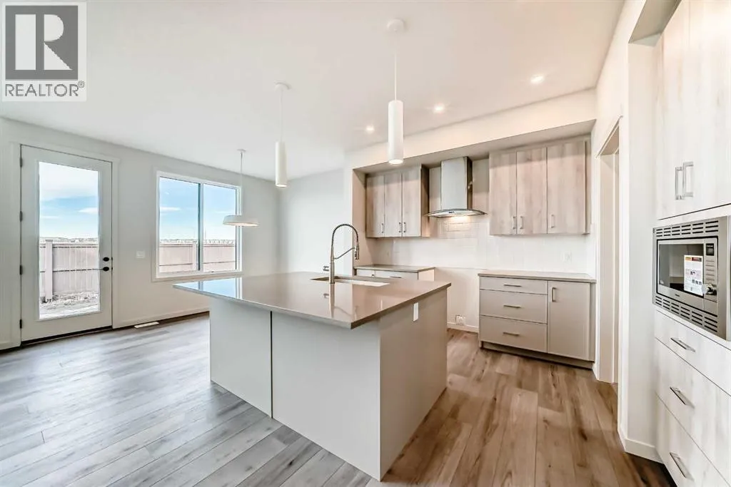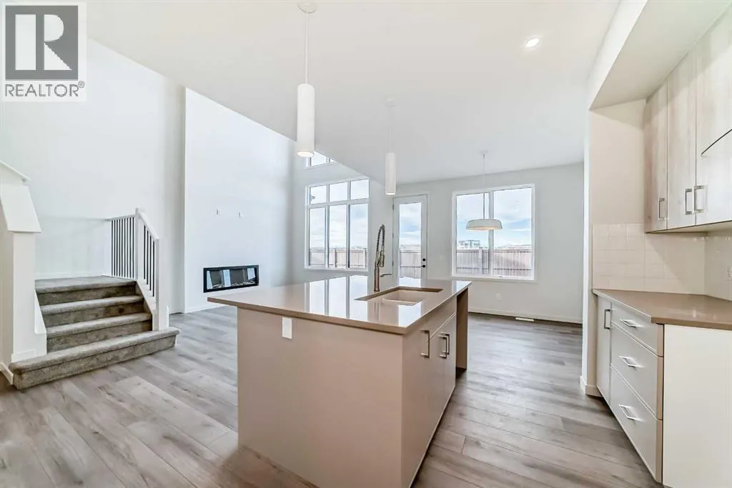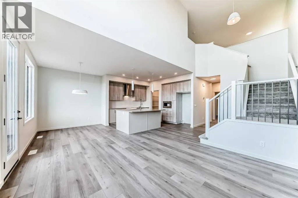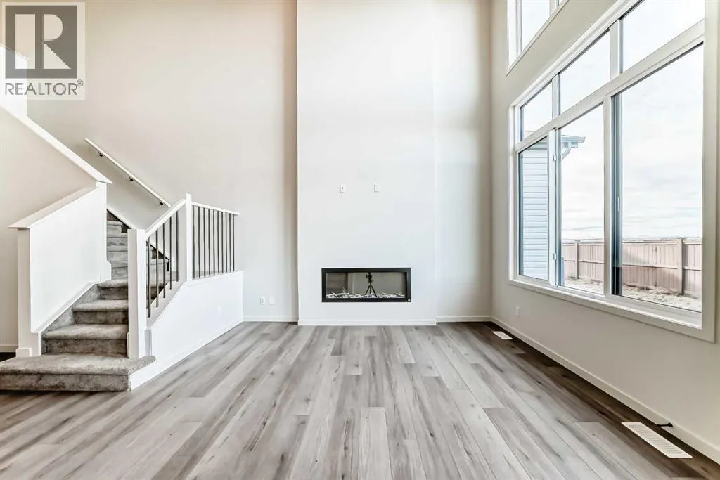 Welcome to the âGradaâ by Hopewell Residential, where contemporary design meets family-friendly functionality in the vibrant community of Rangeview. Offering 2,112 sq. ft. of thoughtfully planned living space, this home features 3 spacious bedrooms and a bright, connected layout designed to make everyday life feel easier and more enjoyable. Step inside and youâll immediately appreciate how the main floor is built for real life. Just off the entry, a versatile flex space with a glass insert door is ideal for a home office, playroom, homework zone, or quiet retreat. From there, the home opens into an inviting dining area and lifestyle room that flow effortlessly for both daily routines and entertaining. The soaring open-to-above living room adds a true wow factor, flooded with natural light and framed by large windows. An electric fireplace anchors the space, bringing a cozy focal point that makes it feel just as inviting on quiet evenings as it does when youâre hosting. At the centre of it all, the kitchen is designed to impress and perform. Youâll love the upgraded layout with a stylish chimney-style hood fan, built-in microwave, extra storage drawers, elegant quartz countertops, and a large island that anchors the space for casual meals, coffee catch-ups, and gathering with friends. The cabinetry is a standout with rich wood grain cabinets throughout, complemented by a stacked square modern backsplash for a crisp, contemporary finish. Thoughtful upgrades continue with spindle railing and knockdown ceiling textures, adding a modern edge across the home. Outside, this home offers something just as valuable: a large west-facing lot thatâs made for sunshine and lifestyle. Whether itâs afternoon light pouring into the backyard, room for kids to play, or space to create the outdoor setup youâve been dreaming of, this is the kind of lot that makes everyday living feel bigger, especially during Calgaryâs long summer evenings. Upstairs, youâll find three good-sized bedrooms , including a luxurious primary suite featuring a step-in shower, your own private retreat. The additional bedrooms are perfect for a growing family, served by a beautiful full bathroom, while the upper floor laundry room is perfectly placed to keep day-to-day life running smoothly. Downstairs, the basement is ready for your future plans with a 9-foot foundation, and the separate side entrance adds valuable flexibility, ideal for a future development or the potential of a mortgage-helper suite (a secondary suite would be subject to approval and permitting by the city/municipality). Set in southeast Calgary, Rangeview is designed around connection, pathways, parks, and a community feel that encourages getting outside, meeting neighbours, and enjoying a more lifestyle-forward neighbourhood. Discover your next chapter with The Grada. (id:27476)