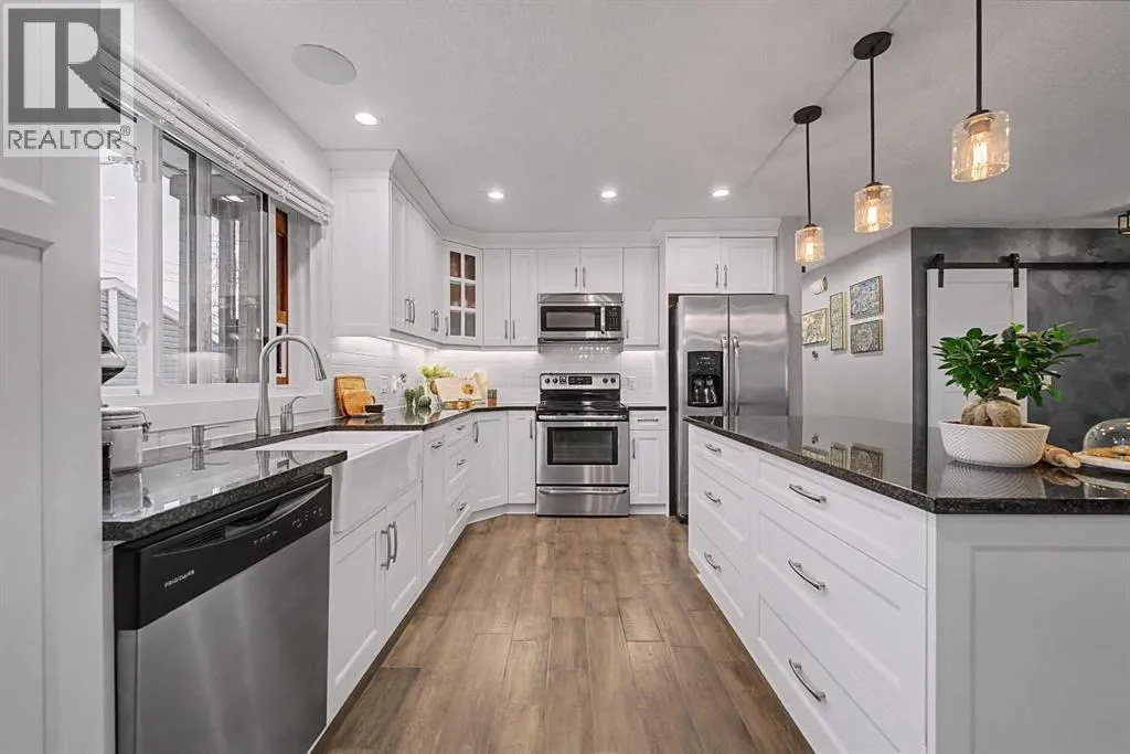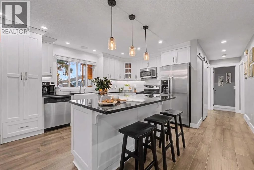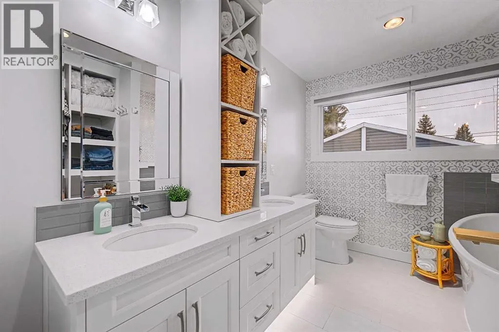 Welcome to this beautifully updated bungalow in the desirable community of Southwood. The bright and open main level features a spacious kitchen, dining, and living area with modern finishes throughout, creating an ideal space for everyday living and entertaining. Built in Sonos Speakers throughout the main floor to add that extra touch when you host or to have your own morning jam session! Two generous bedrooms and two full bathrooms complete the main floor, offering a thoughtful layout with ample storage.Both upstairs bathrooms are enhanced with heated floors and heat lamps, adding a touch of everyday luxury and comfort.The fully finished basement offers a separate illegal suite with private entrance, open-concept living area, full kitchen, bedroom, bathroom, and its own laundry, providing excellent flexibility for extended family or rental income potential.Outside, enjoy a large fully fenced and private yard with a raised deck featuring a built-in BBQ, a lower deck, and a cozy fire pit area â perfect for summer gatherings. Additional highlights include front driveway parking with space for multiple vehicles or an RV, plus a double detached garage.Located close to schools, parks, shopping, and transit, this home offers comfort, functionality, and outstanding value in a mature neighbourhood. (id:27476)
