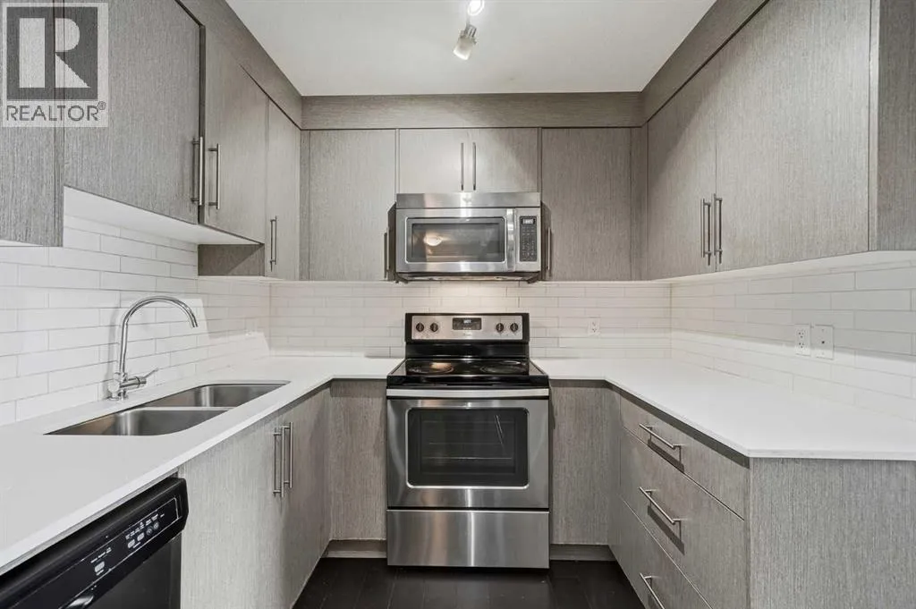 Move-in ready third-floor condominium with heated underground titled parking and additional storage, located in a well-maintained four-storey building. This 2-bedroom, 2-bathroom home offers 809 square feet of functional living space with a bright open-concept layout connecting the kitchen, dining, and living areas.The kitchen features stone countertops, stainless steel appliances, ample cabinetry, and a built-in workstation. Large windows provide natural light throughout, while the living area offers access to a private balcony.The primary bedroom includes a walk-through closet and private ensuite. The second bedroom provides flexibility for guests, a home office, or shared living. Heated underground titled parking and additional storage add everyday convenience.Located in Skyview Ranch with convenient access to Deerfoot Trail, Stoney Trail, Metis Trail, public transit, and nearby amenities. (id:27476)