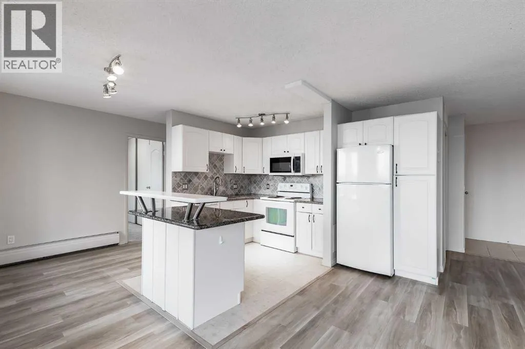 Welcome to elevated living in the heart of Eau Claire. This bright and beautifully maintained CORNER UNIT offers exceptional space, functionality, and modern comfort in one of Calgaryâs most desirable downtown communities.Featuring 2 bedrooms and 1 bathroom, this thoughtfully designed home showcases an open-concept layout filled with natural light thanks to its corner positioning and expansive windows. Recent updates include vinyl flooring, fresh paint throughout, and a brand-new dishwasher and mounted microwave, creating a fresh, move-in-ready feel.The modern kitchen is both stylish and practical, complete with granite countertops, an eat-up bar, and ample cabinetry - perfect for everyday living or entertaining. A true standout feature is the oversized walk-in pantry, offering storage space rarely found even in most detached homes.Enjoy the convenience of in-suite laundry and the comfort of heated underground parking, ideally located close to the parkade entrance and elevator for effortless daily access. Even better, all utilities are included in the condo fee, allowing for simplified monthly budgeting and exceptional overall value.Princeâs Crossing is a well-managed concrete high-rise offering an impressive range of amenities, including a fully equipped fitness centre complete with steam room, lockers, showers, concierge service, 24-hour security, daycare located within the building, and an on-site convenience store .Located just steps from the Bow River pathways, parks, restaurants, and everything downtown Calgary has to offer, this home offers the perfect blend of urban vibrancy and natural beauty.Spacious, updated, and exceptionally well located - this one truly checks all the boxes. Book your private showing today. (id:27476)