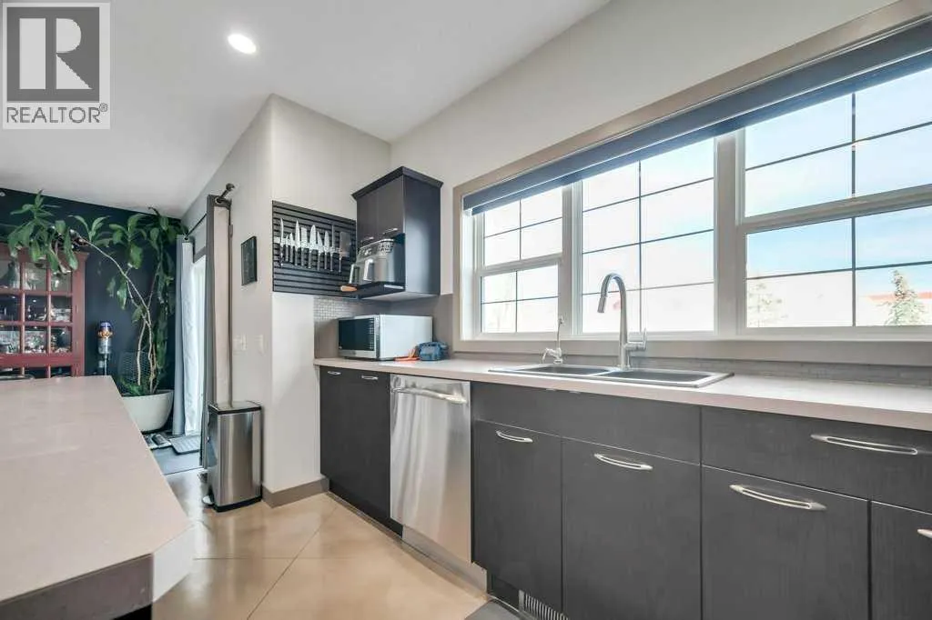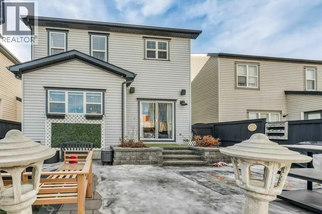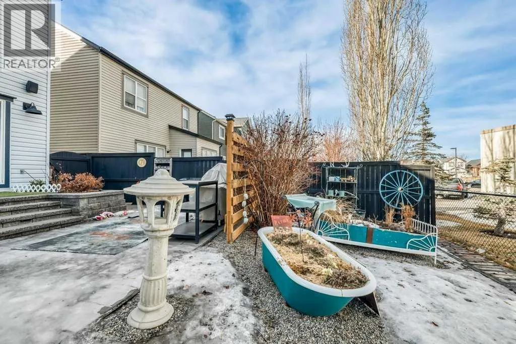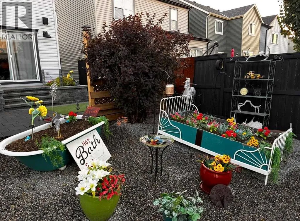 Imagine school mornings without ever starting the car. Backing directly onto the Kâ9 school in Copperfield, this thoughtfully designed 2000+ sq ft. family home offers a lifestyle thatâs hard to beat for growing families.Sophisticated and edgy in its design, this home stands out with dramatic paint tones and large polished concrete tiles that deliver durability, functionality, and undeniable character. The open-concept main floor is designed for real family living, creating an inviting space to gather, connect, and unwind.At the heart of the home, the modern kitchen features upgraded stainless steel appliances, a large centre island with eating ledgeâperfect for quick breakfasts before schoolâand a customized walk-in corner pantry. Overlooking the dining area and private, low-maintenance backyard, large glass sliding doors bring the outdoors in. From the kitchen window, enjoy views of the schoolyardâfeeling like a natural extension of your own backyard and offering peace of mind during playtime.The living room invites comfort year-round, whether youâre cozying up in front of the gas fireplace on winter evenings or enjoying the relief of air conditioning during warm summer nights. The built in speaker system runs throughout the home, adding to the ambiance. A combined laundry and mudroom located just off the garage adds everyday convenience, offering the storage and organization every busy household needs. The garage itself is already primed for your future man cave, complete with stylish décor, functional wall and ceiling storage, and a fridge for easy access to cold ones. Upstairs, an extra-wide staircase leads past a stunning wall of windows into a bright bonus room with vaulted ceilings and on-trend lightingâan ideal space for family movie nights or a kidsâ retreat. The spacious primary bedroom easily accommodates a ki ng-size bed and is filled with natural light from dual windows. The ensuite offers a spa-like escape with dual sinks, a standup shower, a soaker tub, and a walk-in closet. Two additional bedrooms are thoughtfully positioned across the bonus room, just steps from the full main bath.The undeveloped basement provides excellent future potential for customization and is currently enjoyed as additional recreation space and efficient storage.Lovingly maintained with attention to every detail, this move-in-ready home is fully equipped for comfort, functionality, and peace of mind for years to come. (id:27476)