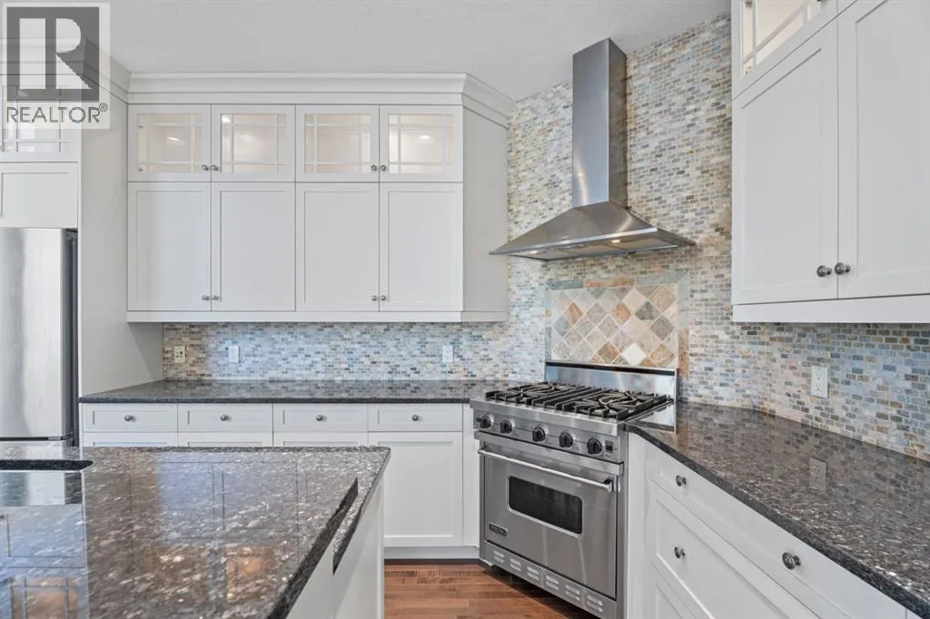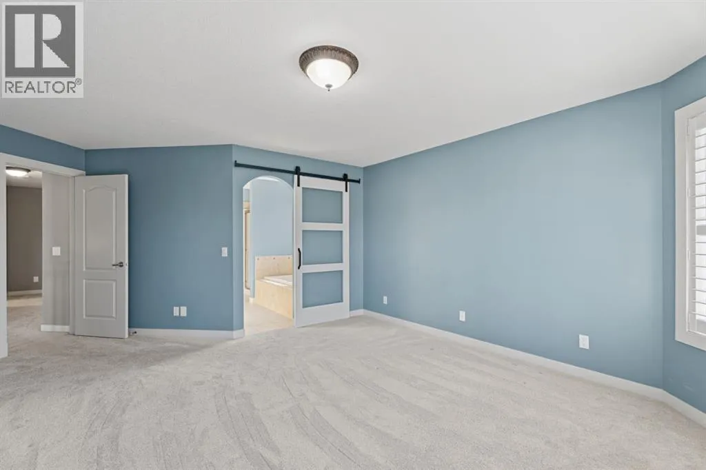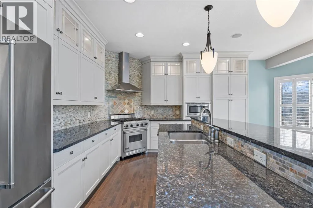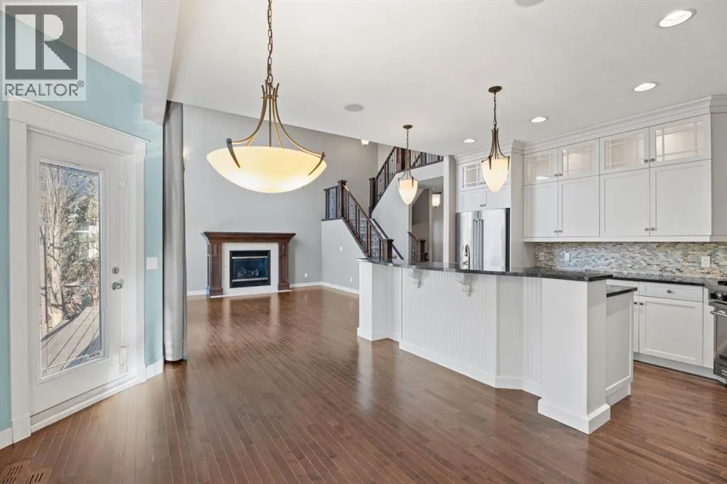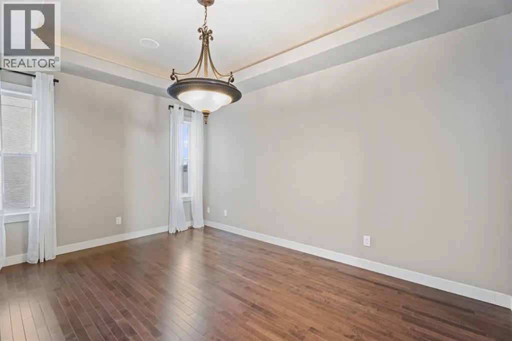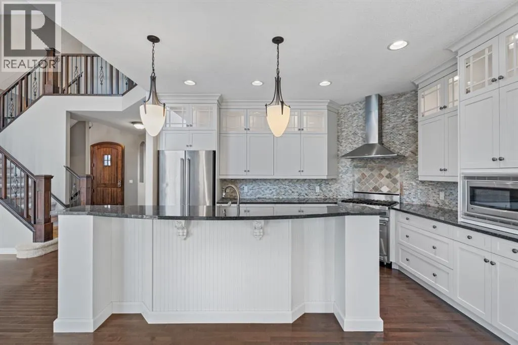 Cancelled Open House Sunday. Welcome to 15 Cranleigh Way SE - Premier Cranston Ridge Living - Original owners, first time on market. This meticulously maintained estate captures everything that makes Cranston one of Calgary's most desirable communities. From arrival, curb appeal commands attention with its distinctive stone archway entrance, substantial pillars, and grand custom wooden front door handcrafted for this home. Mature evergreens and ornamental trees anchor the landscaping, while aggregate stone driveway and walkway lead to this elegant entrance. Step inside to a breathtaking vaulted foyer where soaring ceilings and rich hardwood flowing throughout the main level create impressive welcome. Continue into the formal dining room showcasing elegant coffered ceiling insets and custom statement chandelier. Upgraded lighting fixtures in most rooms, plantation shutters on most windows, and custom millwork elevate this home beyond standard builds, adding character throughout. The living room opens with stunning 18-foot ceilings and open to below design with elegant wrought iron railings. The floor-to-ceiling feature wall commands attention, anchored by gas fireplace. Oversized picturesque windows frame incredible greenspace views while flooding the space with natural light. The chef's kitchen flows seamlessly, featuring expansive granite countertops, substantial center island seating four, gas stove, premium stainless appliances, floor-to-ceiling cabinetry, and pantry with custom drawers. Custom pendant lighting highlights the island. Kitchen opens to eating area with west-facing windows overlooking the private backyard. Main floor offers laundry room and two-piece bathroom. Step outside to your west-facing private backyard with mature trees and foliage, perfect for entertaining. Composite deck features pergola, while mature landscaping balances beauty and low maintenance. Backing onto greenspace and pathway system - steps down the path to elevated positioning wit h unobstructed views of the ridge and valley that make this Cranston Ridge location desirable. Bow River paths and Fish Creek Park access moments away. Upstairs with open to above views of foyer and living room, the master suite offers true retreat. Luxurious five-piece ensuite features soaker tub, separate shower with glass enclosure, granite vanity, and walk-in closet with shelving. Two additional bedrooms share four-piece bathroom. Fully finished basement extends living space with fourth bedroom, full bathroom, and recreation room perfect for media, gym, or entertaining. Premium features include central air, on-demand hot water (2021), wired for sound with speakers, roughed in 240V for hot tub, drywalled insulated garage with gas heater and attic storage. New shingles (2022) and carpet (2021). Minutes to schools, shopping, highway access. Virtual tour in the links, book your exclusive showing today! (id:27476)