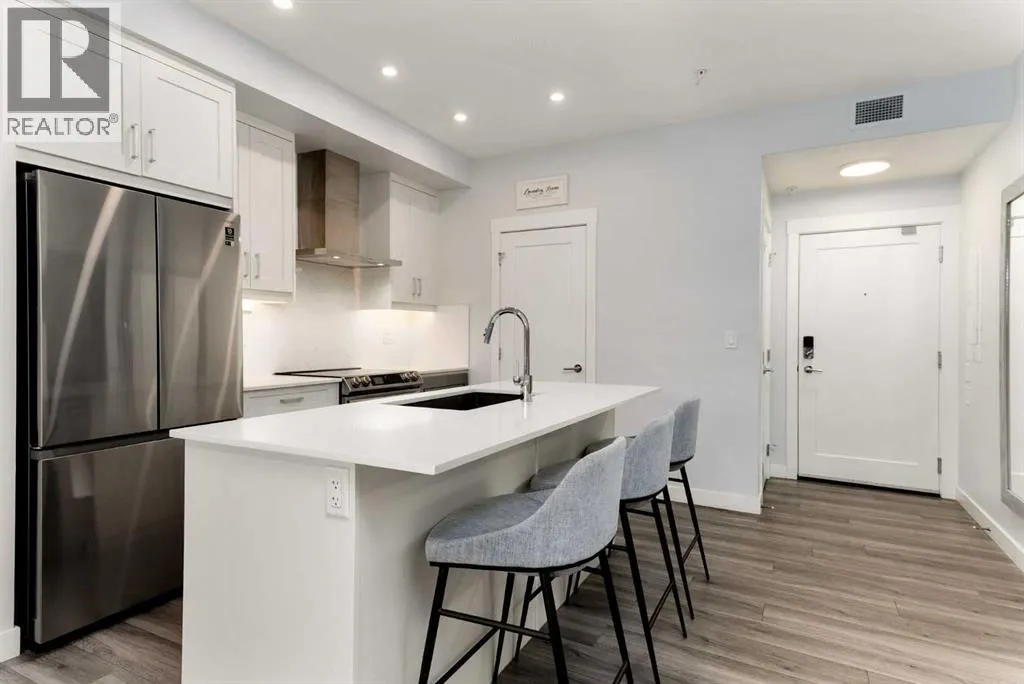 Welcome to this beautifully maintained 2-bedroom, 2-bath condo in the heart of Auburn Bayâa home that truly shows like new. Built in 2021, the original owner invested in thoughtful upgrades throughout, and it has been meticulously cared for from day one. Step inside to an inviting open-concept floor plan that feels bright, airy, and effortlessly functional. The timeless white kitchen is a standout, featuring stainless steel appliances, under-cabinet lighting, stunning herringbone tile detail, and a generous island with a huge undermounted sink and convenient pull-out shelving for optimal storage. Just off the kitchen, the spacious laundry room offers built-in cabinetryâperfect for a coffee bar, extra pantry storage, or everyday organization. The living room features a beautiful custom accent wall and is filled with warmth and natural light thanks to the massive west-facing patio doors that open onto your own ground-level balconyâideal for enjoying Calgaryâs sunny afternoons. The primary bedroom comfortably fits a king-size bed and includes two upgraded closets with extra built-in shelving for optimized storage, along with its own private 3-piece ensuite. The second bedroom is perfect as a home office, guest room, gym, or flexible space to suit your lifestyle, and it conveniently connects to both the main living area and the second 4-piece bathroom. The entire unit has been freshly painted and features central air conditioning, ensuring comfort year-round. The location within the building is unbeatableâjust steps from the stairwell leading directly to the heated underground parkade, where your titled parking stall awaits. And of course, living in Auburn Bay means enjoying one of Calgaryâs most desirable lake communities. Residents have exclusive access to Auburn Bay Lake, offering year-round recreation such as swimming, paddleboarding, skating, fishing, and vibrant community events. The neighborhood is also home to scenic walking paths, parks, playgrounds, and quick access to shopping, dining, the South Health Campus, and major roadways. Whether you love the outdoors, convenience, or a strong community vibe, Auburn Bay delivers it all. This is the perfect blend of comfort, style, and locationâtruly a condo you wonât want to miss. (id:27476)