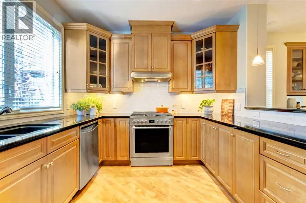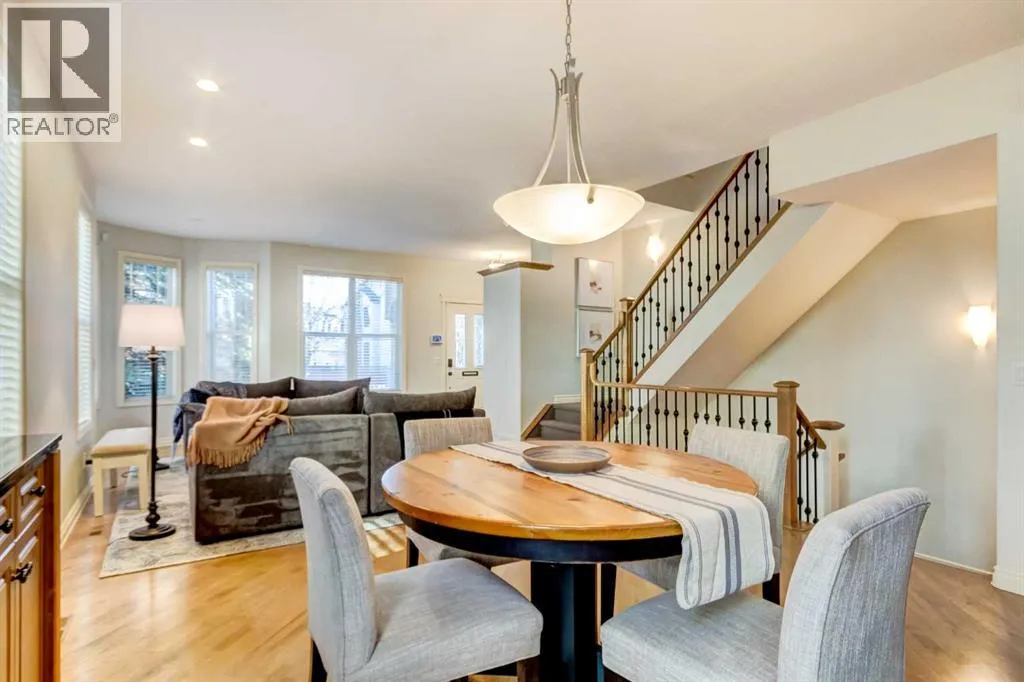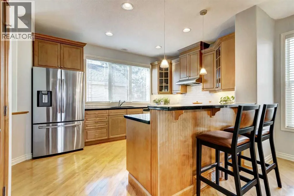 Rare find in arguably the best location, in one of the premier condominium communities in Calgary. This end-unit, on a green belt, sits on the east side of the spectacular Garrison Woods' townhome community of Versailles. This quiet and relaxed setting offers a terrific contrast to the energy and convenience that only Marda Loop can offer; a short walk to shopping, restaurants and other conveniences. This meticulously cared for home features over 2500sf of livable space with numerous recent, professional upgrades, including new custom interior paint and new high-end carpet/underlay. Additionally, the kitchen has been updated with a new gas range, new hood fan and new tile backsplash. Other notable additions include, new hot water tanks (2), new soft water system, new toilets (3), new professional landscaping and new garage door. The home's layout is ideal with living areas on all four levels. The 2nd and 3rd floor each host a bedroom with ensuite. The 2nd floor also has laundry and a well appointed family room while the 3rd floor is a generously sized primary suite with a screened-in balcony; an excellent space for any number of uses...bedroom, office, guest suite to suggest a few. The basement has a second family room, convenient bathroom and a utility space, ideal for a workshop or extra storage. The low maintenance, professionally landscaped backyard boasts a gorgeous stone patio with numerous trees and shrubs, connected to a double detached garage that opens onto a paved alley. Pride of ownership is rarely seen at this level, don't miss your chance to view this special property. (id:27476)