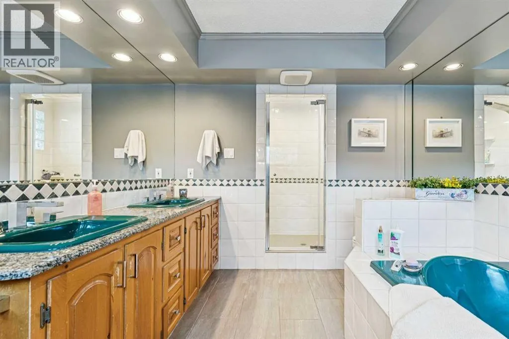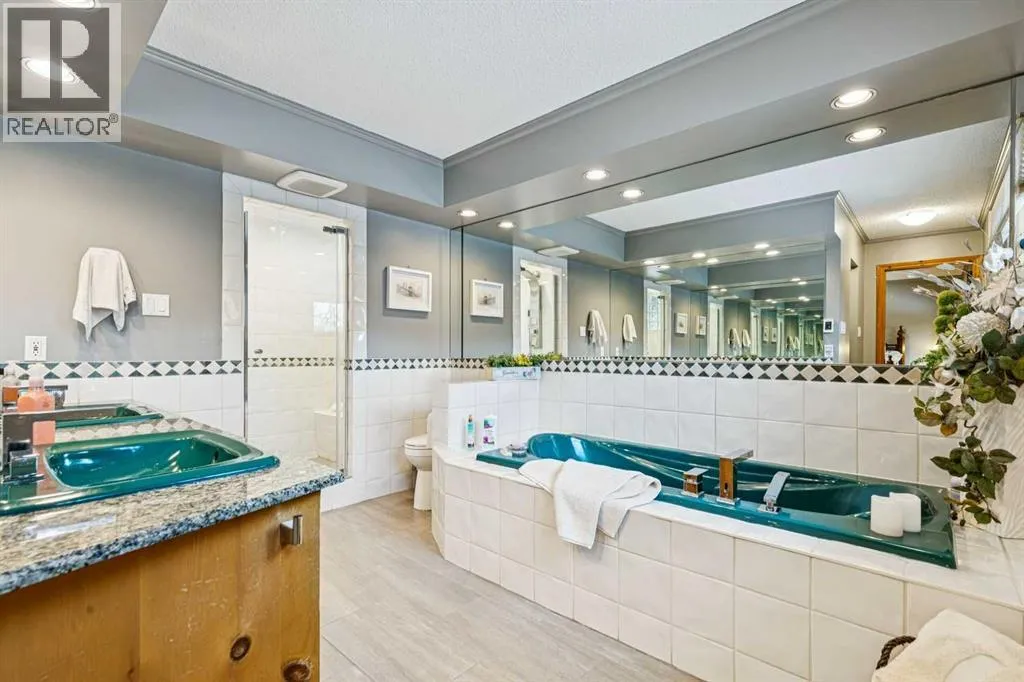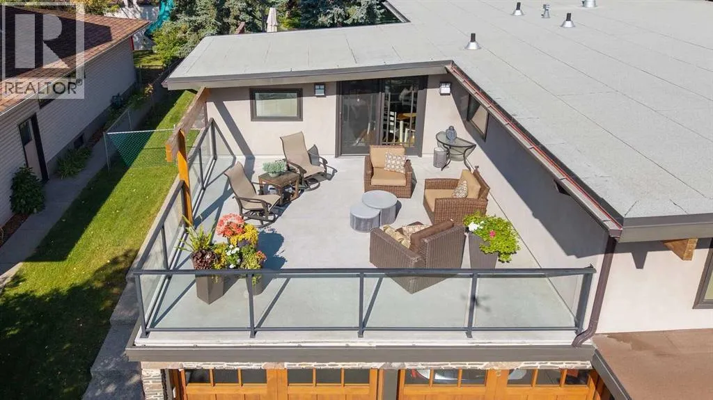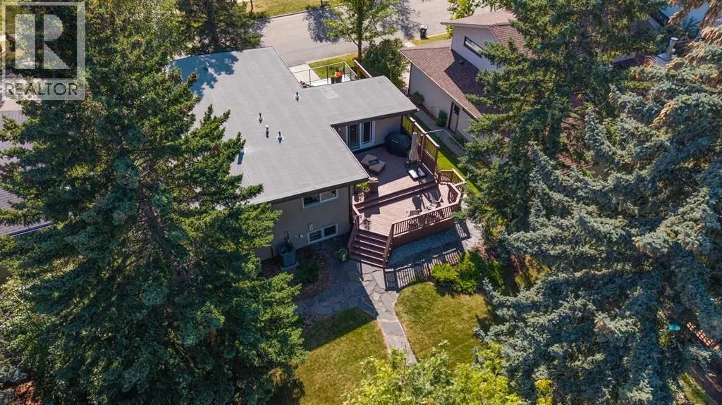 OPEN HOUSE SATURDAY FEBRUARY 14TH - 1PM TO 4PM. Perfectly positioned on a quiet cul-de-sac in Varsity Village, this exceptional raised bungalow offers a rare blend of privacy, openness, and connectivity. The home faces a large open green space and soccer fields adjacent to Ãcole Terre des Jeunes, creating an expansive and unobstructed outlook, while the school grounds begin several yards to the west. The rear of the property backs onto the neighbourhood pathway systemâideal for walking, cycling, and easy access to surrounding green spaces.Extensively renovated, the home features a stunning custom kitchen designed for both daily living and entertaining. Solid wood cabinetry, granite countertops, and premium appliances include a Fisher & Paykel gas cooktop, Bosch double ovens, Miele dishwasher, oversized KitchenAid refrigerator, and a full-size bar fridge. Natural gas hookups to both decks further enhance outdoor entertaining.Two expansive decks extend the living space outdoors. The front deck offers vinyl flooring with glass railing and open views across the green space, while the walk-out rear cedar deck provides privacy, a wind screen, and views of the landscaped yard and pathway beyond. Mature trees and shrubs contribute to the homeâs established character.Inside, large windows and exposed wood beams create a bright, welcoming atmosphere and highlight the homeâs architectural character. Hardwood flooring on the main level, updated lighting with dimmer controls, generous closets, and multiple living spaces support both comfort and functionality. Two natural gas fireplaces add warmth, while built-in speakers, custom cabinetry, and office desks enhance everyday living.The primary suite features a walk-in closet, blackout blinds, a soaker tub, separate shower, and heated floors. Additional highlights include air conditioning, water softener, humidifier, two forced-air furnaces, a heated oversized double garage with ample storage, and a large storage area beneath the rear deck.Located in Varsity Village, residents enjoy generous lot sizes, excellent schools at all levels, proximity to the University of Calgary, Market Mall, University District amenitiesâwithout the densityâand convenient west-side access to downtown and the mountains. Welcome home! (id:27476)