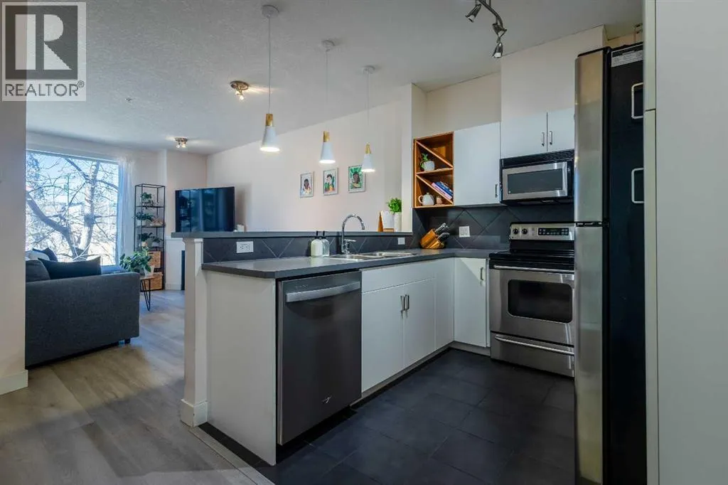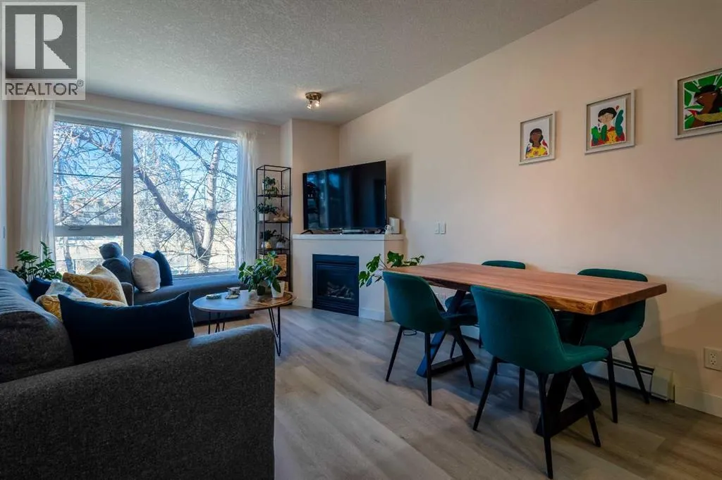 Located in Marda Loopâan iconic Calgary neighbourhood celebrated for its culture, connectivity, and charmâthis move-in-ready condo delivers the lifestyle todayâs buyers seek. Offering modern living at an approachable price point, this two-bedroom home places you steps from some of the cityâs best cafés, boutiques, and everyday conveniences.The stunning main living area sets the tone with a cool, contemporary vibe anchored by a gas fireplace and filled with natural light from expansive west-facing windows. The open layout feels airy and inviting, extending seamlessly to a private, tree-lined balconyâan ideal spot to unwind in the evening or host casual gatherings.The modern kitchen complements the space with clean lines and thoughtful functionality, while a full bathroom, in-suite laundry, underground parking, and a storage locker add everyday ease. Situated in the Kabo complex, this home offers walkable access to everything Marda Loop has to offer, with the energy of 17th Avenue just minutes away. A refined opportunity in one of Calgaryâs most desirable locations. (id:27476)