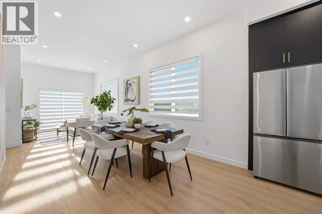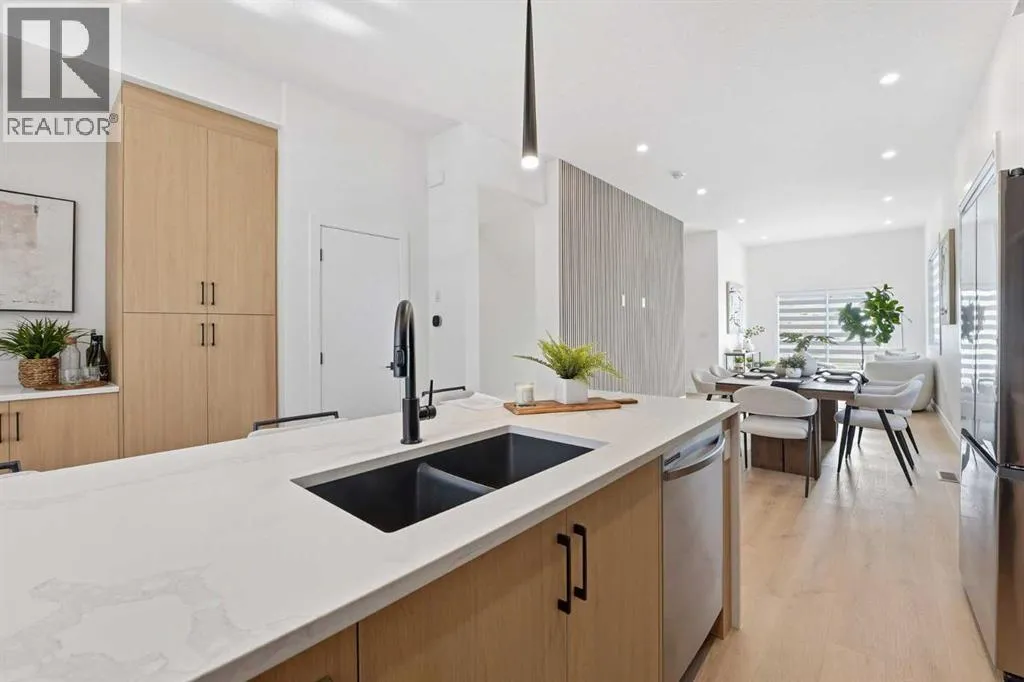 Built for durability and designed for real life, this Hudson END UNIT is a bright and spacious 3-bedroom, 2.5-bathroom townhome offering the perfect balance of style and function. With 1,411 sq ft, two private balconies, and the advantages of an end unit, youâll enjoy extra natural light, added privacy, and more flexible living space. The DOUBLE ATTACHED TANDEM GARAGE gives you secure parking plus plenty of room for storage, bikes, or seasonal gear. Quality starts from the ground up. The Hudson is built on a 4â THICK SLAB USING SULPHATE-RESISTANT CONCRETE â a premium structural choice that helps protect your home for decades. The exterior is designed for Calgaryâs climate, featuring a BRICK CLADDING SYSTEM WITH RAIN SCREEN BEHIND HARDIE BOARD SIDING, helping defend against moisture and harsh freeze-thaw cycles. For everyday convenience and security, the R12 INSULATED GARAGE DOOR WITH BELT DRIVE, WIFI, AND LIVE-VIEW CAMERA adds comfort and peace of mind. Inside, the main floor feels open and welcoming with 10â CEILINGS, BLACK LAMINATED PVC DOUBLE-GLAZED WINDOWS, and a generous BALCONY that extends your living space outdoors. The OPEN-STYLE KITCHEN WITH PANTRY CLOSET is finished with QUARTZ COUNTERTOPS, FULL-HEIGHT CERAMIC TILE BACKSPLASH, and TALL UPPER CABINETS WITH UNDER-CABINET VALANCE LIGHTING. The PREMIUM SAMSUNG STAINLESS STEEL APPLIANCE PACKAGE includes a FRENCH DOOR FRIDGE WITH BUILT-IN WATER PITCHER and a SELF-CLEANING SMOOTH-TOP RANGE. Upstairs, three well-sized bedrooms offer flexibility for families, guests, or a home office. The primary bedroom features its own PRIVATE BALCONY, while bathrooms include QUARTZ COUNTERS, FULL-HEIGHT CERAMIC TILE SURROUNDS, and 24x12â TILE FLOORING. Thoughtful everyday features â like LINEN AND WASHER + DRYER CLOSETS, AUTOMATED ZEBRA BLINDS, VINYL DECKING WITH ALUMINUM RAIL + GLASS PANELS, and FULL LANDSCAPING â help make daily living easy and comfortable. Located in Belvedere, one of Calgaryâs fastest-growing communities, y ouâre steps from groceries, restaurants, and everyday amenities, with parks and schools nearby. Downtown Calgary is only 15â20 minutes away, giving you city access while enjoying the value of a growing neighbourhood. With durable construction, two balconies, and a tandem garage, this Hudson end unit delivers both lifestyle and long-term value. Note: If this property is your primary residence, you may be eligible for a 1.8% GST rebate on the purchase price. Limited Time Promotion: Right now, buyers can receive one full year of FREE CONDO FEES. This promotion is available for a limited time and is scheduled to end March 31st. (id:27476)