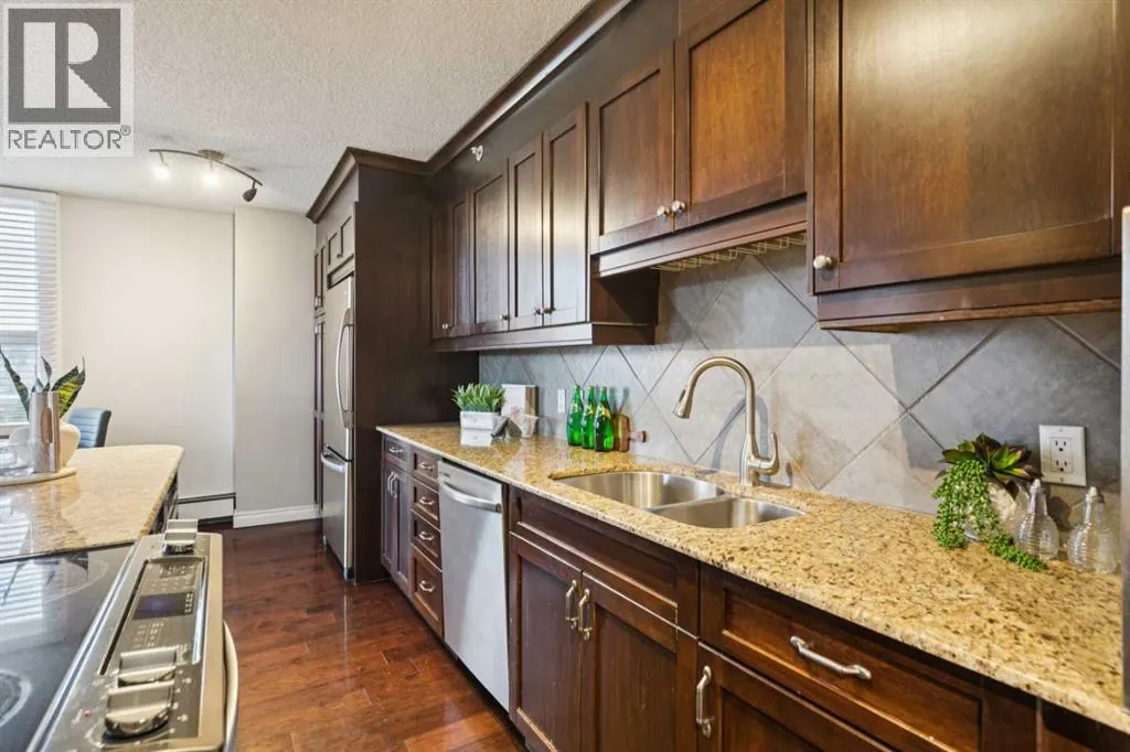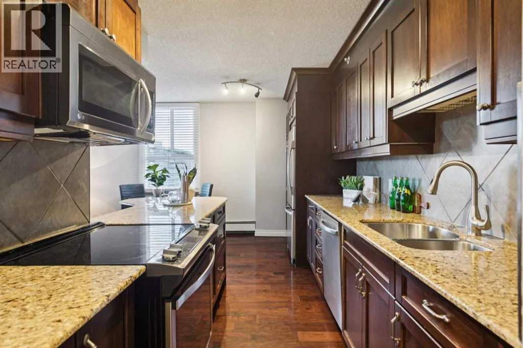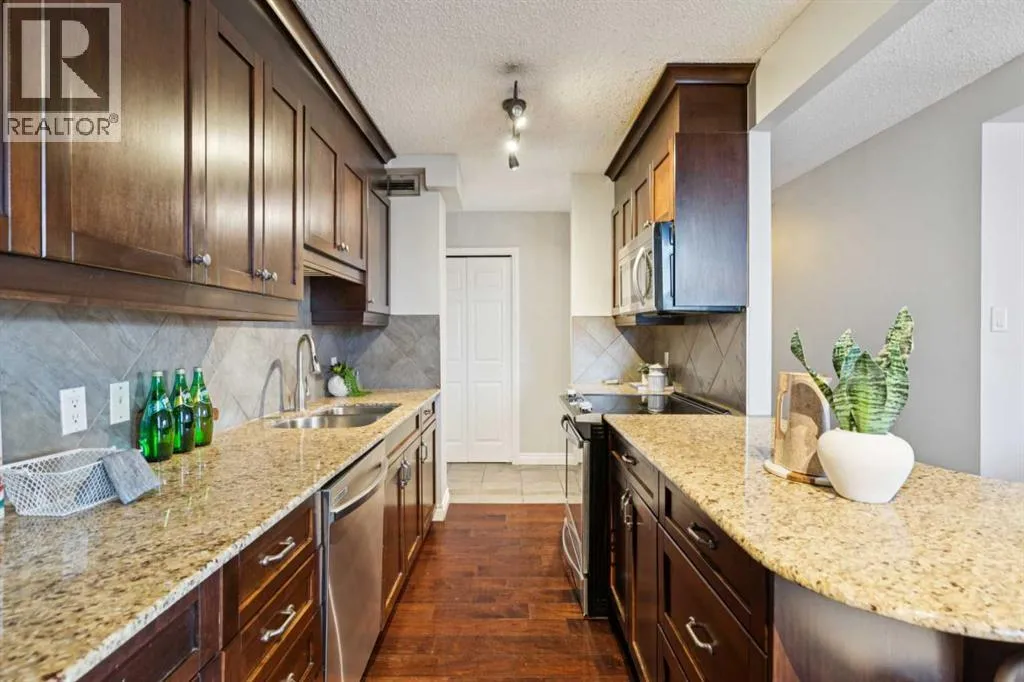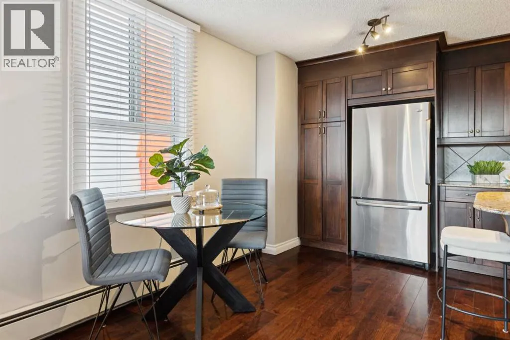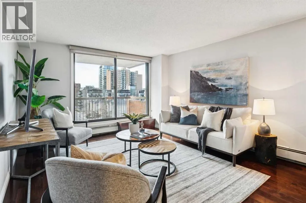 Welcome to Grosvenor House, a concrete building right in the vibrant core of downtown Calgary's Beltline neighbourhood. This south-facing 2-bedroom, 1-bath corner unit offers the perfect blend of convenience, natural light, and urban living without the premium price tag. Step inside to an open and functional layout. The living and dining areas flow nicely together, with plenty of room for your furniture setup and everyday life. The south and west-facing windows allow sunshine to flood the space all day long. The kitchen is practical and ready for use, with solid cabinetry, decent counter space, and stainless-steel appliances. It's set up for easy meal prep, whether you're cooking for one or hosting friends. Both bedrooms are generously sized and conveniently located next to the in-suite laundry and 4-piece bathroom. Youâll love the titled underground parking, which is just steps from the elevator. This is a solid, move-in-ready opportunity for first-time buyers, downsizers, or investors looking for a hassle-free rental in one of the city's most desirable walkable areas. Condo fees cover heat, water, and building maintenance, keeping your costs predictable. Location-wise, you're steps from 17th Avenue's restaurants, bars, shops, and coffee spots, with easy access to the CTrain, gyms, parks, and downtown offices. Everything Calgary's inner city has to offer is right outside your door. Call your favoriate realtor today, it's a move you'll be glad you made! (id:27476)