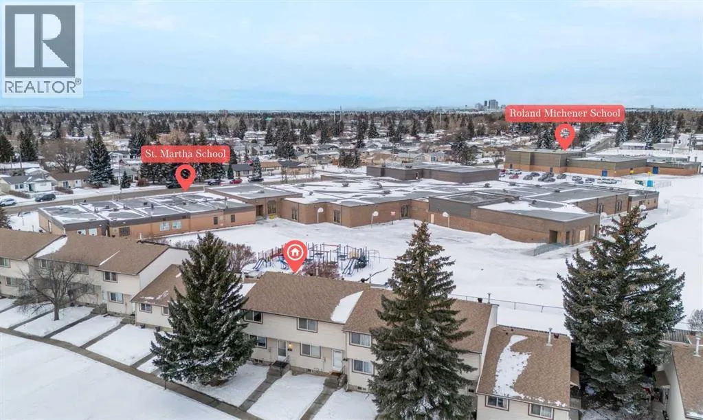 Welcome to this fully developed townhome in desirable Madigan Village, conveniently located near schools, parks, playgrounds, transit, and shopping. This updated 3-bedroom, 1-bathroom home is ideal for first-time buyers, investors, or growing families and is truly move-in ready.The home backs onto green space, offering added privacy and a spacious backyardâperfect for pets, outdoor entertaining, or family gatherings. Recent updates include a new hot water tank and water softener, adding value and peace of mind.Enjoy the convenience of two assigned parking stalls located near the front entrance, along with ample visitor parking and additional street parking. The pet-friendly complex (with board approval) is well managed and situated in a vibrant community featuring an active recreation centre, excellent schools, nearby shopping and dining, and easy access to public transit.This affordable, well maintained townhome offers a rare combination of location, functionality, and park backing privacy an excellent opportunity in todayâs market. (id:27476)