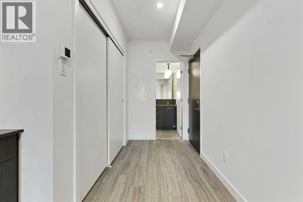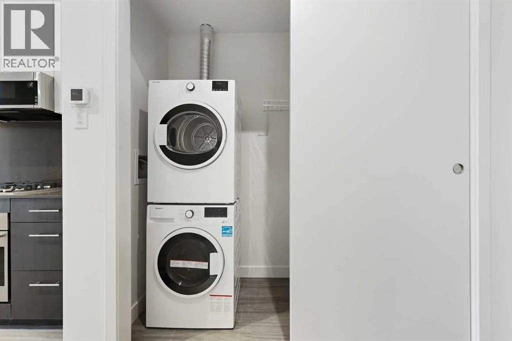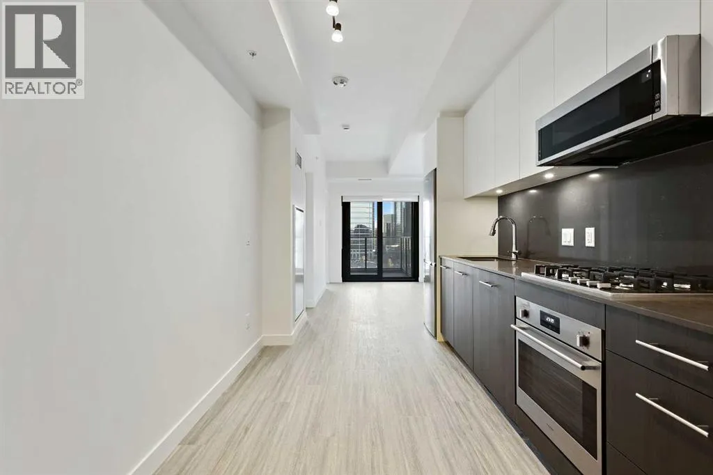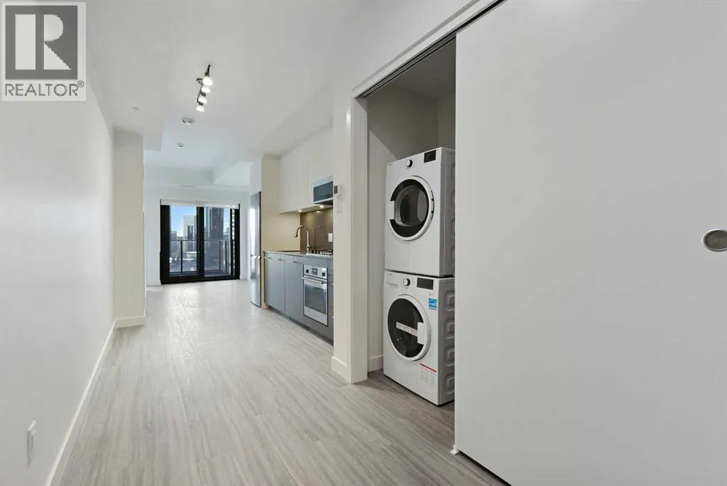 Welcome to unit 1103 at First & Park, an elegant new address in Calgaryâs sought-after Eau Claire community. This one bedroom, one bathroom home combines modern design with everyday convenience. The open-concept layout features a sleek kitchen with contemporary cabinetry, quartz countertops, and premium appliances, flowing seamlessly into the bright living space and east facing balcony with. beautiful views! This unit has a full bath, and in-suite laundry offer comfort and functionality. Enjoy a titled parking stall, along with building amenities including an upscale gym & yoga studio (patio just outside which also features gas bbq hookups), party lounge, modern co-working space and concierge. Just steps from the Bow River pathways, Princeâs Island Park, dining, and downtown, this is the perfect balance of style and location. Whether youâre a first-time buyer, investor, or looking for a stylish downtown retreat, this home at First & Park is the perfect opportunity to live where the city meets the river. 1 titled parking stall with unit! (id:27476)