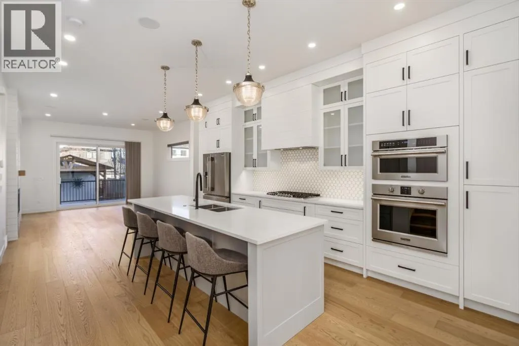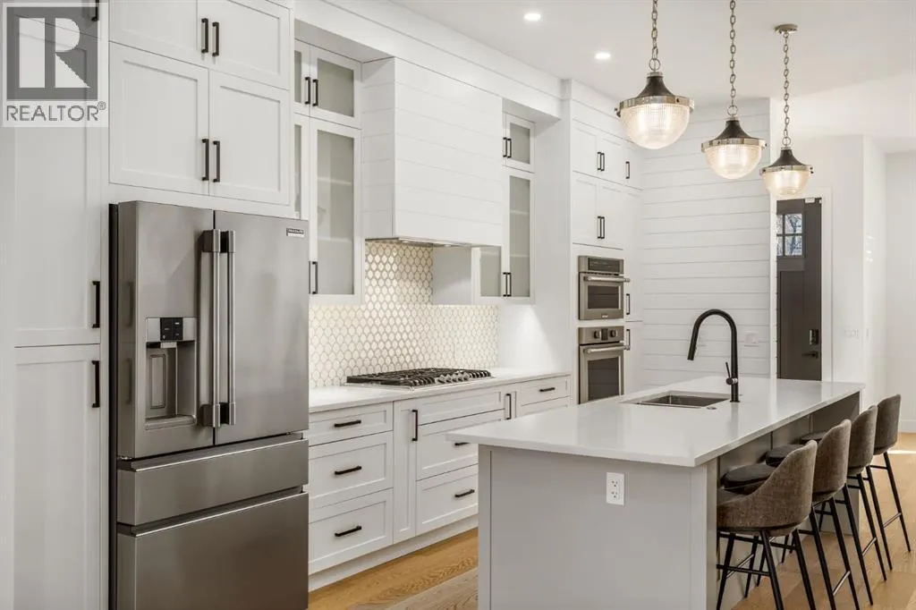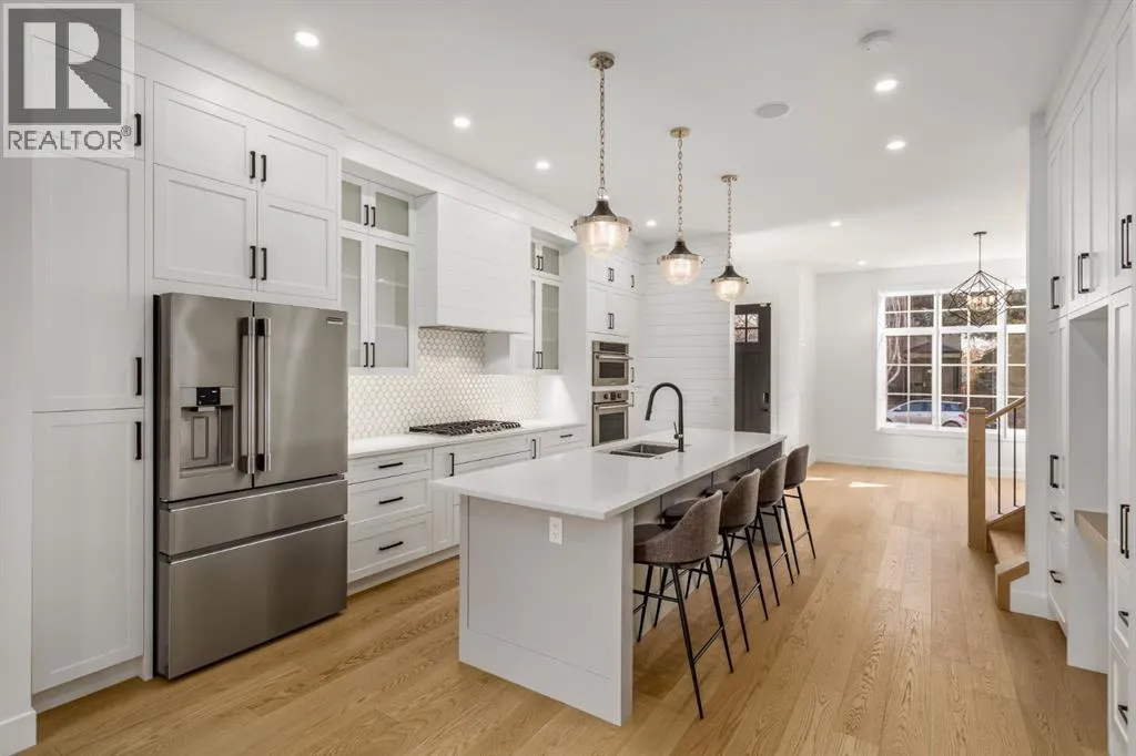 Come visit our Open Houses Saturday February 14th 1-4PM and Sunday February 15th from 2-4PM and fall in love. Welcome to elevated inner-city living in the heart of Richmond, just steps from the energy of 17th Avenue SW. This stunning semi-detached home blends thoughtful design, upscale finishes, and an unbeatable location where walkability and lifestyle reign supreme. With 2,077+ sq ft above grade, this home impresses from the moment you step inside. The main level is bright and airy, highlighted by 10-foot ceilings, a cozy gas fireplace, and a chef-inspired kitchen that truly steals the show. Enjoy a pantry cabinet with pull-out drawers, garburator, striking backsplash, built-in work station, and an oversized 10-foot quartz islandâperfect for entertaining. Premium Frigidaire Professional Series stainless steel appliances include a 5-burner gas cooktop, built-in convection oven/microwave, and Fisher Paykel double drawer dishwasher, making this space as functional as it is beautiful. Upstairs, youâll find a skylight feature, hardwood flooring, and three generous bedrooms, including a luxurious primary retreat complete with dual walk-in closets, dedicated makeup vanity, and a spa-like ensuite featuring a steam shower, freestanding soaker tub, and heated floors. A second full bathroom offers a double vanity, while the conveniently located laundry room includes a sink and custom storage for everyday ease. The fully developed basement adds incredible versatility with another bedroom, large recreation area, wet bar, and rough-in for hydronic heatingâideal for hosting guests or at home movie nights. Additional luxurious comforts continue throughout with central A/C, central vacuum, in-ceiling speaker system, custom plantation shutters, upgraded carpet and stair lighting, and various shiplap feature walls and millwork built-ins. The west-facing backyard is deeper than the standard sized lot, thoughtfully designed with summer evenings in mind, encompassing $60,000 worth of upgrades including backyard turf, a stunning pergola feature, paving stone patio, and enhanced fencing. Relax on the spacious 12 foot cedar deck with a BBQ gas line and enjoy easy access to the double detached garage. Set in one of Calgaryâs most sought-after communities, this quiet and low traffic street has ample parking and is moments away from charming cafés, parks, fitness studios, and quick downtown access. This is inner-city living at its finestâstylish, functional, and perfectly located. (id:27476)
