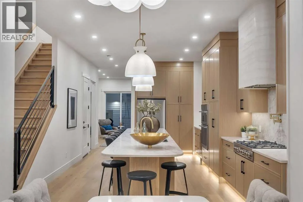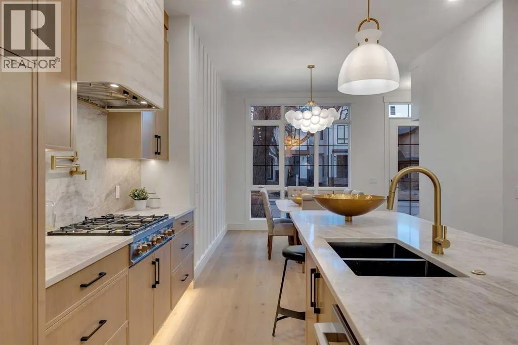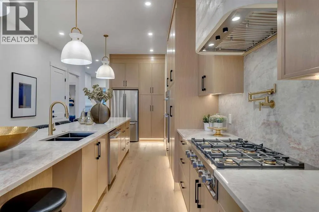Welcome to the HEART of desirable Capitol Hill. This newly built two storey home pairs inner city convenience with family-first design. It offers just under 2,900 sq ft of living space that balances entertainment and residential areas to create an exceptional home. A key feature is a developed basement legal suite that is self-contained and configured to provide both privacy and income potential. The basement can be a two-bedroom rental or private accommodation with its own entry. The main floor impresses with 10' ceilings and large windows bringing abundant natural light. The kitchen is designed for cooking and conversation: BERTAZZONI gas cooktop, Taj Mahal quartz countertops & full backsplashes and continuous cabinetry that supports efficient workflow. A defined separation between the kitchen and the living room at the rear creates clear zones for meal prep and relaxing. The living room anchored by a gas fireplace, while large sliding doors open to the rear deck. The outdoor space is fully fenced and professionally landscaped, offering a low maintenance setting for kids, pets and summer entertaining.Upstairs is organized for privacy and daily ease. The vaulted primary retreat includes a spacious walk-in closet and a spa like ensuite with steam shower, freestanding tub, dual vanities and heated flooring for added comfort. Two additional well sized bedrooms are served by full baths on the level and a dedicated laundry room that smooths morning routines. Generous closets and clear sight lines add practical value throughout.The two bedroom lower legal suite is self-contained with its own entrance, full kitchen, full bath and laundry, ideal for rental income or extended family. Sound-conscious detailing and smart mechanical placement maintain separation and comfort for both households. Finishes include engineered hardwood on the main and upper floors and durable LVP in the basement. The double detached garage is designed for versatility. Beyond parking, the space ad apts easily to secure storage or hobby use, blending functionality with everyday utility.Location is the story. Capitol Hill is a mature inner city neighbourhood known for tree lined streets, strong walkability and a genuine sense of community. Enjoy close access to Confederation Parkâs pathways and sports fields, nearby cafés and local shops, and straightforward connections to SAIT, the University of Calgary and downtown for commuting and weekend plans. Top schools and convenient transit add to daily ease. This property delivers thoughtful construction, flexible living and a location that holds long-term appeal and value. Move in ready now! (id:27476)