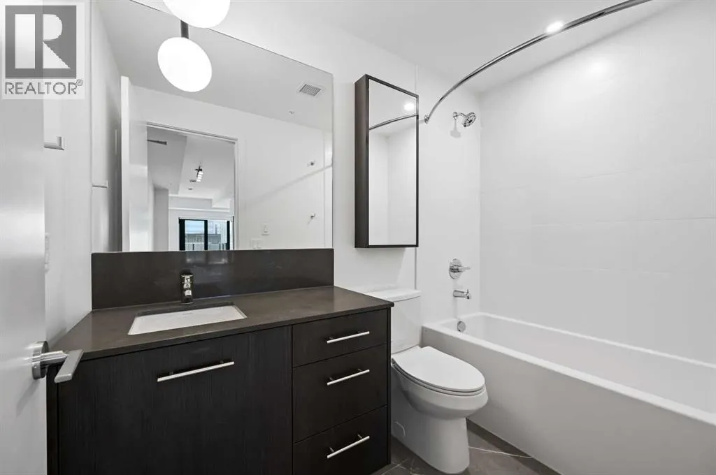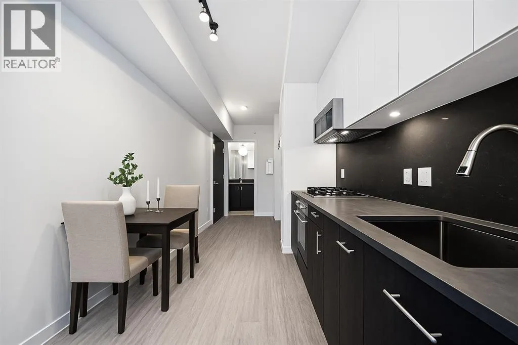 Welcome to First & Park, an elegant new address in Calgaryâs sought-after Eau Claire community. This one bedroom, one bathroom home combines modern design with everyday convenience. The open-concept layout features a sleek kitchen with contemporary cabinetry, quartz countertops, and premium appliances, flowing seamlessly into the bright living space and east facing balcony. A spacious bedroom, full bath, and in-suite laundry offer comfort and functionality. Enjoy a titled parking stall, along with building amenities including an upscale gym & yoga studio (patio just outside which also features gas bbq hookups), party lounge, modern co-working space and concierge. Just steps from the Bow River pathways, Princeâs Island Park, dining, and downtown, this is the perfect balance of style and location. Whether youâre a first-time buyer, investor, or looking for a stylish downtown retreat, this home at First & Park is the perfect opportunity to live where the city meets the river. Packages available for FURNISHED UNITS! 1 titled parking stall with unit! (id:27476)
